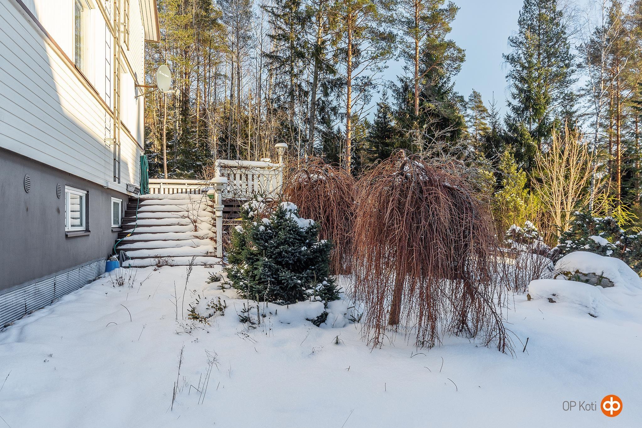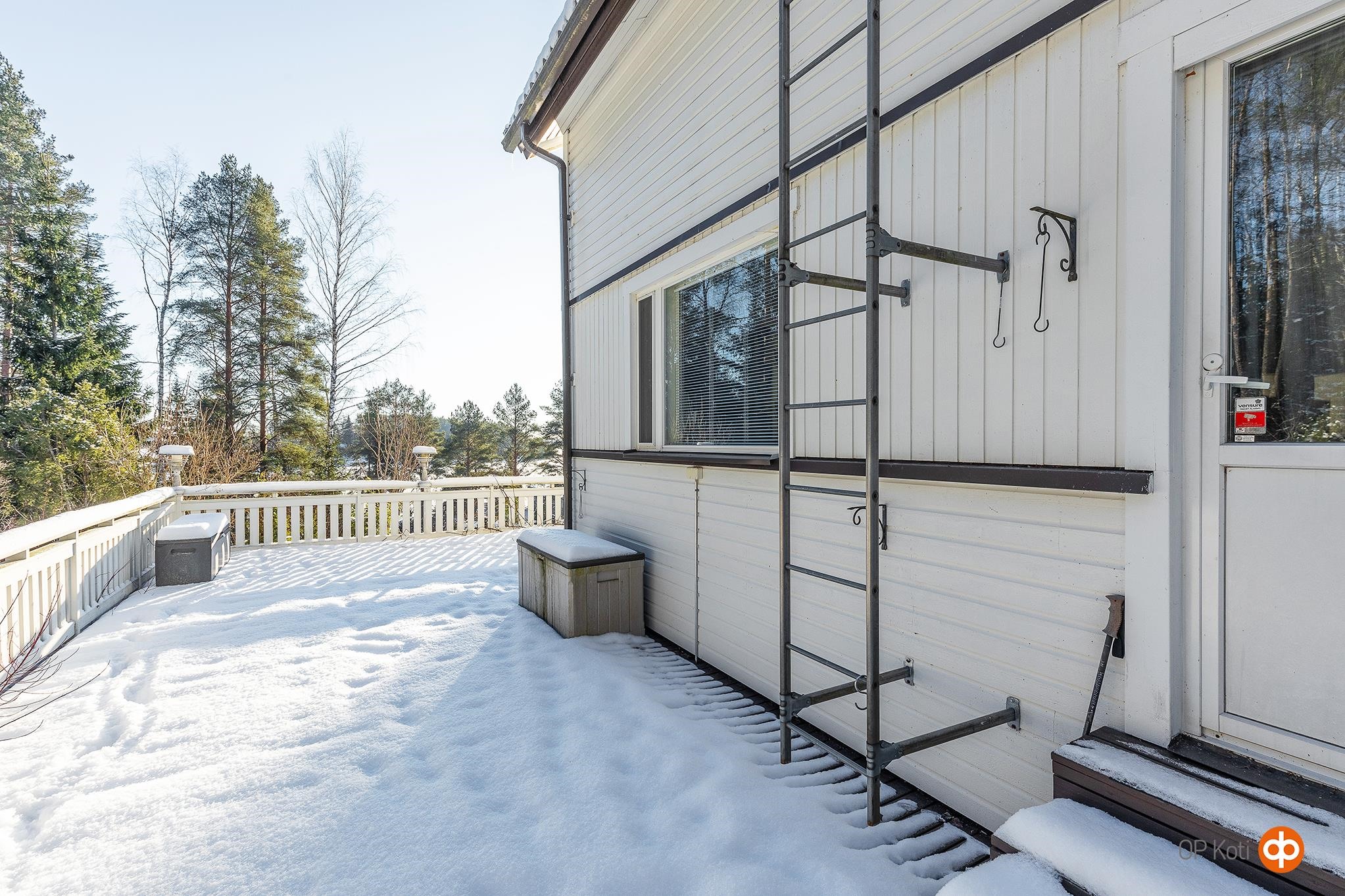 Talon vierellä on mukavan kokoinen terassi, jossa kelpaa nauttia vapaa-ajasta keväästä syksyyn.