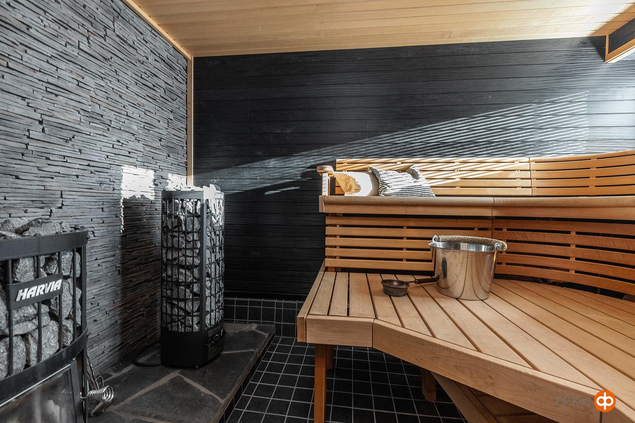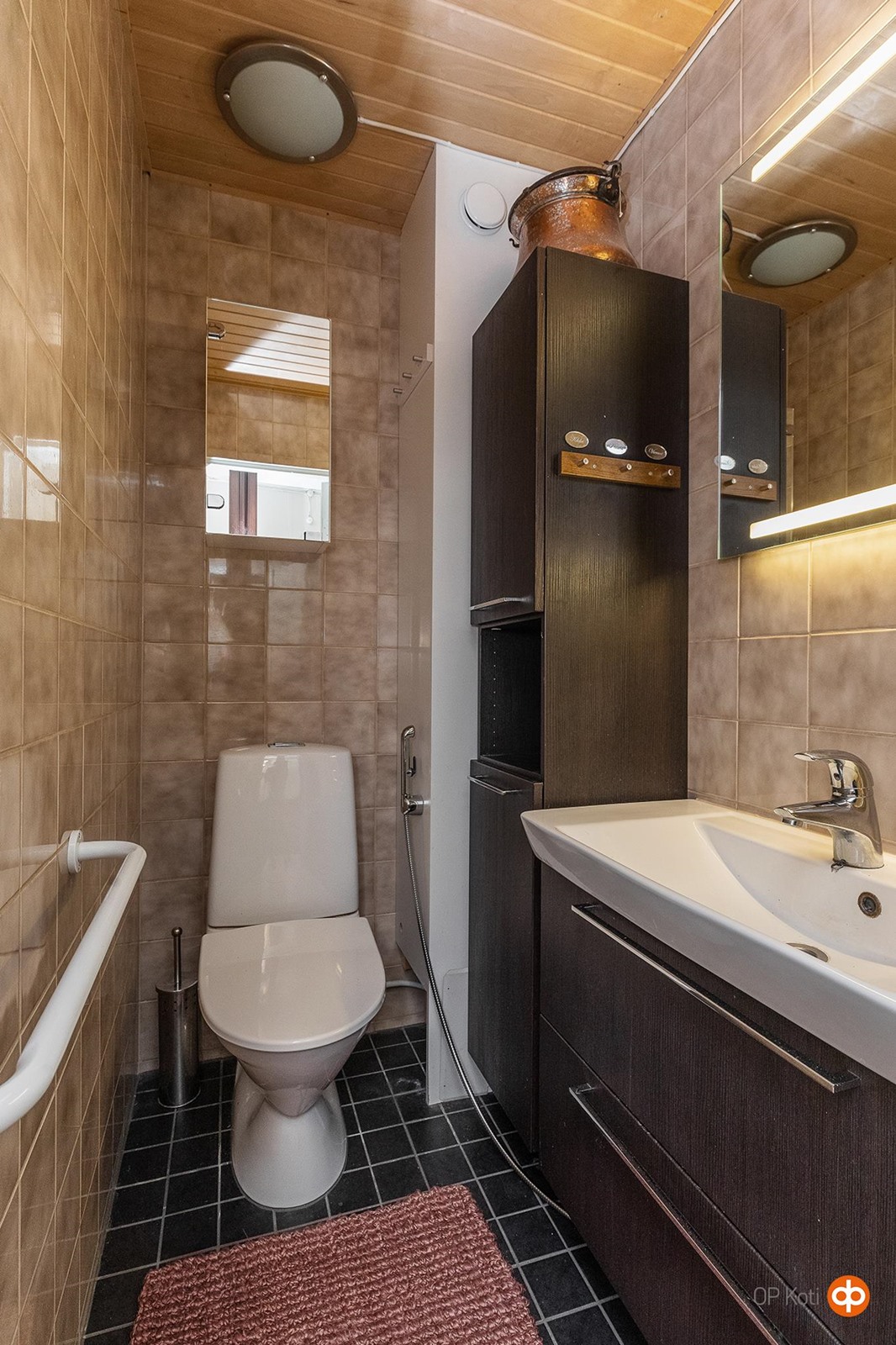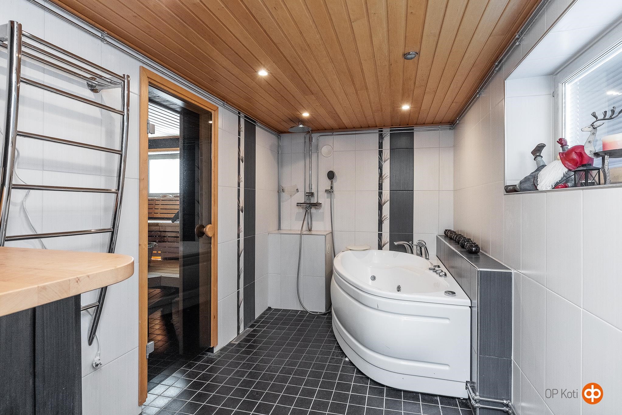 - Kylpyhuone ja sauna remontoitu n. 2014. Kylpyhuoneessa suihku ja poreallas. Saunassa nykyaikainen puu- ja sähkökiuas. Erillinen wc x 3,