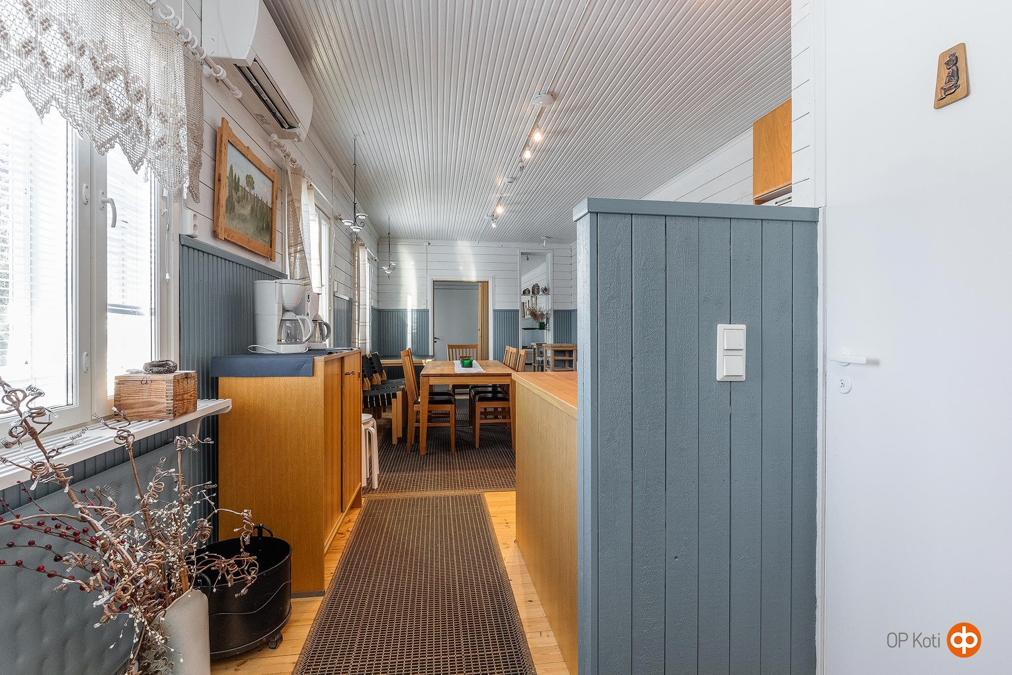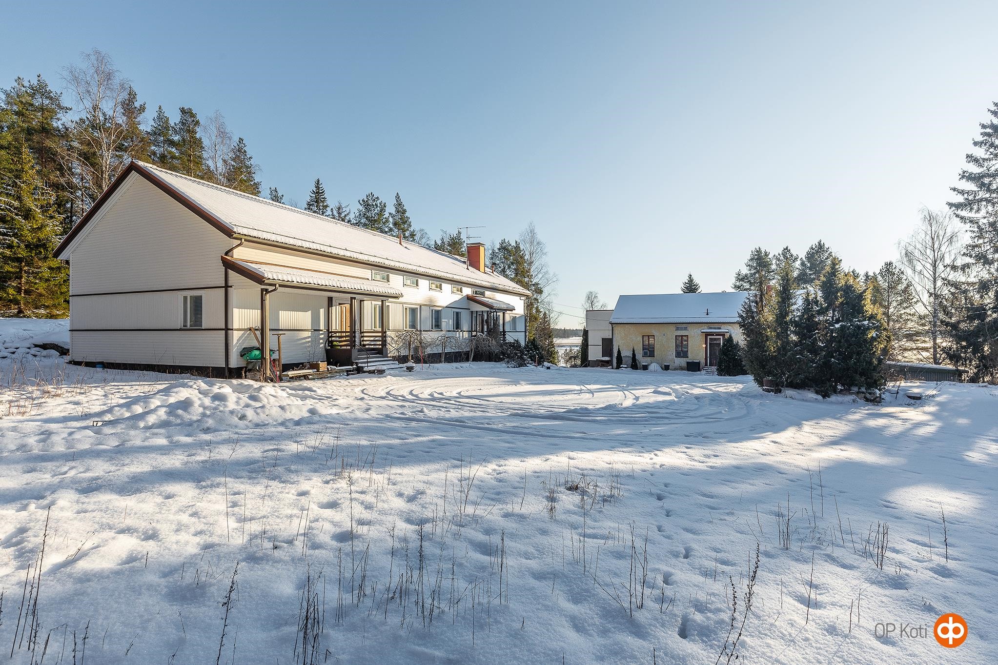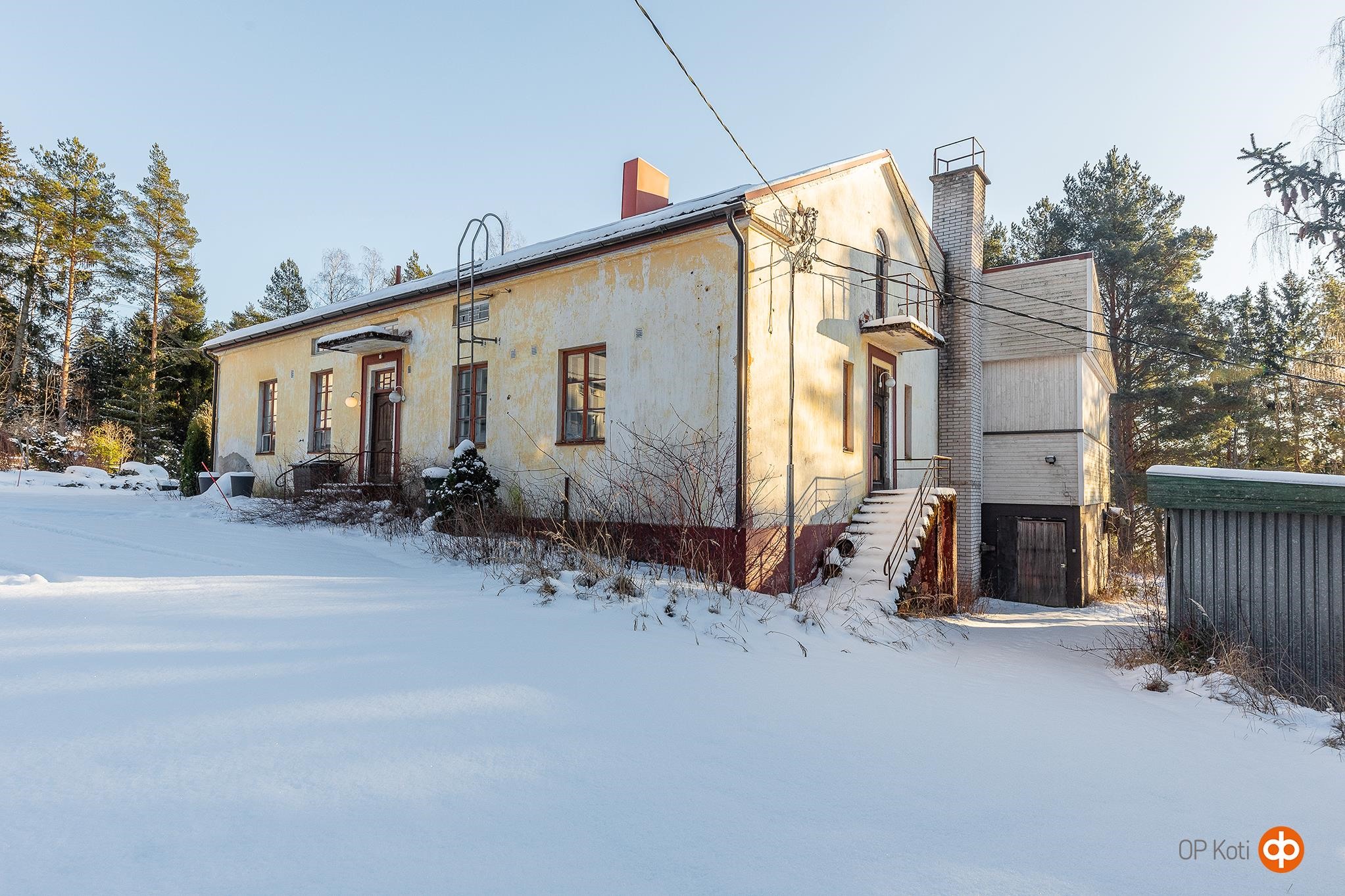 Puurakenteinen komea päärakennus on alkujaan 1950-luvun taitteessa rakennettu kansakouluksi ja matkan varrella se on remontoitu viihtyisäksi kodiksi, jossa on positiivisella tavalla osattu säilyttää myös vanhan koulun tunnelmaa.