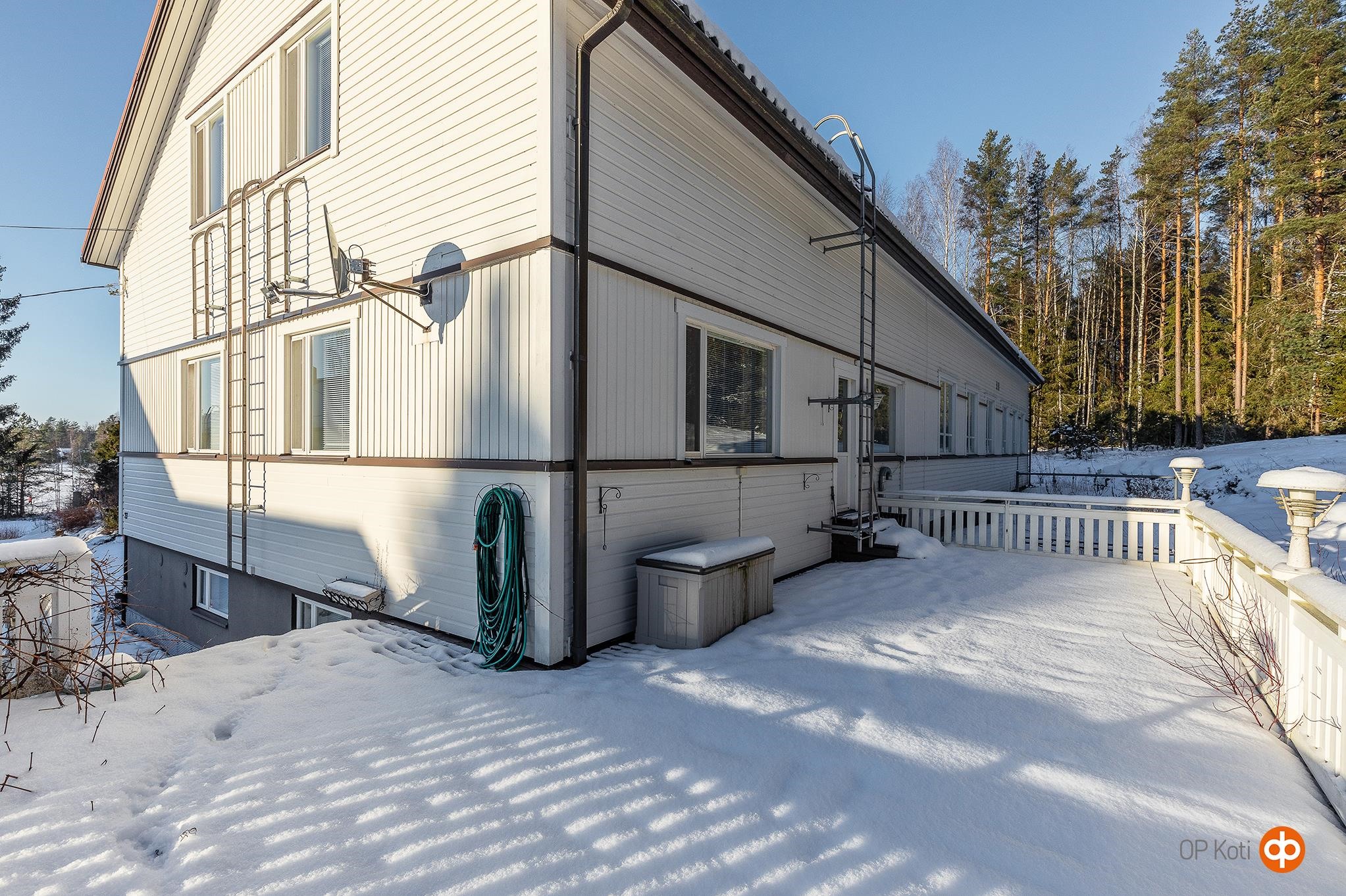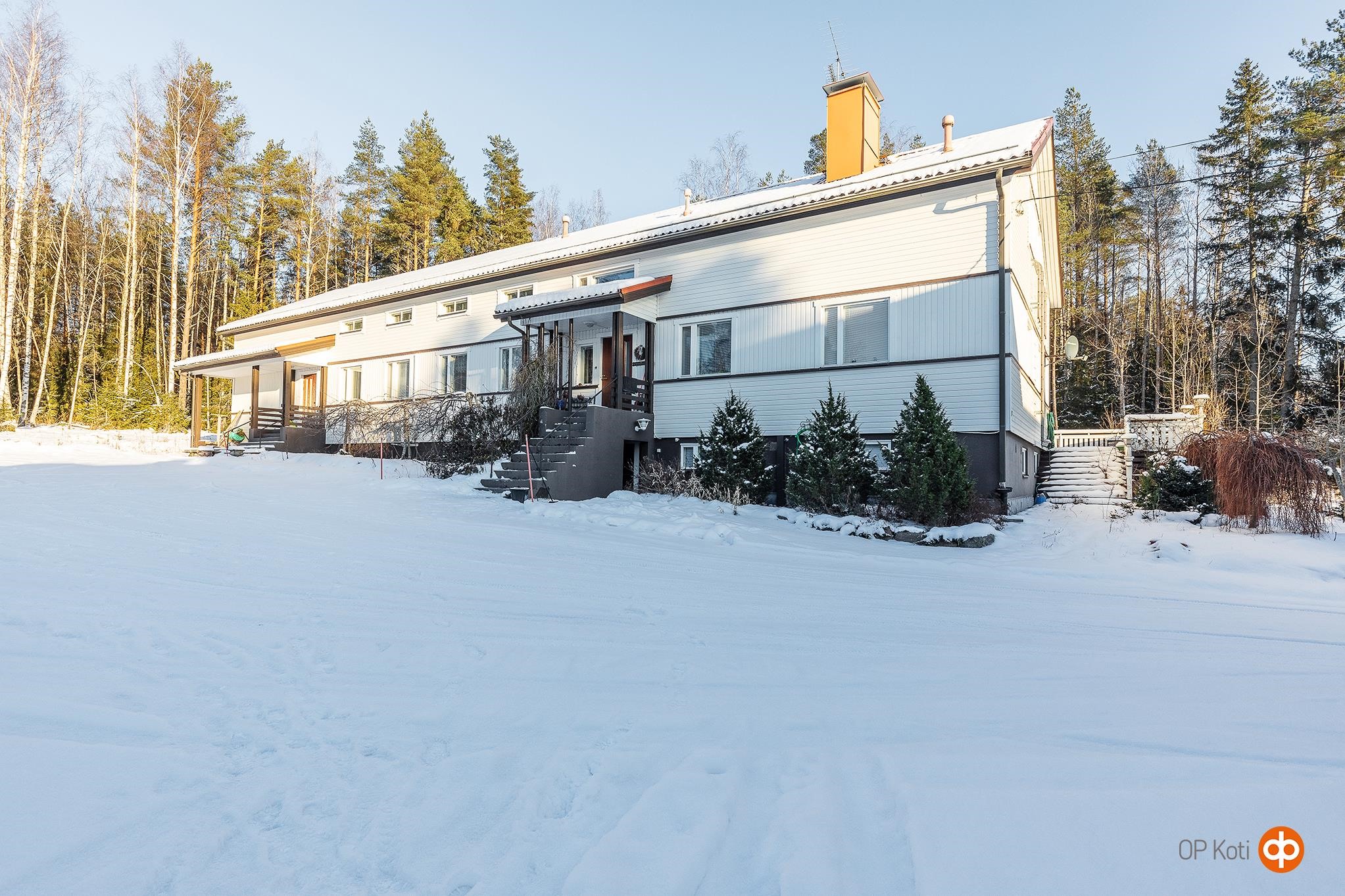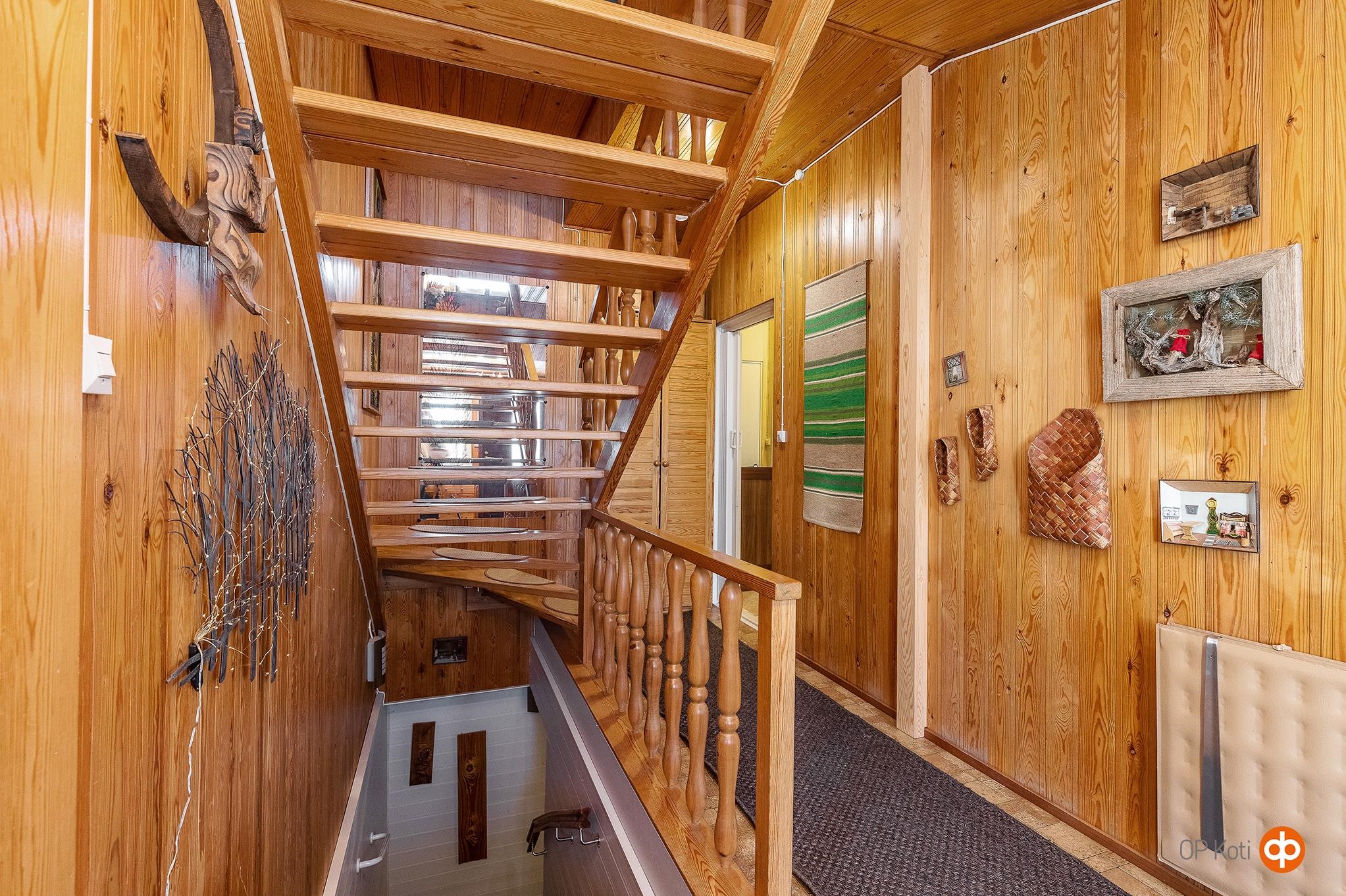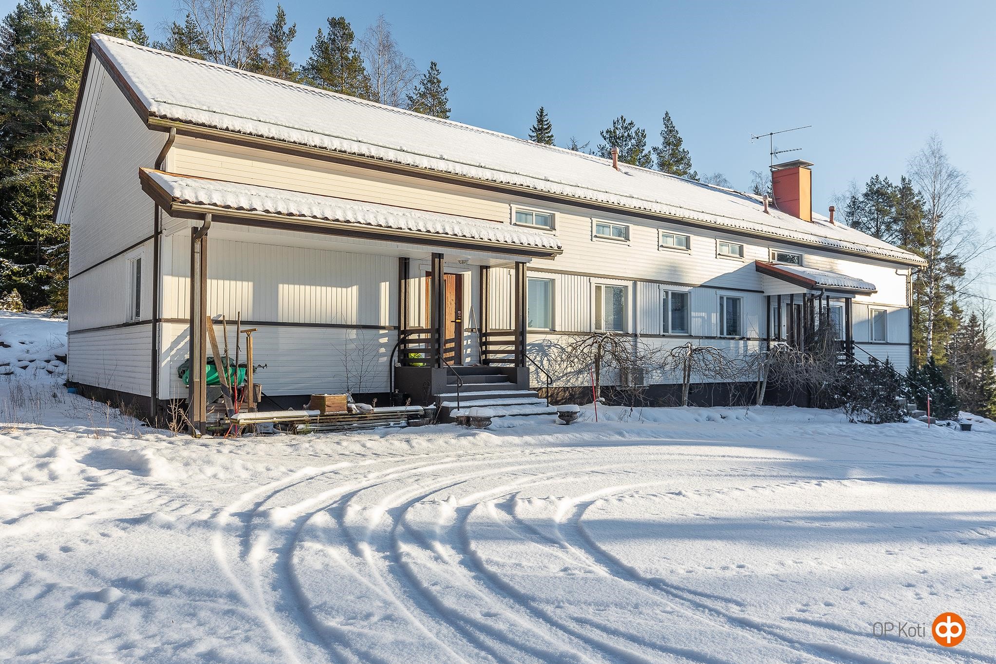 Puurakenteinen komea päärakennus on alkujaan 1950-luvun taitteessa rakennettu kansakouluksi ja matkan varrella se on remontoitu viihtyisäksi kodiksi, jossa on positiivisella tavalla osattu säilyttää myös vanhan koulun tunnelmaa.
