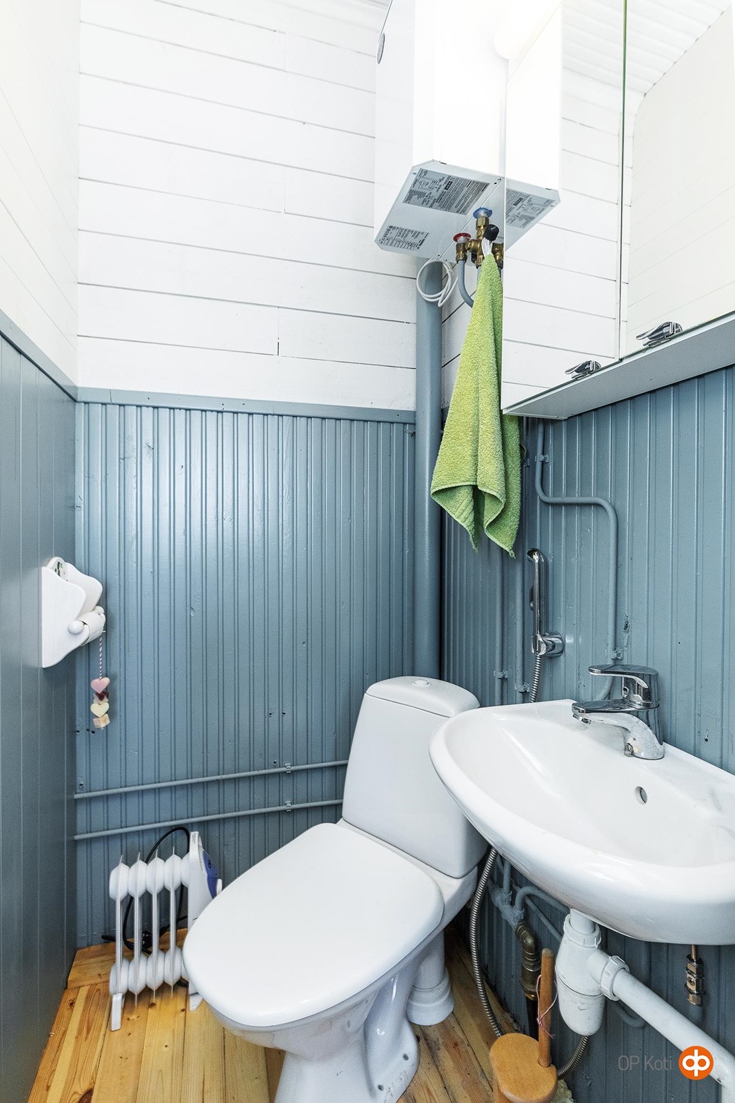 - Vesikiertoinen patterilämmitys. Kellarikerroksen kylpyhuoneessa vesikiertoinen lattialämmitys, joka kuntotarkastuksen mukaan uusittu kylpyhuoneremontin yhteydessä.