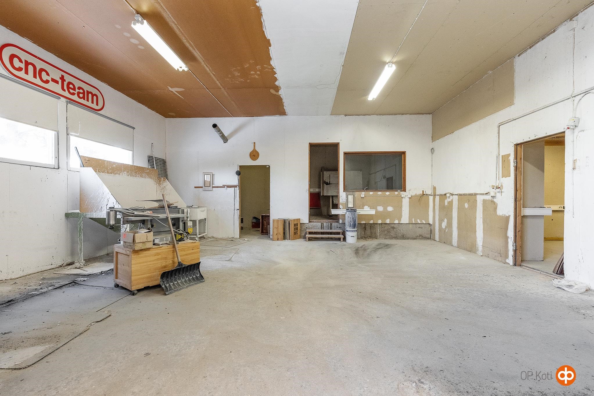 Pihapiirissä sijaitsee myös toinen vanha koulurakennus, jota on laajennettu ja muutettu menneinä vuosikymmeninä tuotanto- ja varastokäyttöön. Rakennus kaikkiaan pinta-alaltaan n. 590 m2. Alakerrassa on varastotilaa n. 190 m2, johon on kahdet nosto-ovet. Yläkerran tilojen yhteydessä myös sosiaali- ja wc-tilat sekä keittotila. Rakennuksessa on lämmitys öljyllä ja sähköllä. Hyvät tilat monelle yrittäjälle ja erilaisiin harrastuksiin.