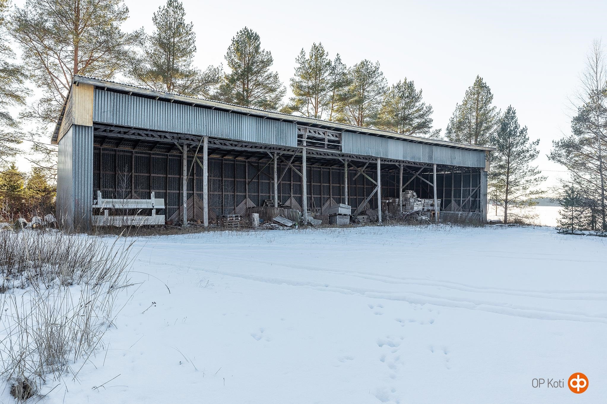 Pihapiirin ulkopuolella sijaitsee lisäksi eristämätön betonilattiainen peltihalli sekä peltirakenteinen katos.