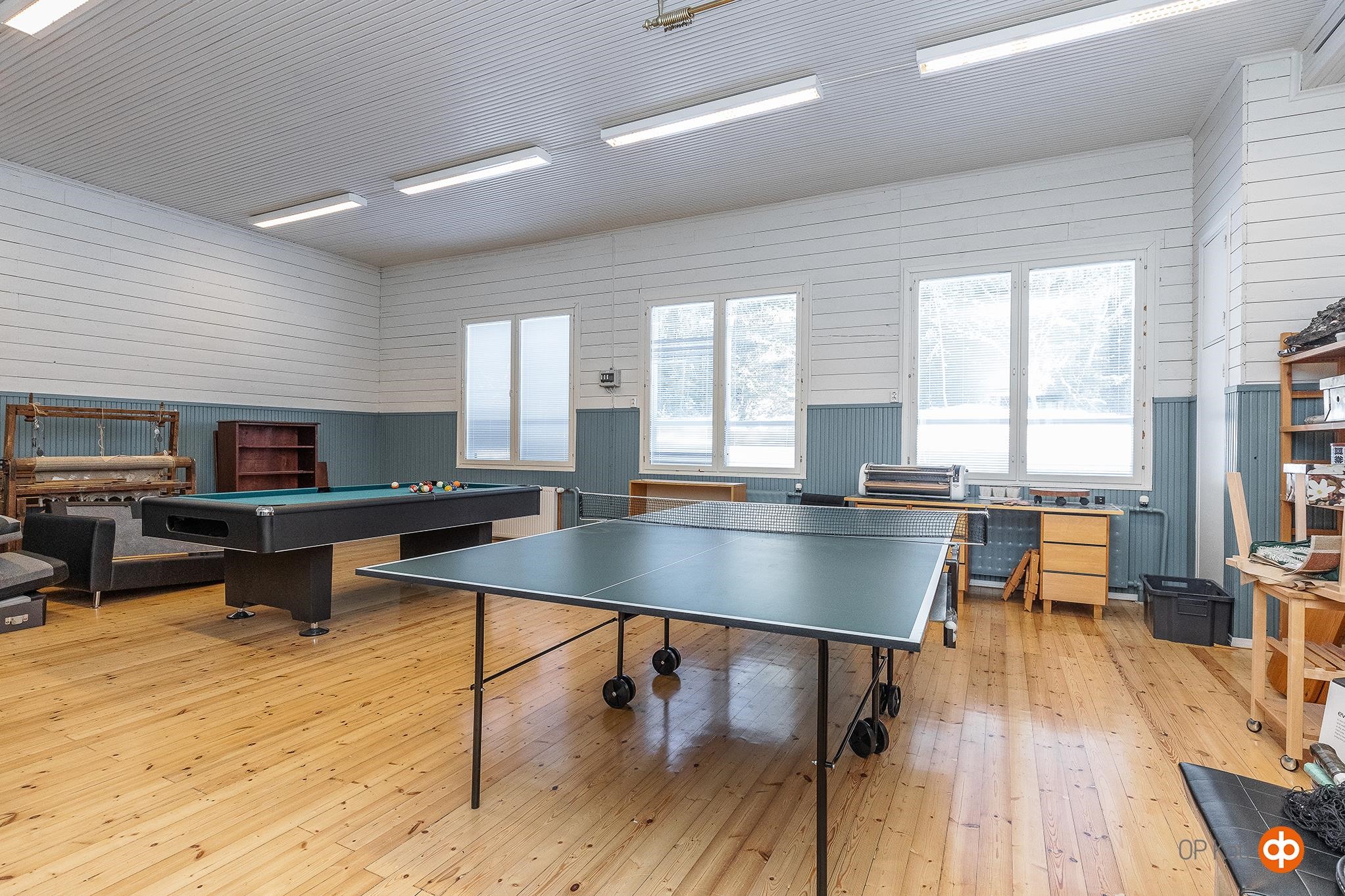 Varsinainen asuinosa on kolmessa kerroksessa. Tilat käsittävät olohuoneen, keittiön, 3 makuuhuonetta, 2014 remontoidun tyylikkään saunaosaston (kylpyhuone, sauna, pukuhuone), harrastus-/kuntoilutilan, 2 wc:tä ja työhuoneen. Lisäksi 2 kpl kauniita vanhoja luokkahuoneita, tilava aula/kokoustila, työhuone, keittotila, wc ja varasto. Luokkahuoneet soveltuvat vaikka mihin. Tällaisista tiloista haaveilevat monet yrittäjät, eri asioiden ja lajien harrastajat, keräilijät, taiteilijat ym. Tokihan luokkatiloista saa myös tarvittaessa erotettua lisää makuutiloja.