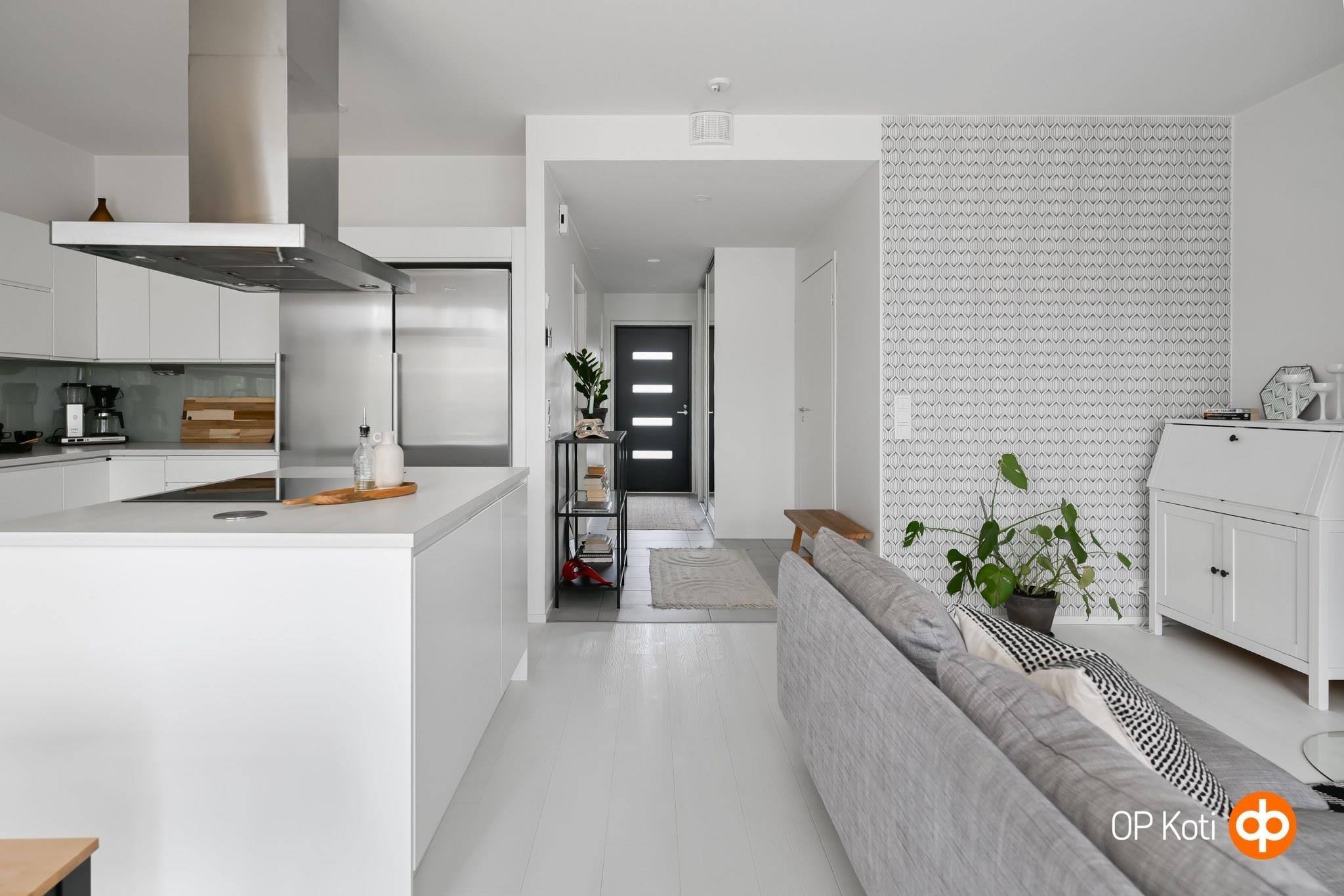 Jos haluat päästä löylyihin vaivattomammin, löytyy myös asunnosta oma sauna. 2017 valmistuneen asunnon pinnoilla on käytetty nykyaikaisia sävyvalintoja. Kylpyhuoneen yhteyteen tehty kodinhoito -tila helpottaa arkea ja kattavasti varusteltu keittiö saarekkeineen tekee ruoanlaitosta mukavaa. Avoin olohuone/keittiö mahdollistaa yhteisen ajanvieton sekä seurustelun ja olohuoneesta löytyy myös kevyttakka tunnelman luomista varten. Koko huoneiston kattava lattialämmitys lisää asumismukavuutta.