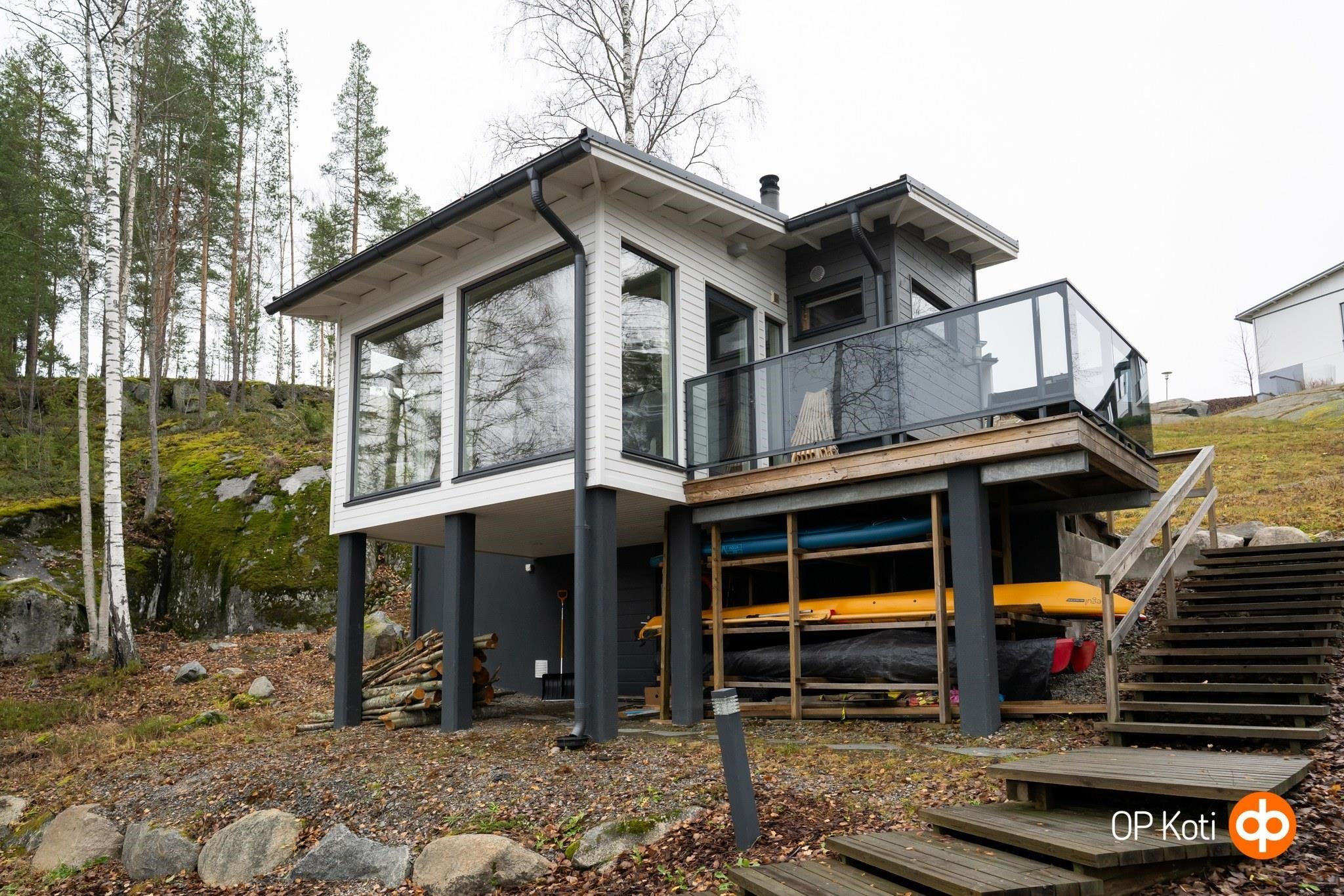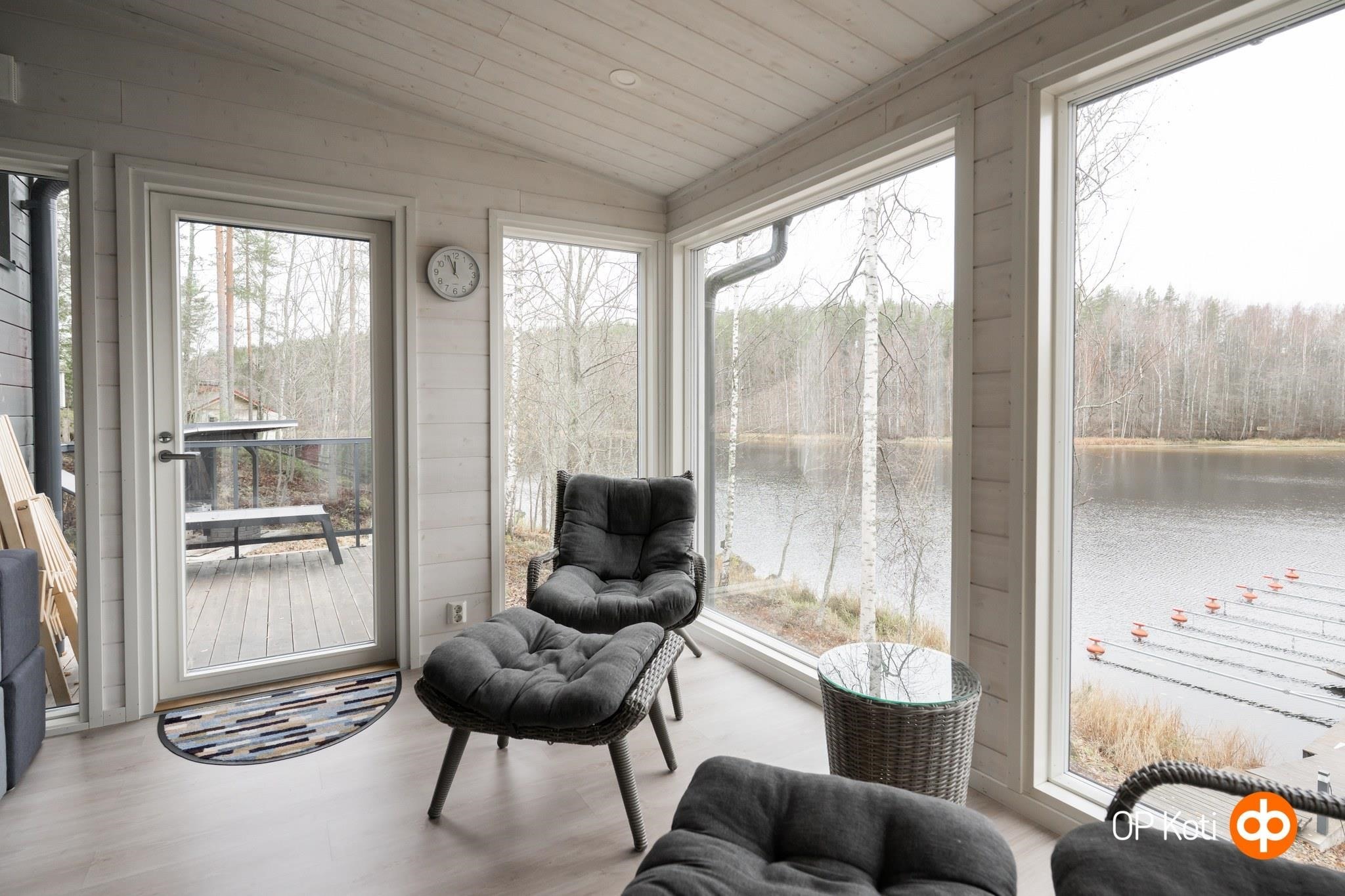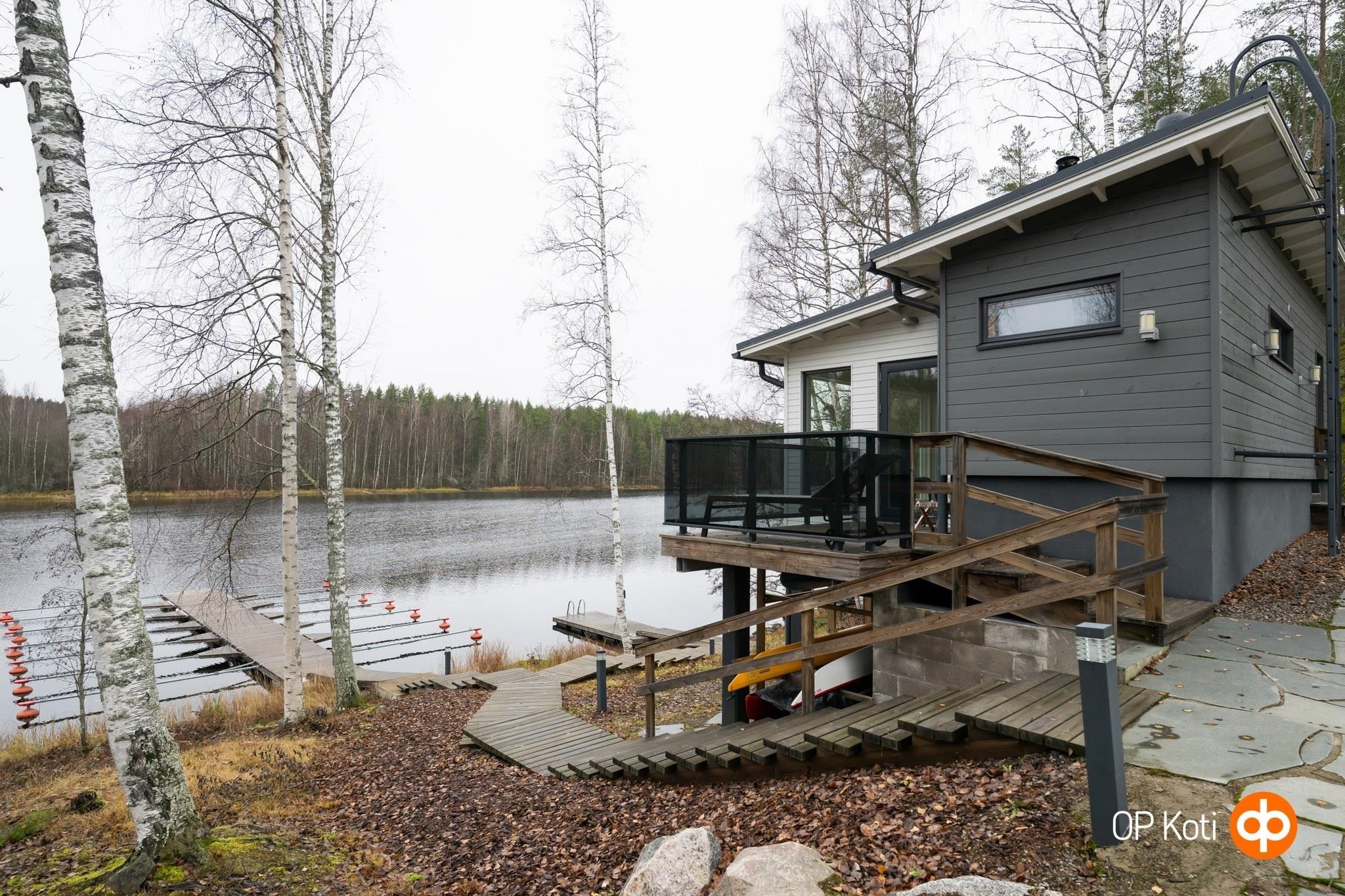 Tämä moderni koti sijaitsee upealla paikalla luonnon helmassa, aivan järven edessä. Tässä kohteessa on erityisiä mukavuuksia, mitä ei jokaiselta löydy.