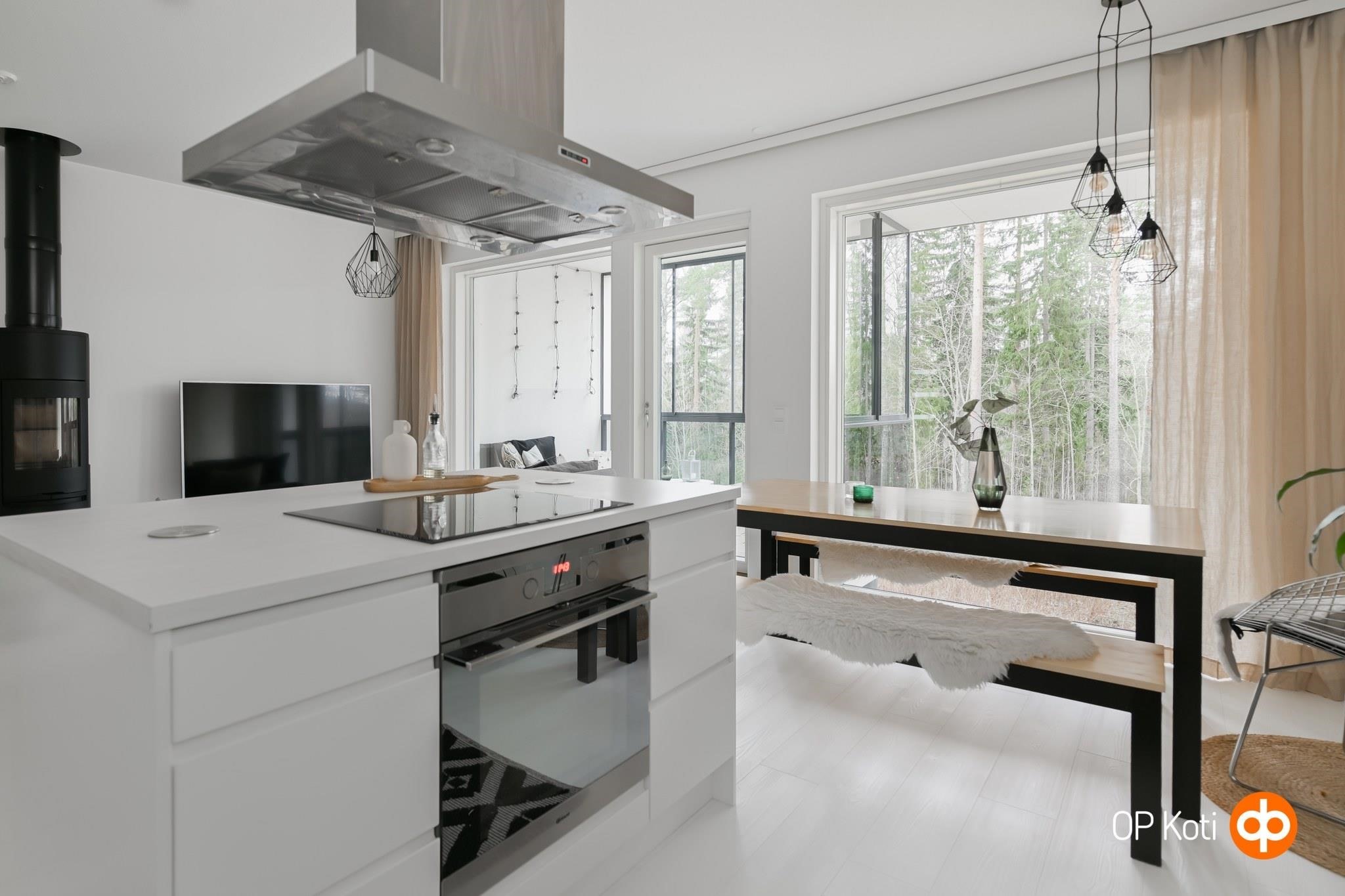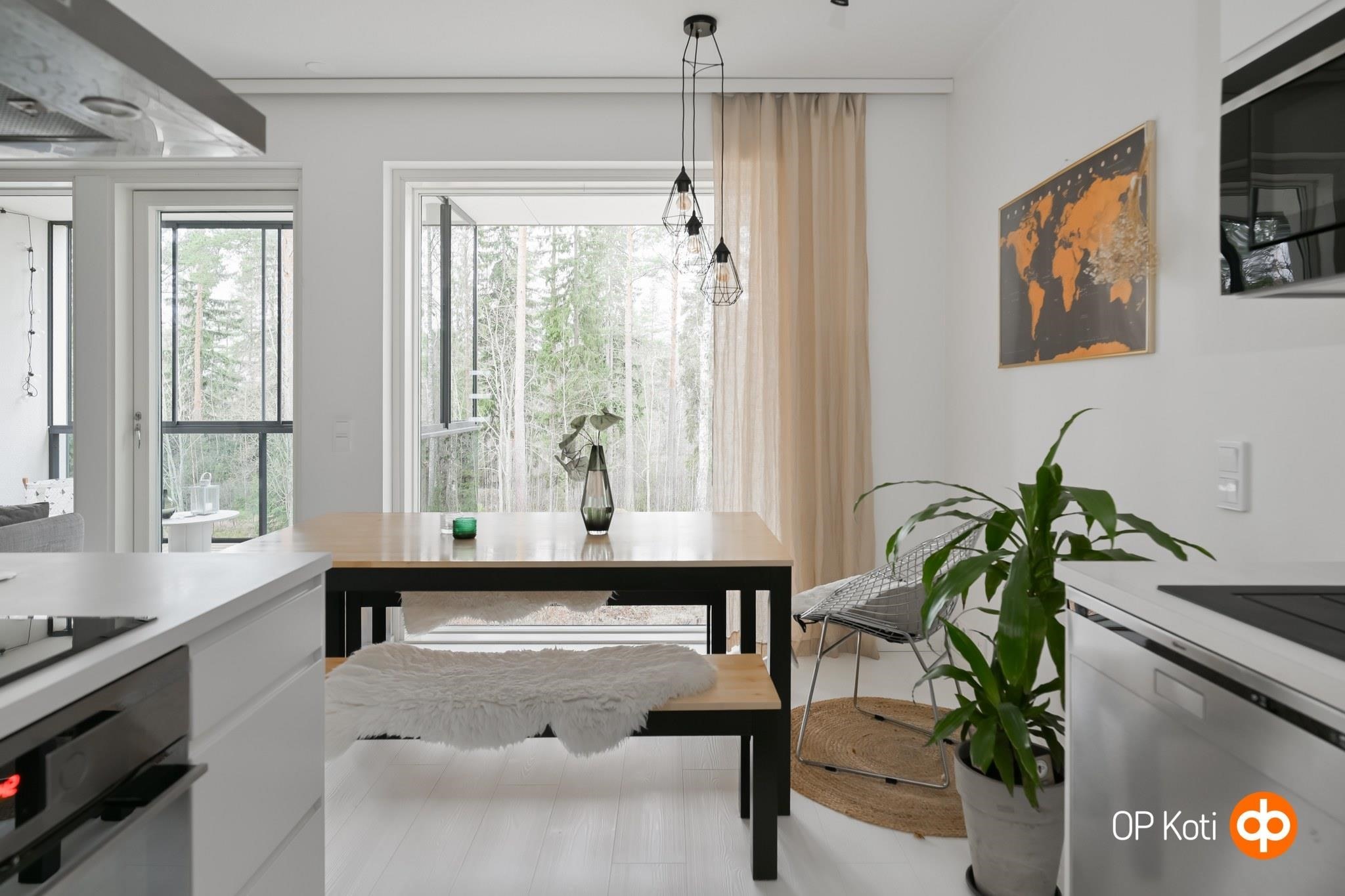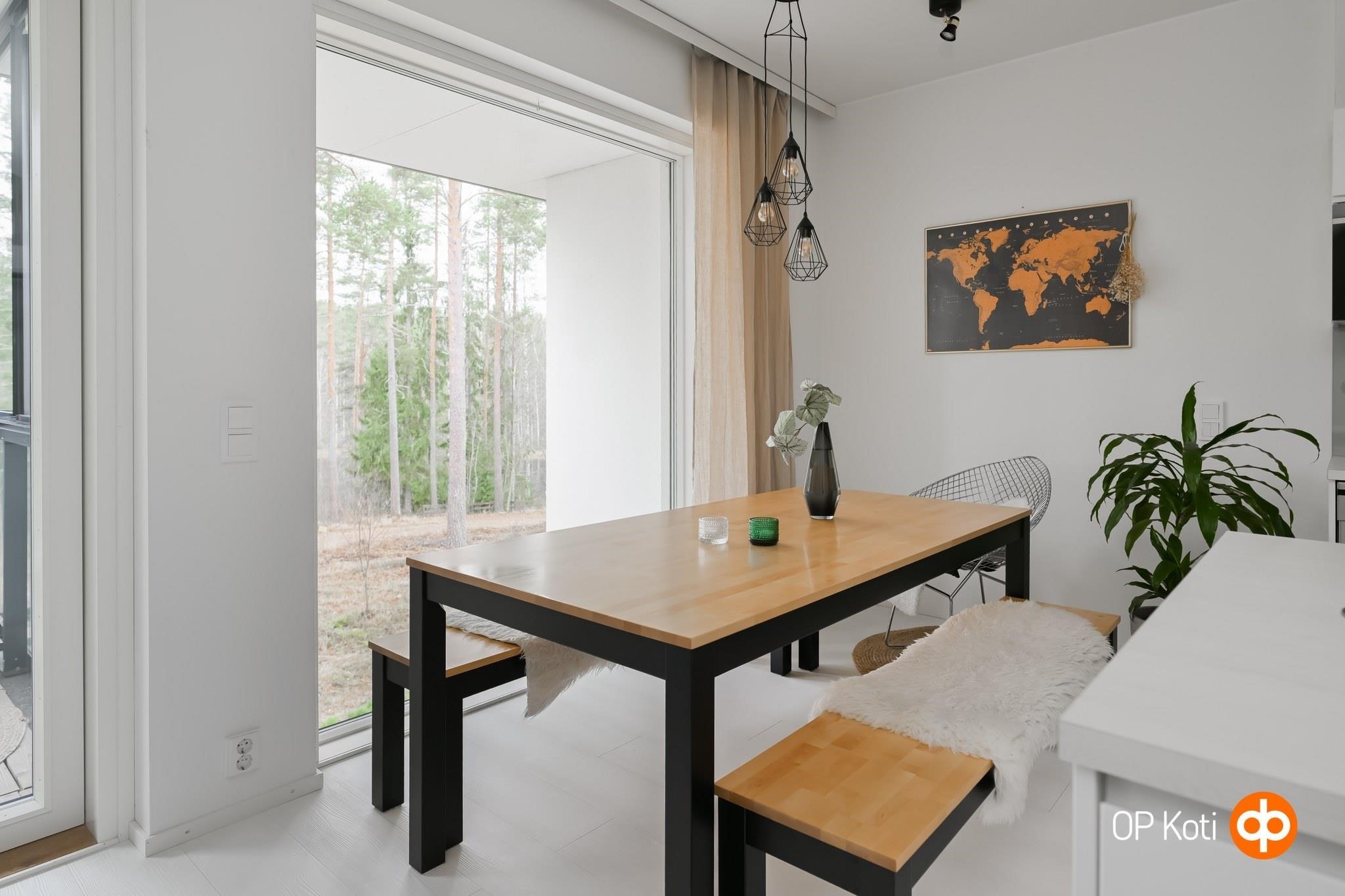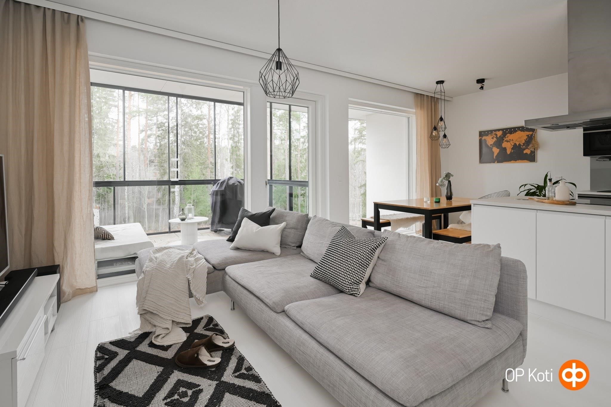 - Olohuoneesta ja keittiöstä vehreät metsikkönäkymät. Parvekkeelta näkymät metsikköön ja järvelle. Makuuhuoneesta näkymät talon sisäpihalle.