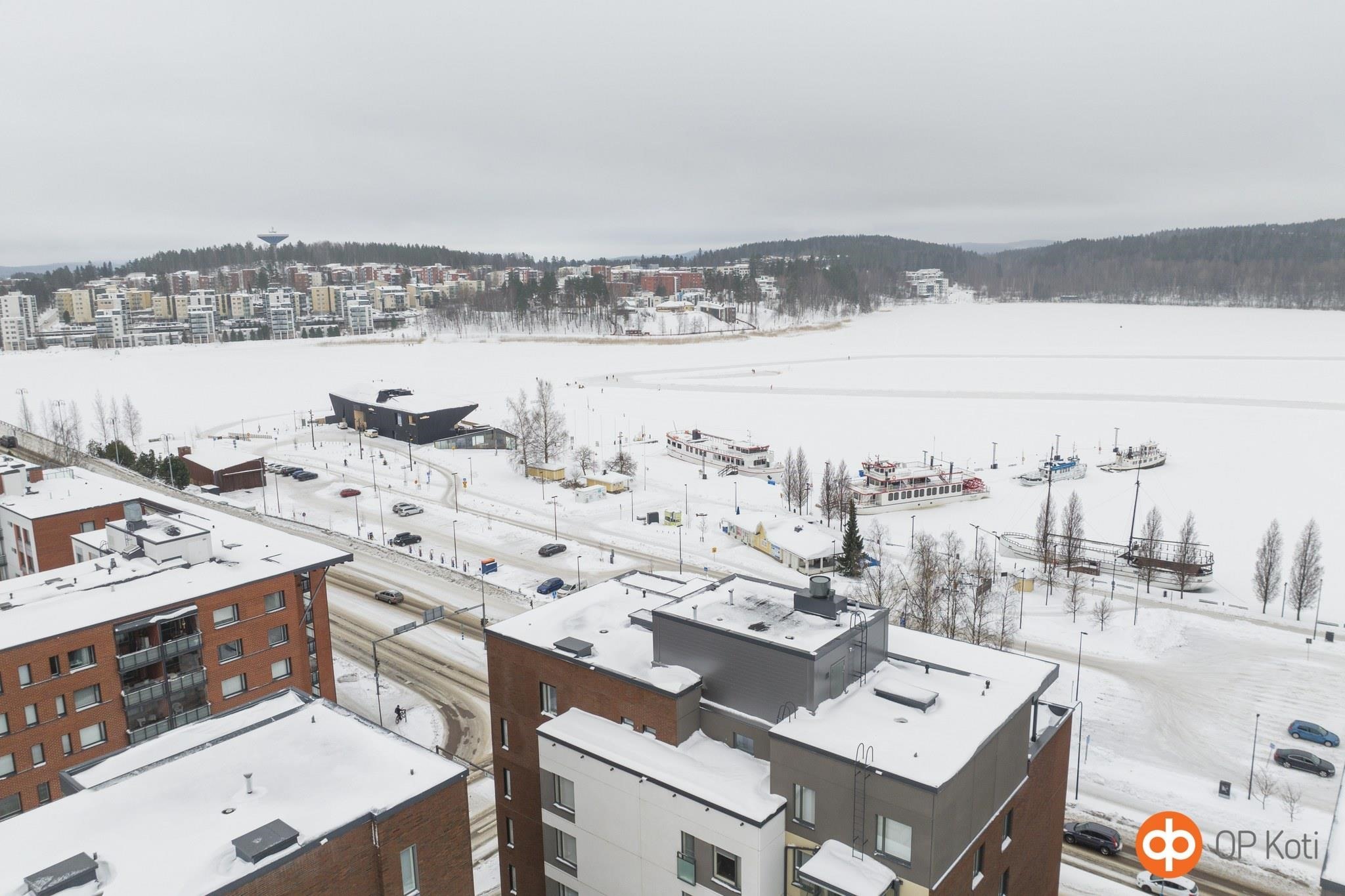 Tämä vuonna 2019 rakennettu tyylikäs, moderni ja valoisa kolmio sijaitsee lähellä keskustaa, arvostetussa Lutakon kaupunginosassa. Siistit, vaaleat pinnat lisäävät avaruuden tuntua ja suurelta, lasitetulta parvekkeelta kelpaa katsella jyväsjärvelle avautuvaa maisemaa vaikkapa aamukahvia siemaillen. Järvimaisemaa pääsee ihailemaan myöskin tilavan olohuone / avokeittiötilan sekä toisen makuuhuoneen ikkunoista. Oma sauna sekä sijainti toisessa kerroksessa ovat omiaan lisäämään asumismukavuutta.