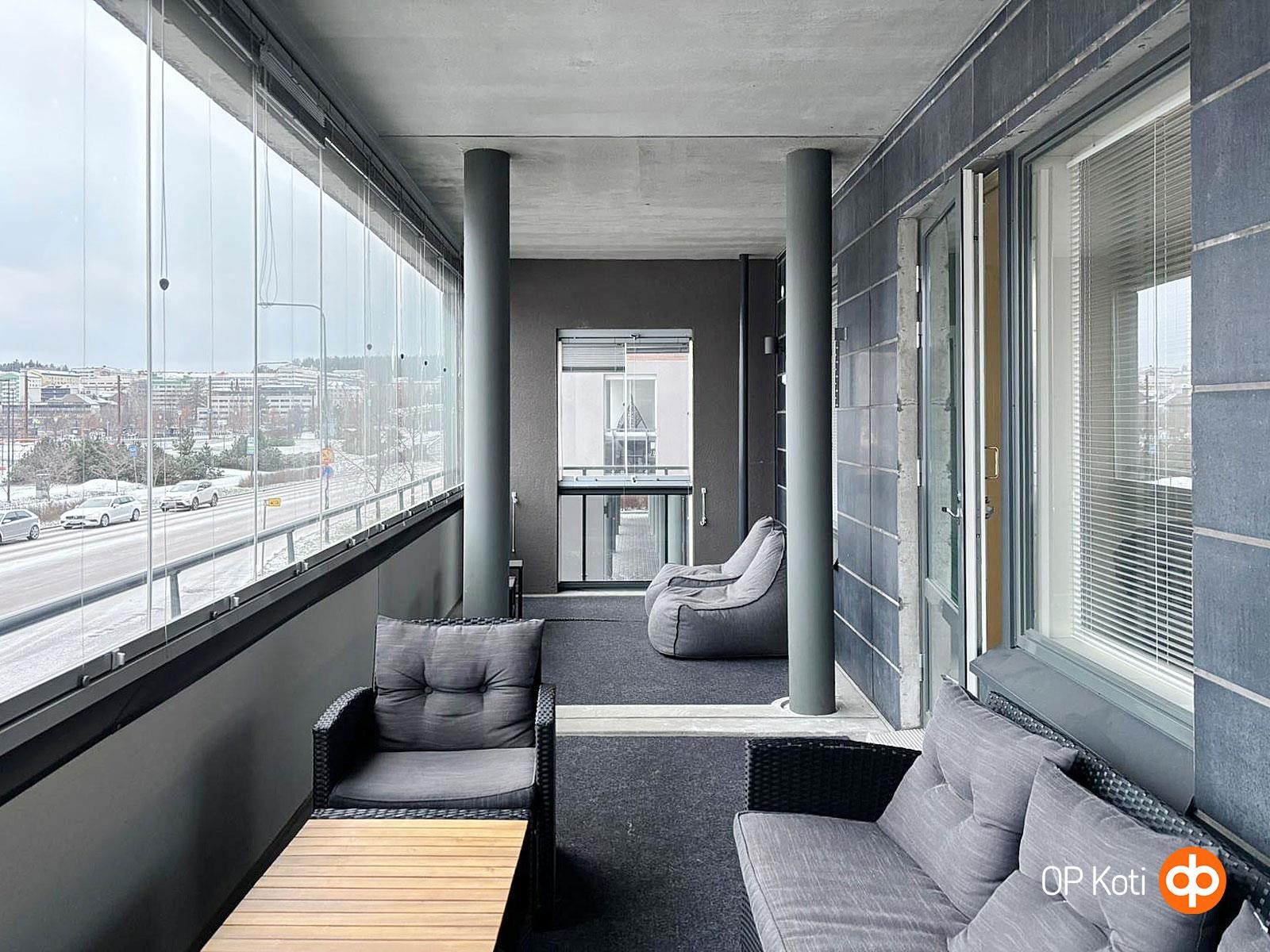 - Suuri, lasitettu parveke, jolta näkymä suoraan Jyväsjärvelle.