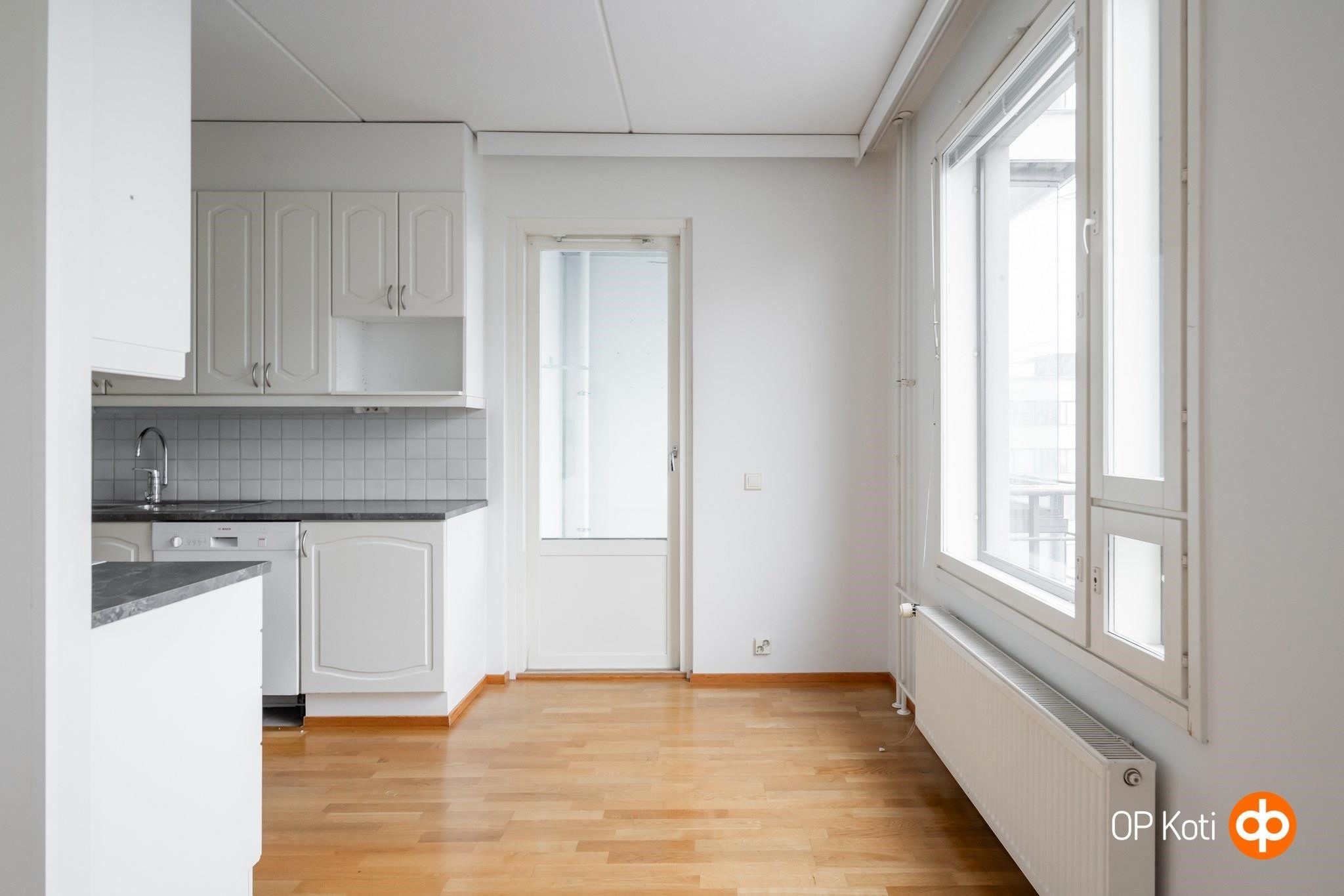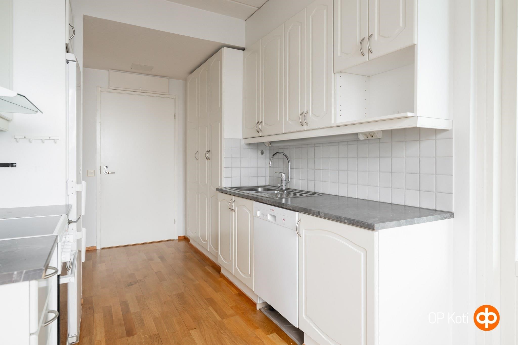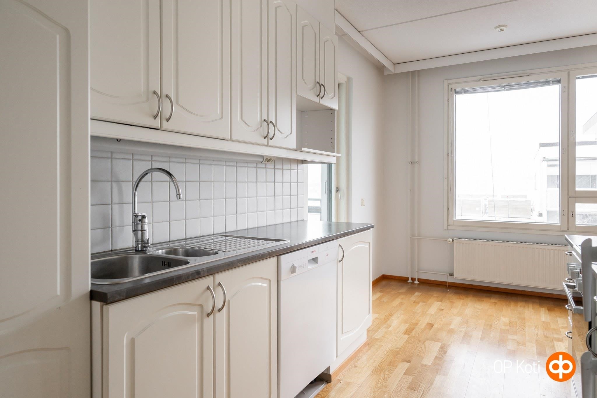 Asunnon keittiö on osittain avoin olohuoneeseen ja varusteltu keraamisella liedellä, astianpesukoneella ja jääkaappipakastimella. Makuuhuoneen yhteydessä oleva vaatehuone tarjoaa kätevän säilytysratkaisun ja oma sauna tuo arkeen ripauksen luksusta. Pintaremonttien ansiosta kodin ilme on raikas ja moderni, parkettilattiat tuovat lämpöä ja tyylikkyyttä.