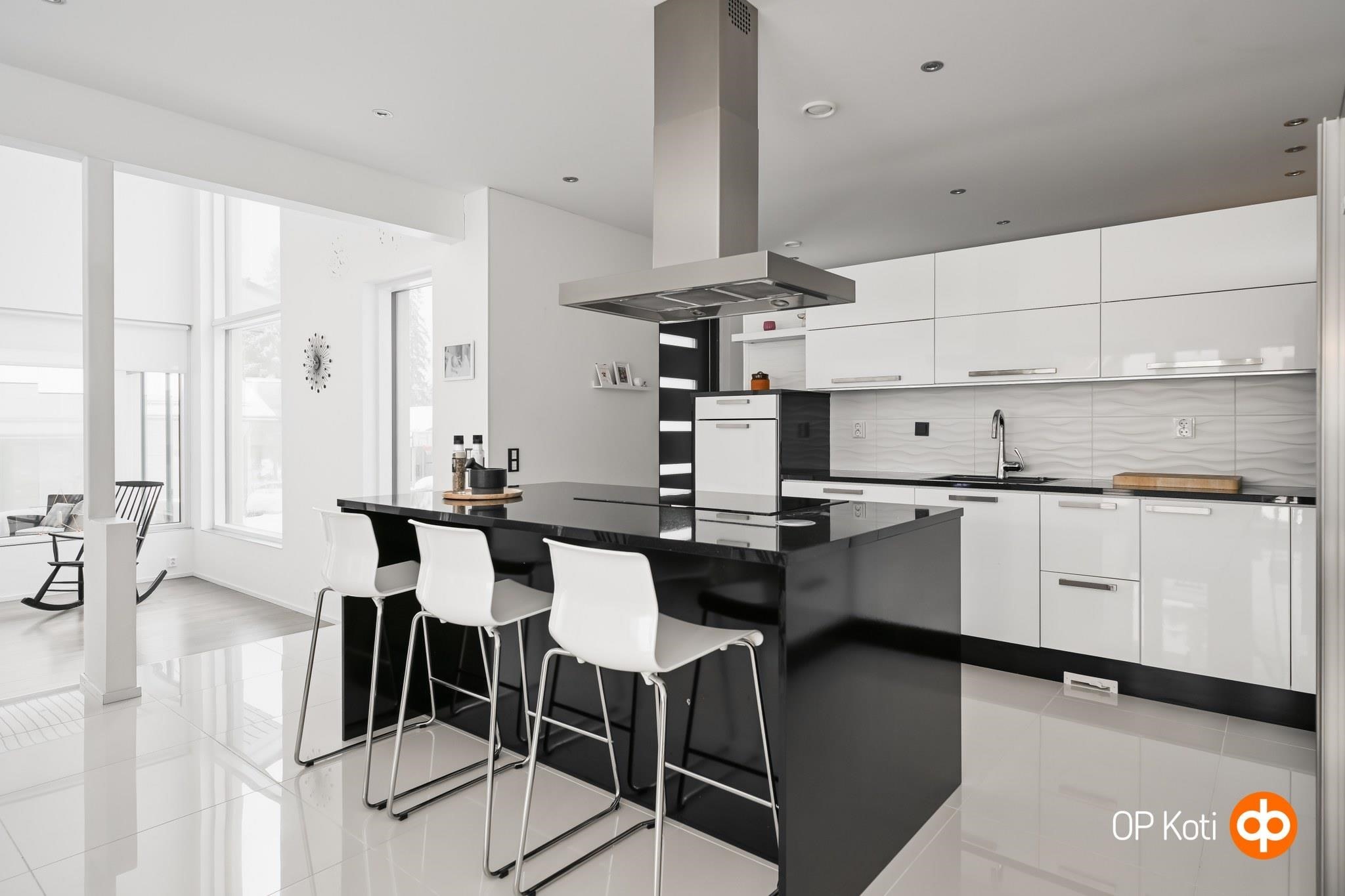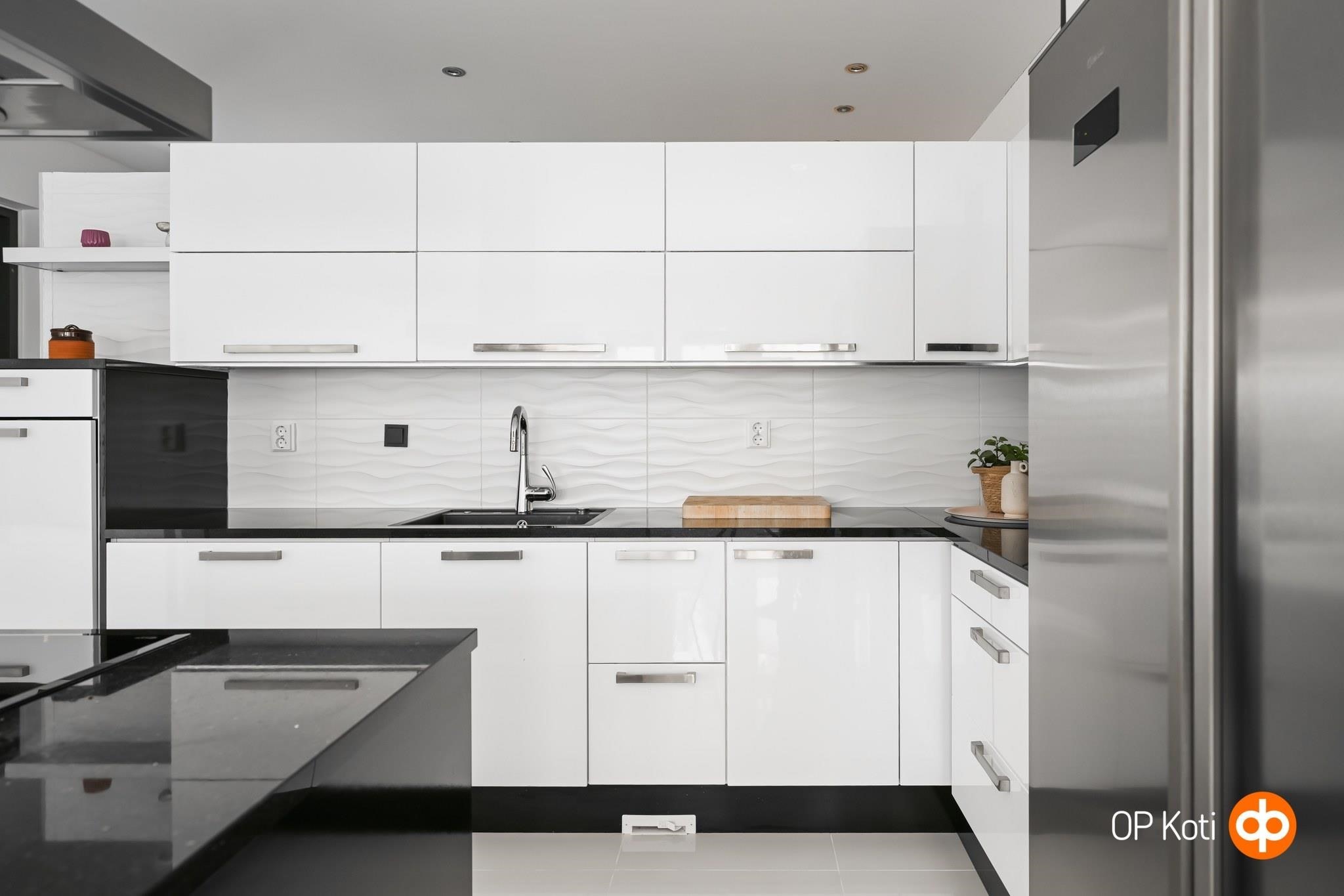 - Jääkaappi, pakastekaappi, erillisuuni, liesitaso, induktioliesi, liesituuletin, mikroaaltouuni, astianpesukone, kaapistot, kiinteät valaisimet, pöytätasojen materiaali (kivitasot).