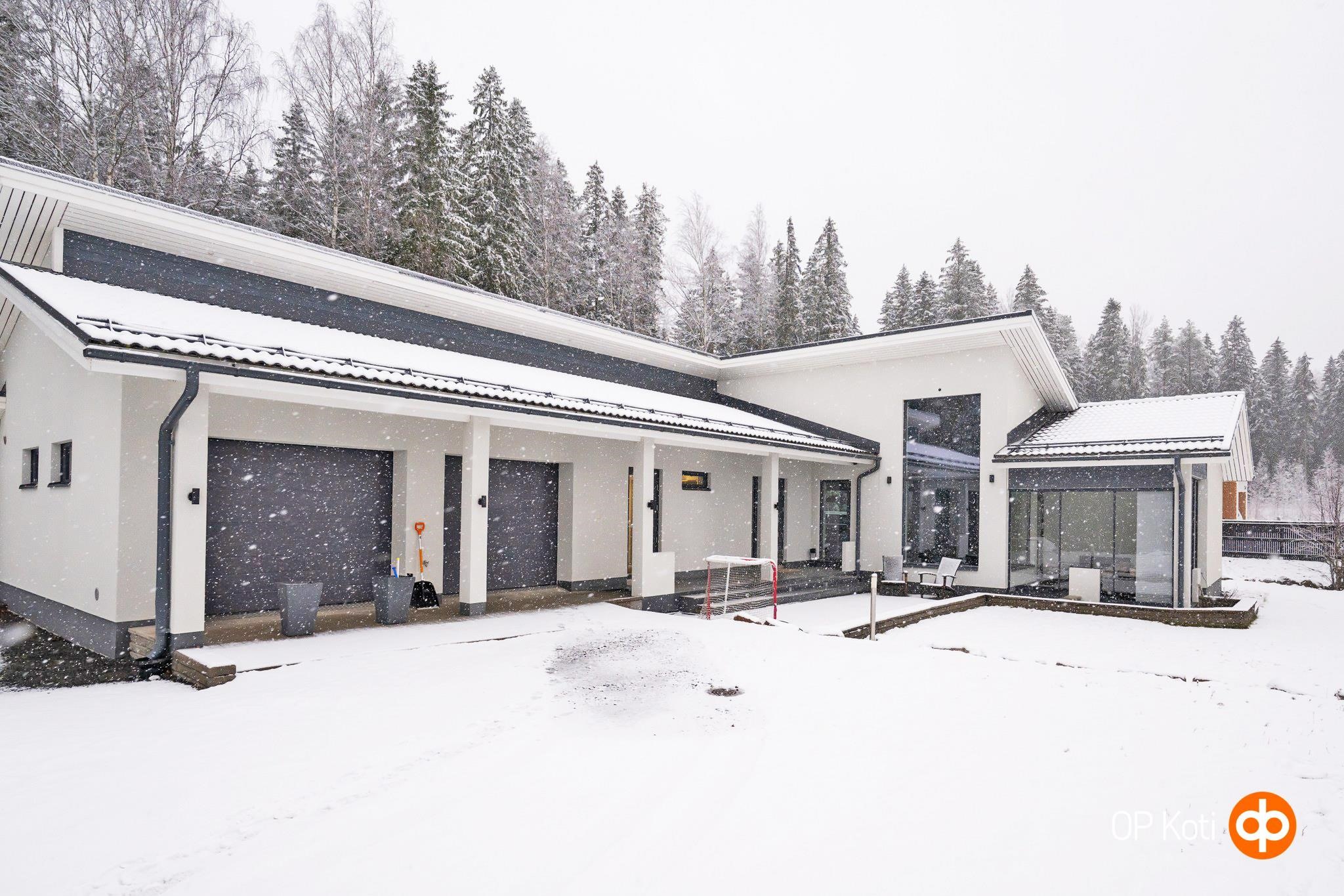 Tämä vuonna 2014 valmistunut yksikerroksinen talo on rakennettu Lammin betoniharkoista, mikä takaa hyvän rakenteellisen kestävyyden ja erinomaisen lämmöneristyksen. Asuintilojen pinta-ala on 170 m², ja lisäksi käytössä on 56 m² autotalli ja varasto. Keittiö ja olohuone muodostavat avaran ja valoisan kokonaisuuden, jossa perhe voi kokoontua yhteisiin hetkiin. Makuuhuoneet tarjoavat rauhallisen tilan lepoon, ja kylpyhuoneessa voi rentoutua saunan lämmössä. Keskuspölynimuri, varaava takka ja kaapeli-TV ovat vain osa kodin varustelusta, joka tekee arjesta sujuvaa.