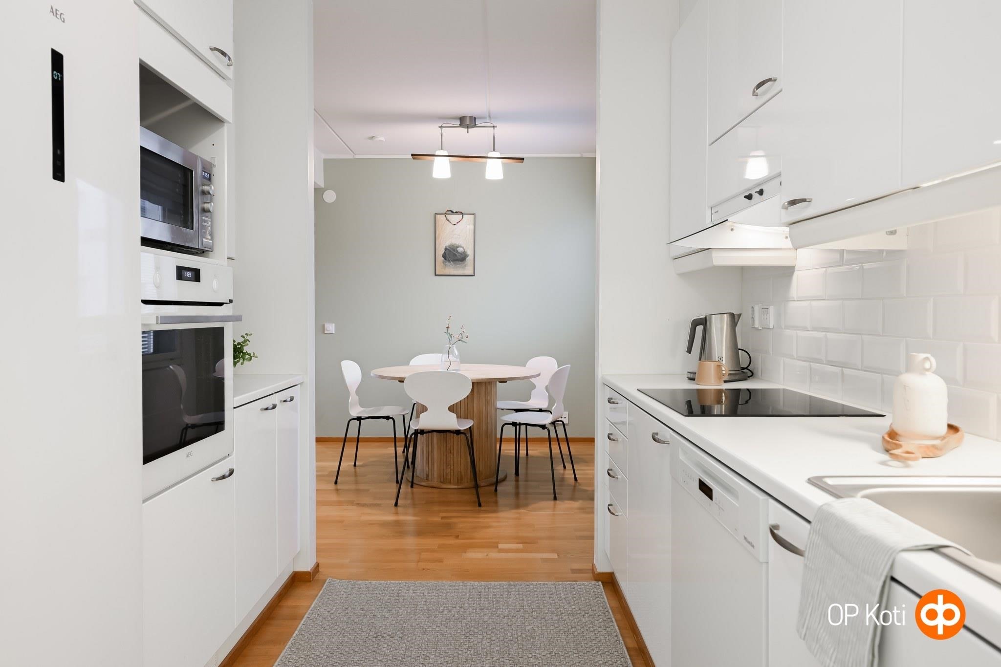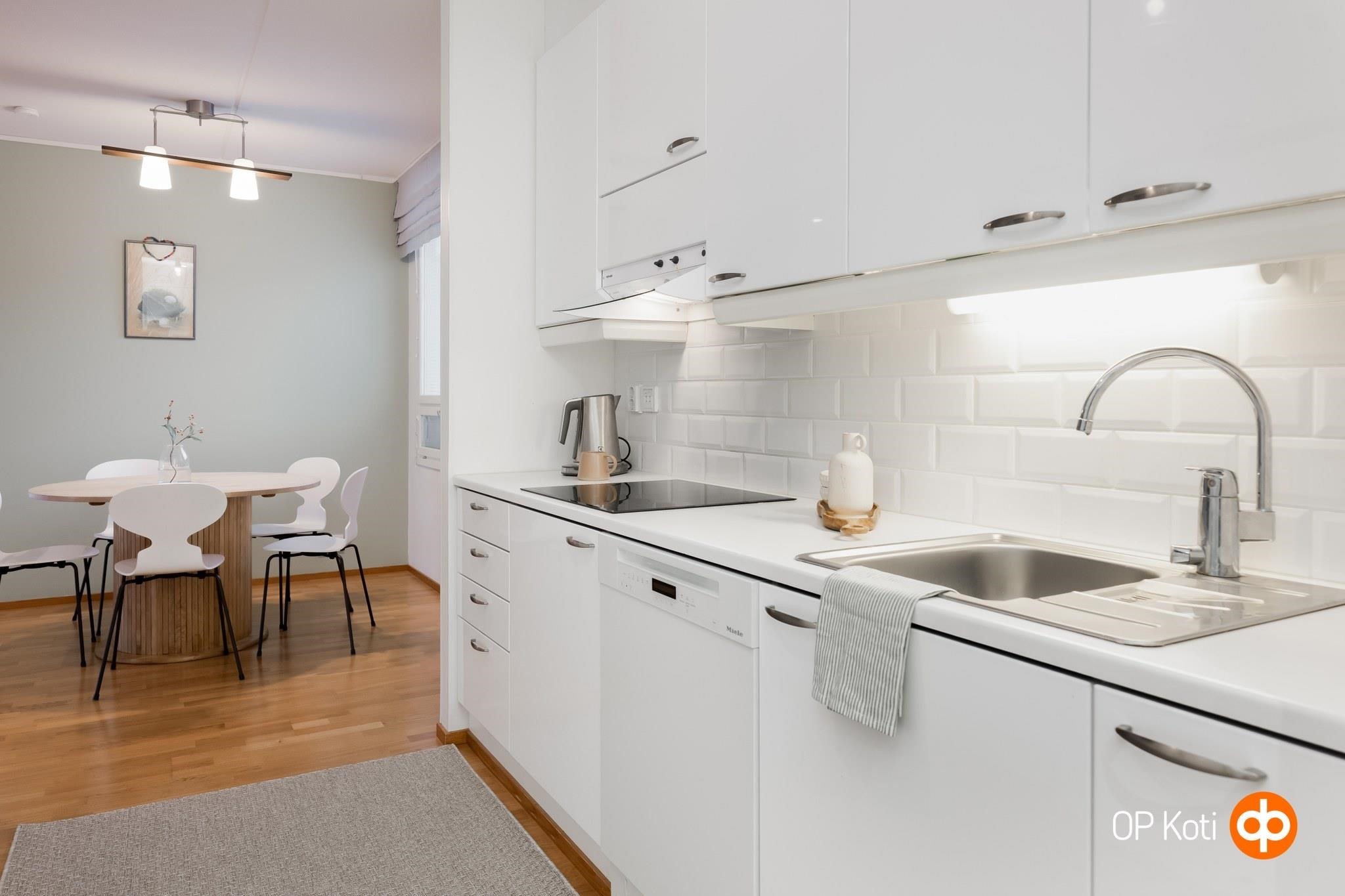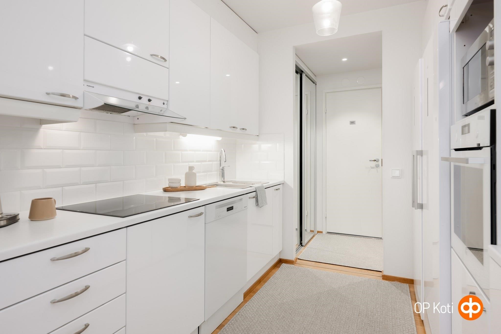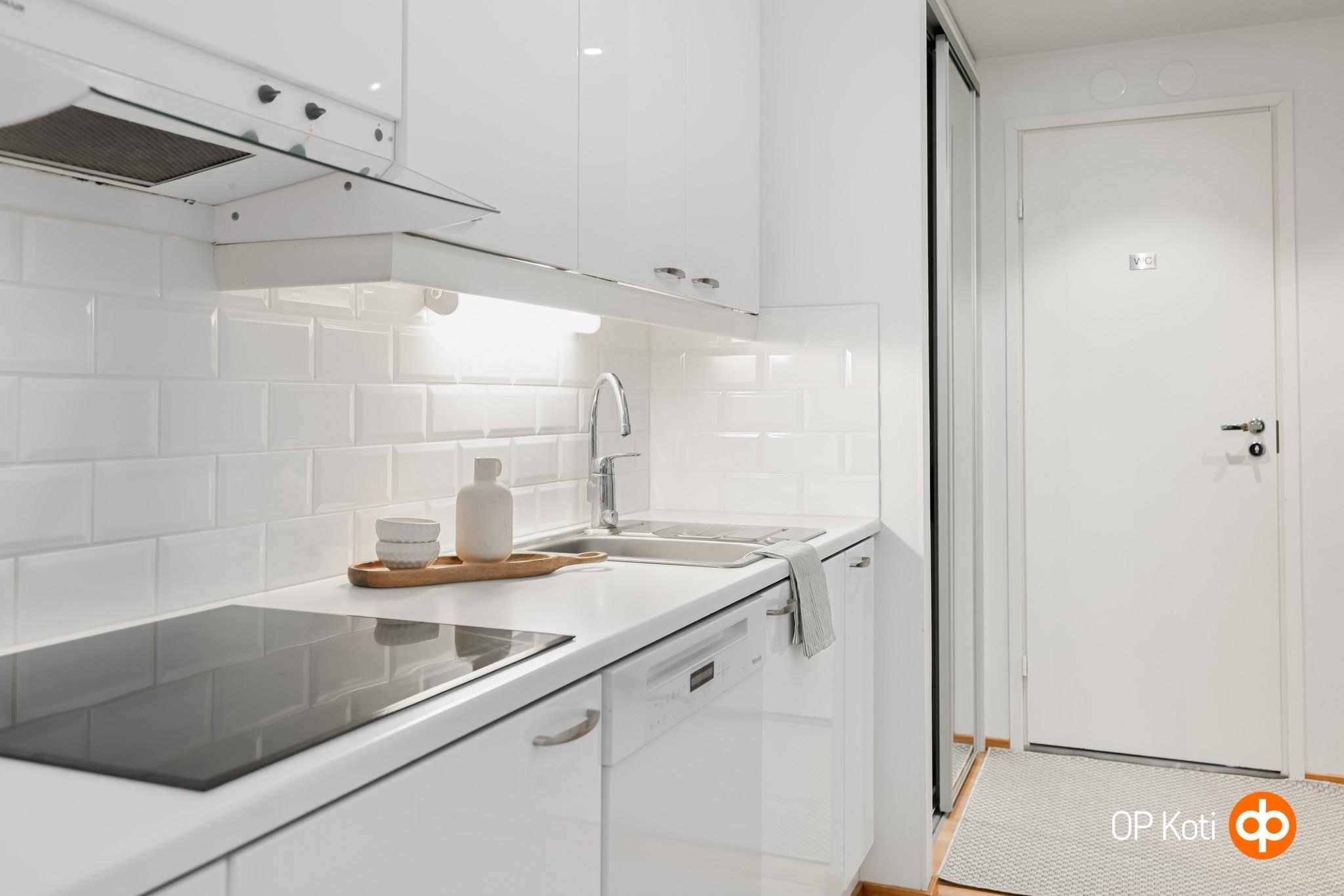 - Jääviileäkaappi, erillisuuni, liesitaso, keraaminen liesi, liesituuletin, astianpesukone, kaapistot, kiinteät valaisimet.