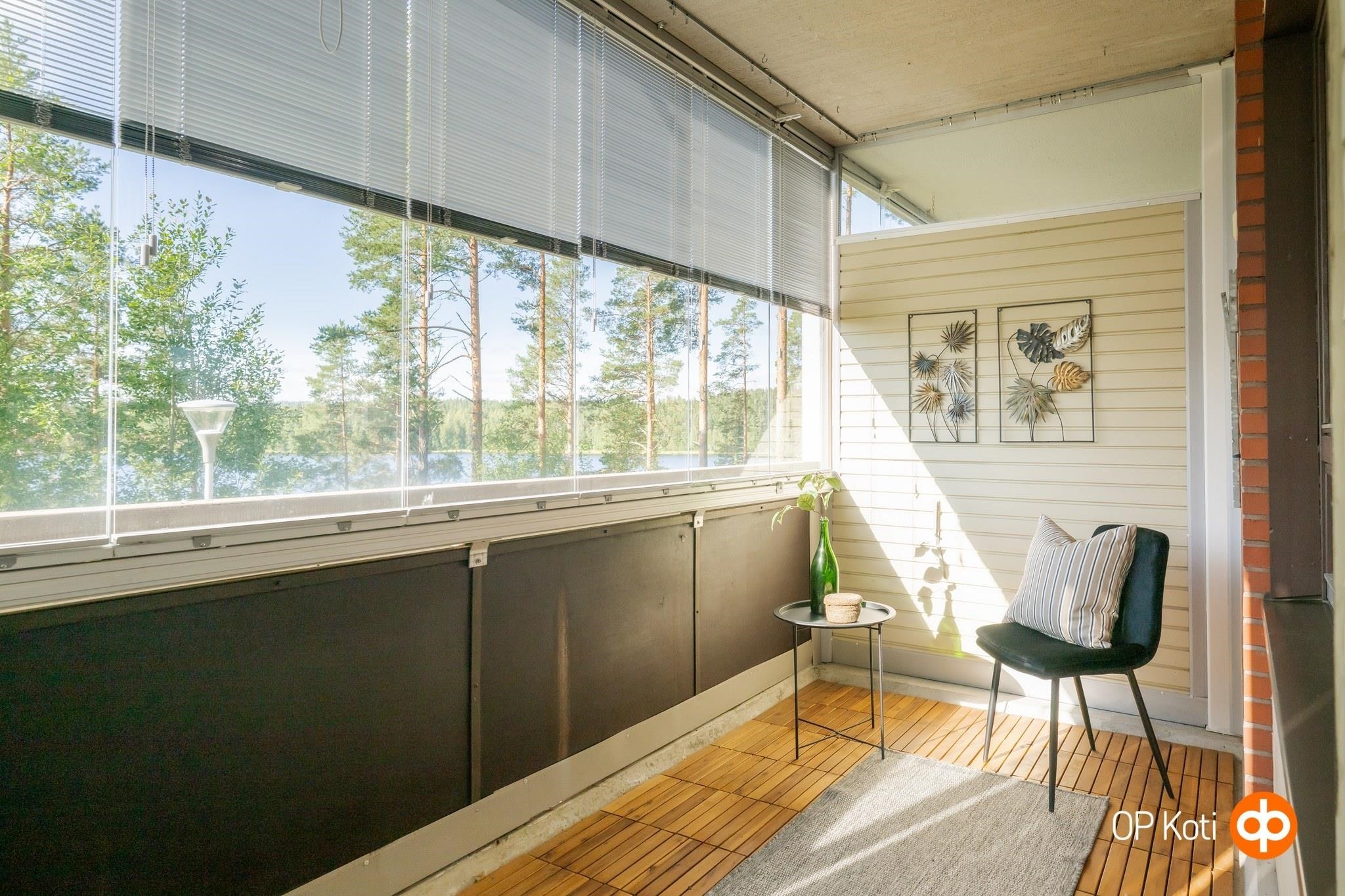 - Lasitettu parveke järven suuntaan, etelään.