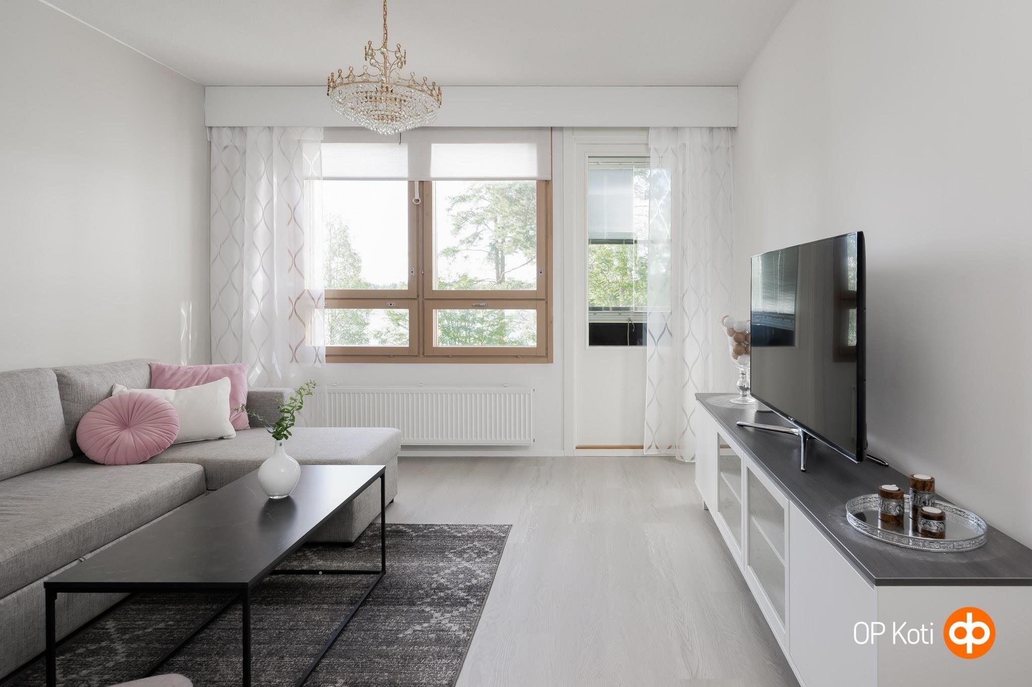 Kauniisti asuinhuoneiden osalta remontoitu, ensimmäisen kerroksen esteetön koti. Keittiökin on saanut uuden ilmeen ja on oikea kokkaajan unelma, suorastaan tyylikäs kokonaisuus. Olohuoneeseen tai tilavaan makuuhuoneeseen sopii hyvin vaikka työpöytä etätöitä ajatellen. Lasitetulta parvekkeelta, joka ei ole maantasalla, aukeaa hieno järvimaisema Jämsänvedelle, kyllä sielu lepää tätä näkymää katsellessa.