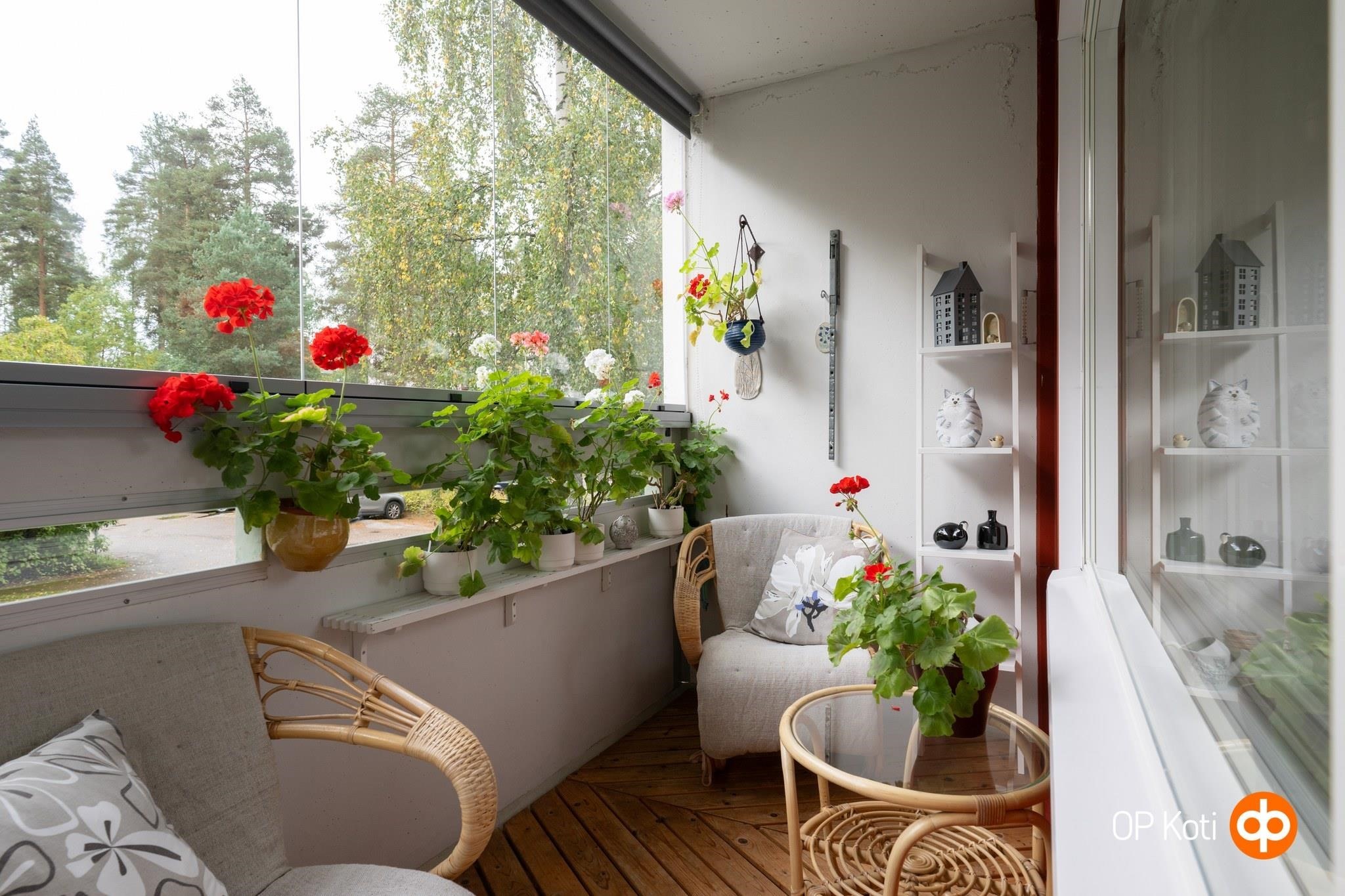 - Lasitettu parveke takapihan puolelle etelä-kaakko.