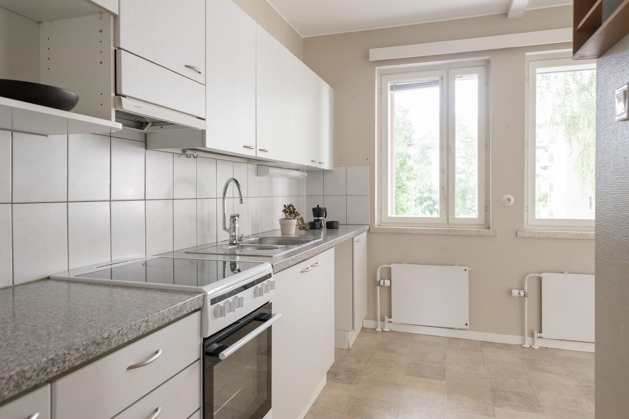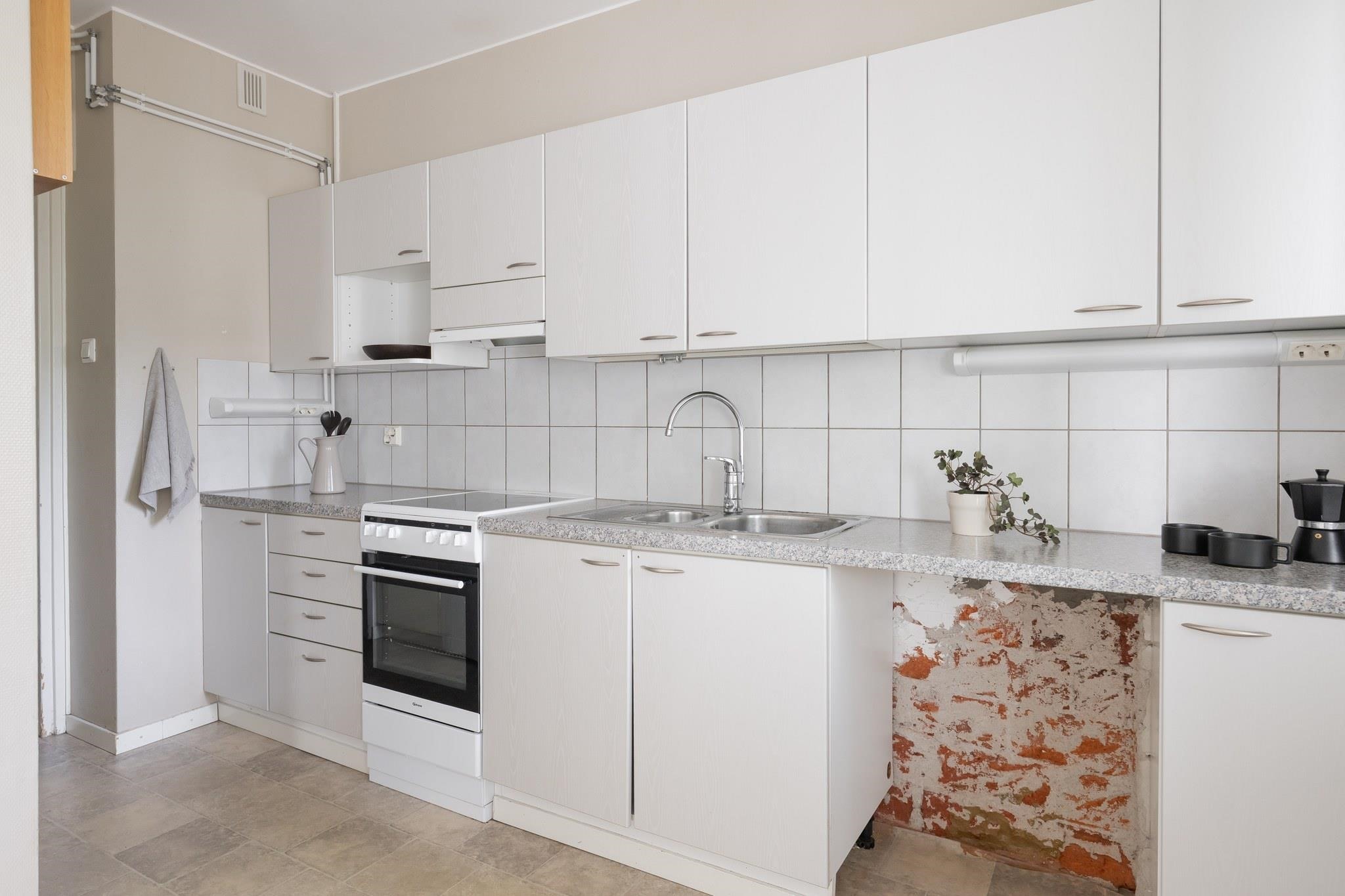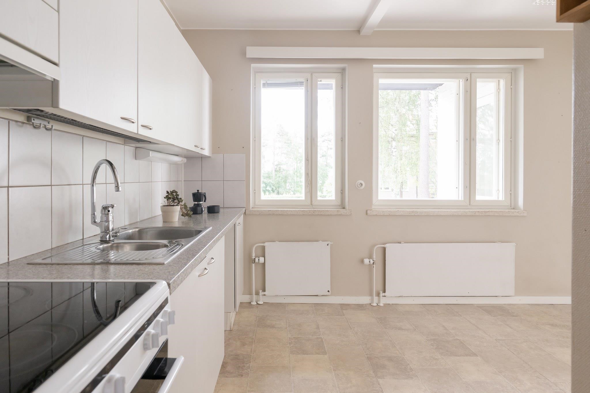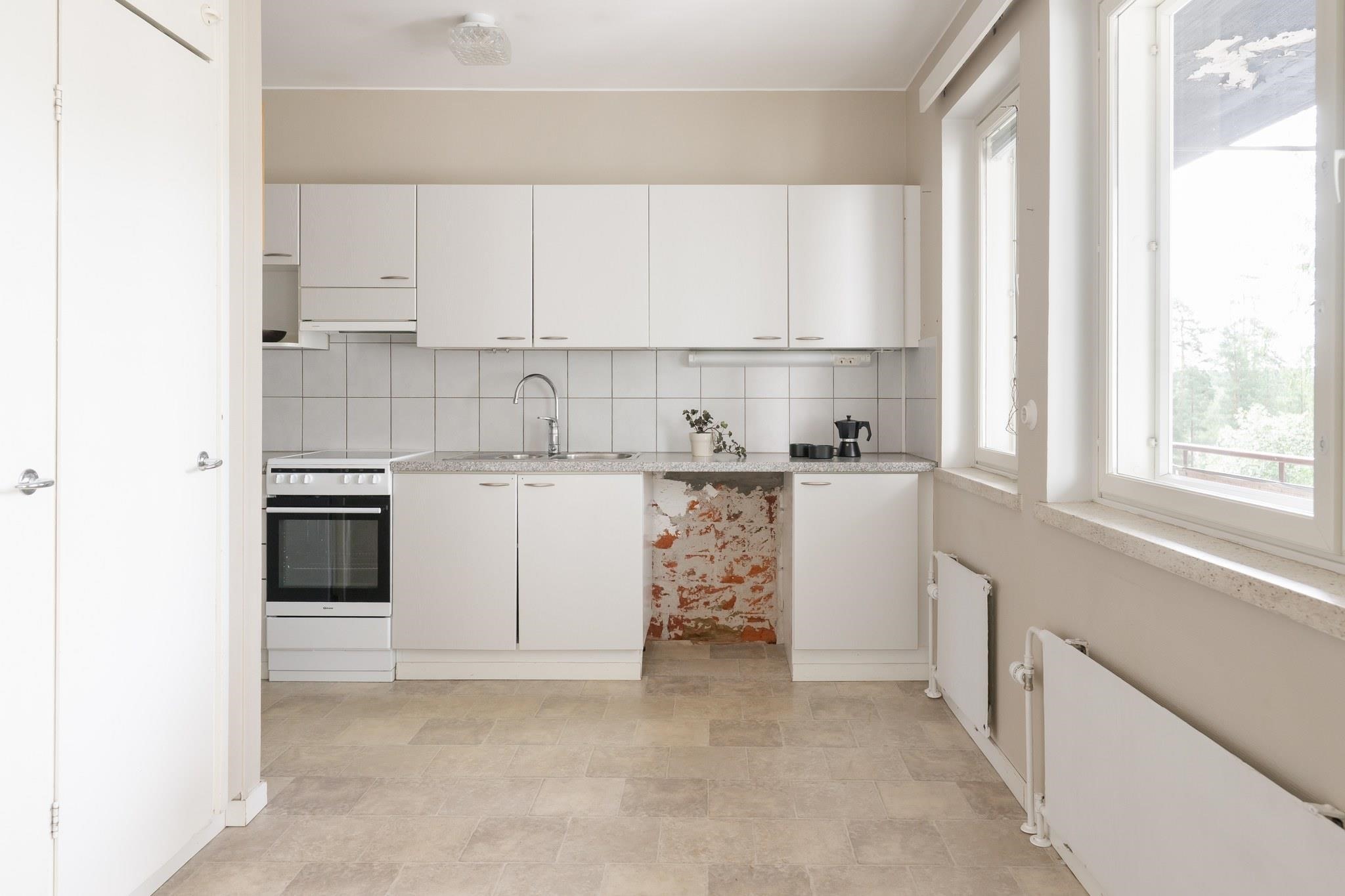 - Tästä keittiöstä teet jo pienillä muutoksilla itselle mieleisen. Varusteina keittiössä on: jääkaappipakastin (2024), sähköliesi jossa keraaminen liesi, liesikupu ja kiinteät valaisimet.