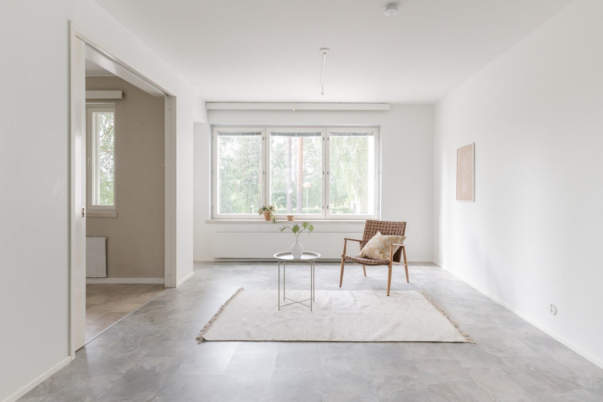 Huoneistossa on avaran pohjaratkaisun lisäksi kolme makuuhuonetta, jotka on sijoitettu molemmin puolin taloa. Erillinen wc ja pesuhuone ovat molemmat remontoitu vuonna 2024, sekä makuuhuoneiden seinä- ja lattia pintoja on uusittu vuosina 2023-2024.