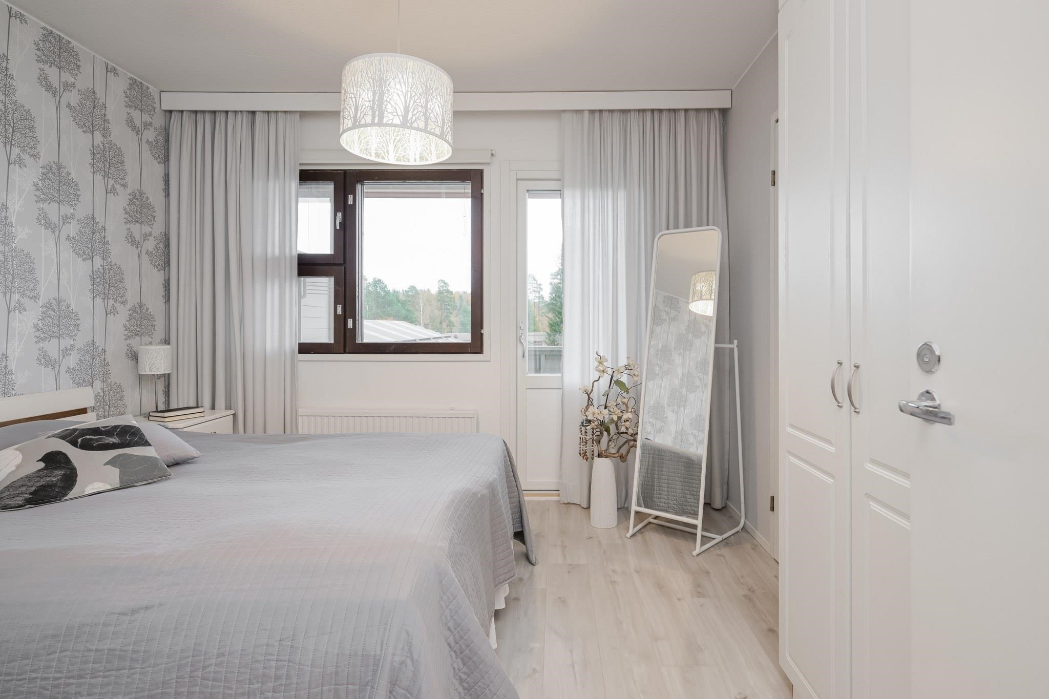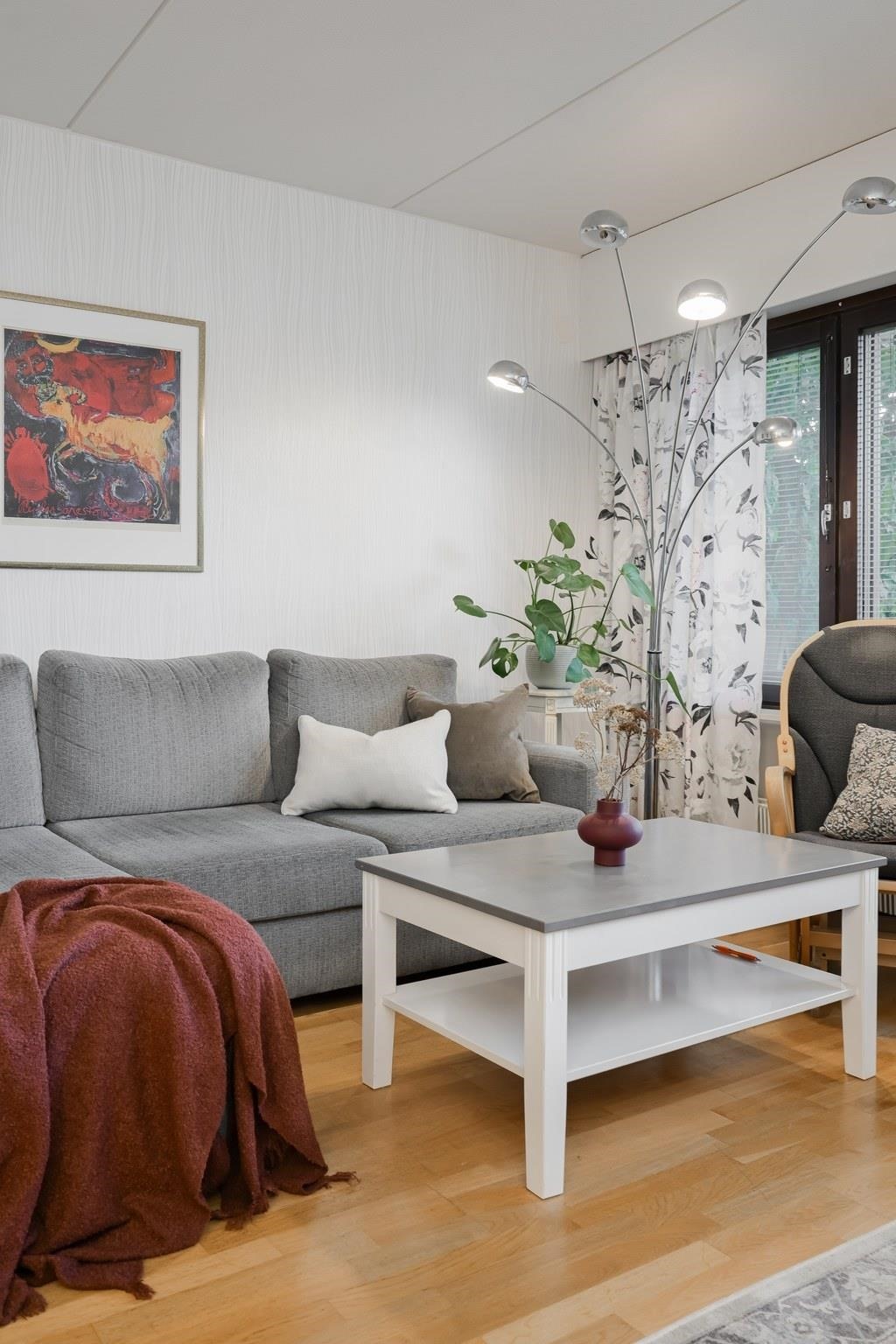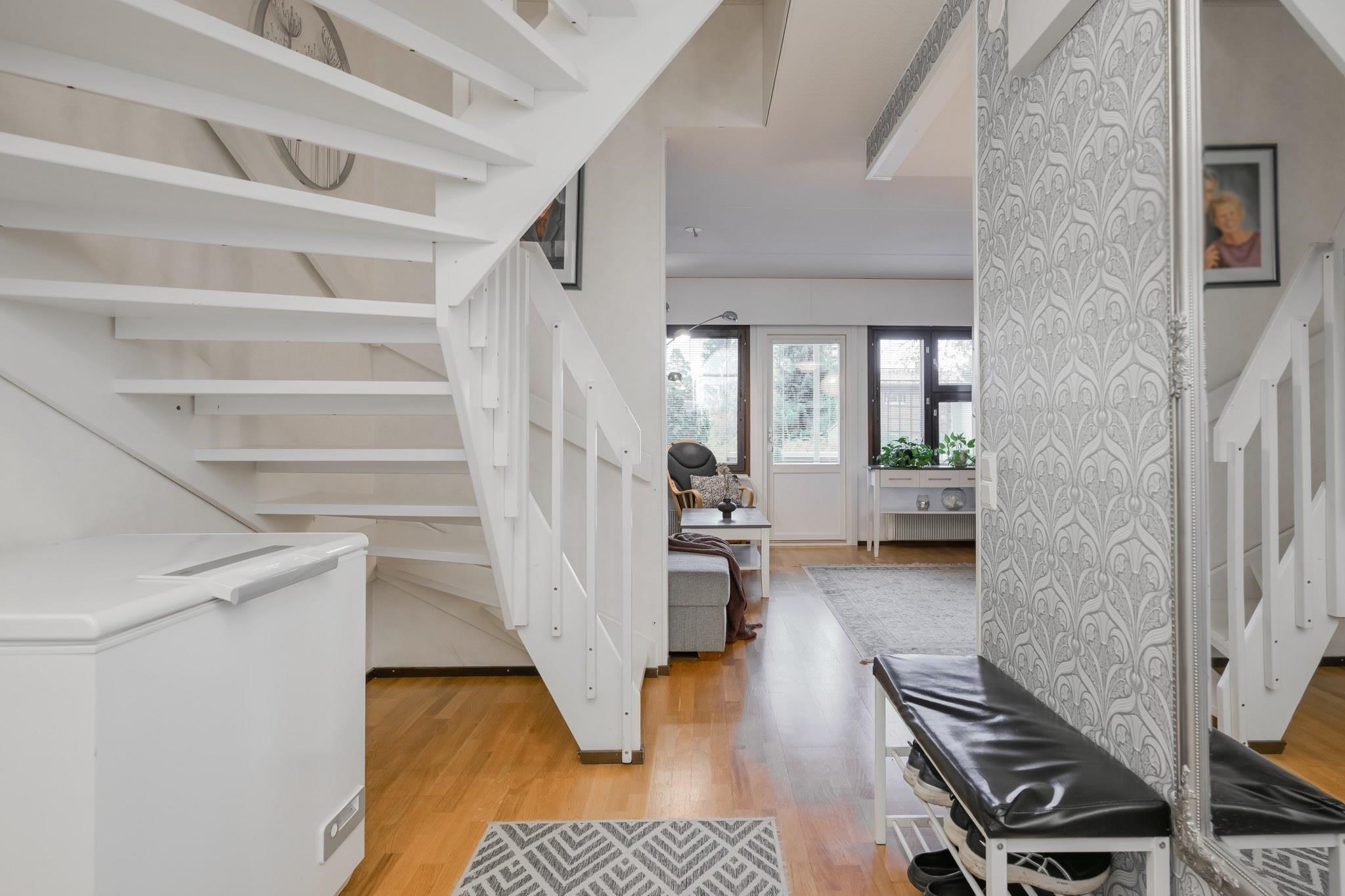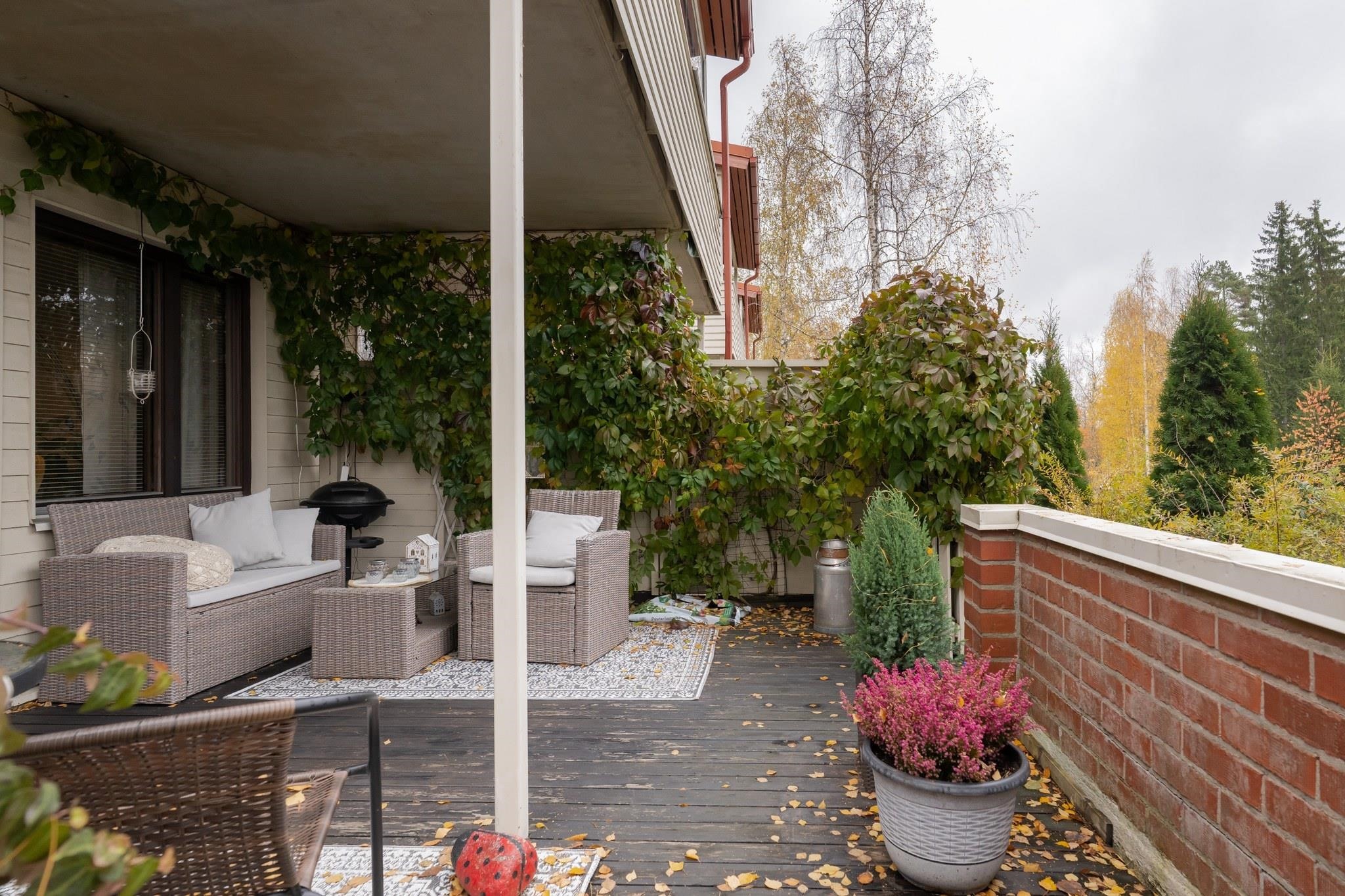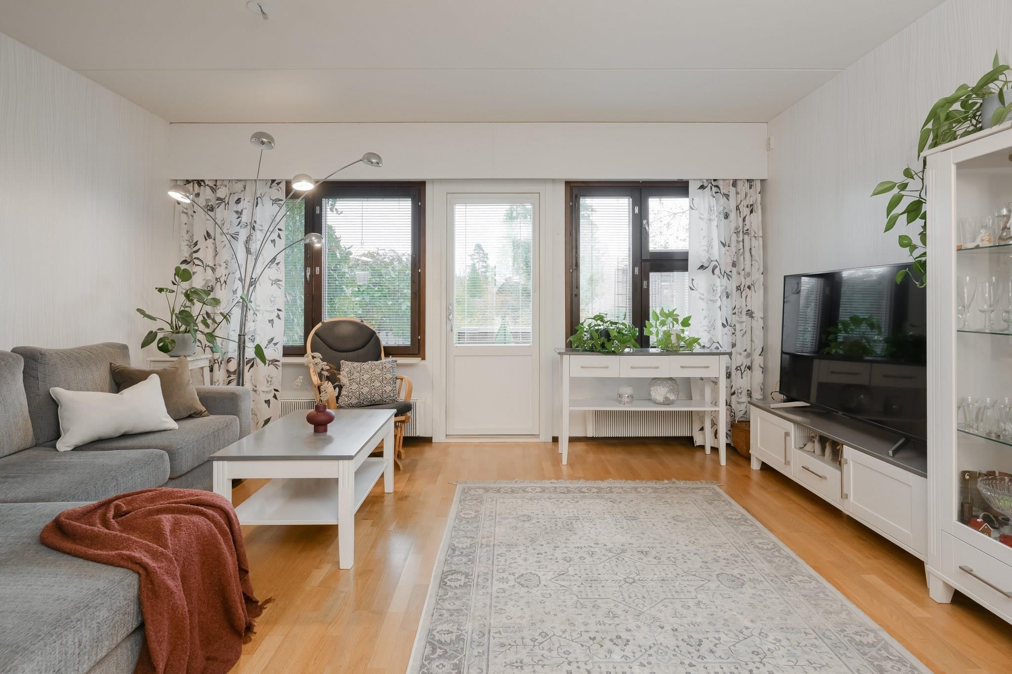 Huoneiston sisääntulo kerroksessa on erillinen wc, keittiö, olohuone ja terassi. Toisessa kerroksessa on kätevä parvi portaikon päällä, pesuhuone, sauna, toinen erillinen wc ja kaksi makuuhuonetta, jossa toisessa parveke. Pienillä päivityksillä tässä käytännöllisessä kodissa viihtyy varmasti pidempäänkin, eikä mitään silti ole välttämätöntä tehdä.