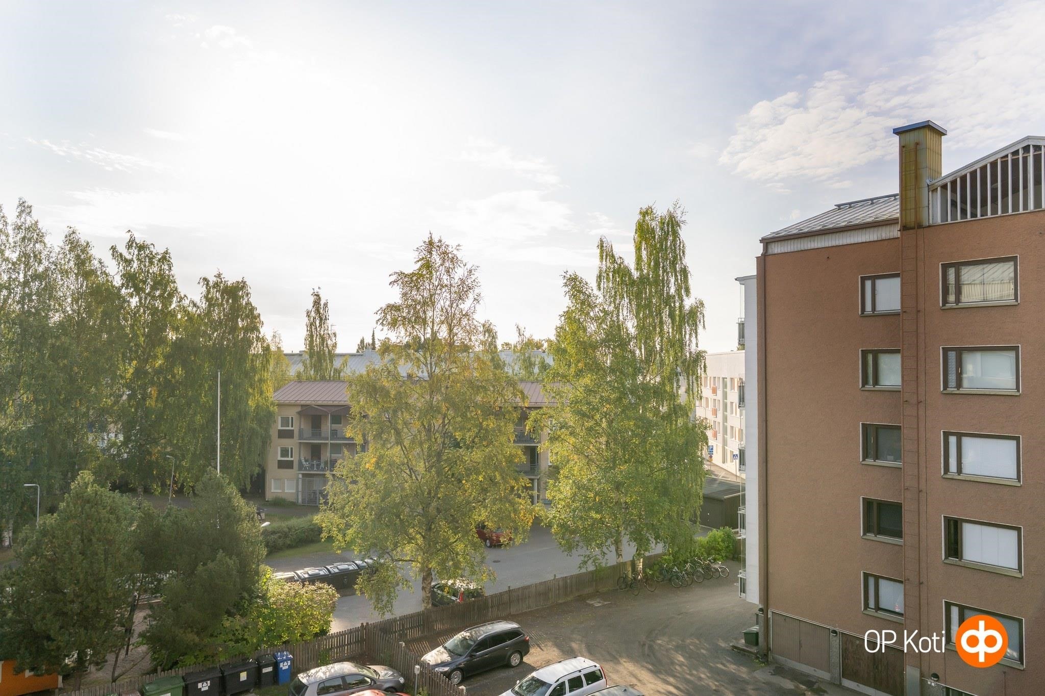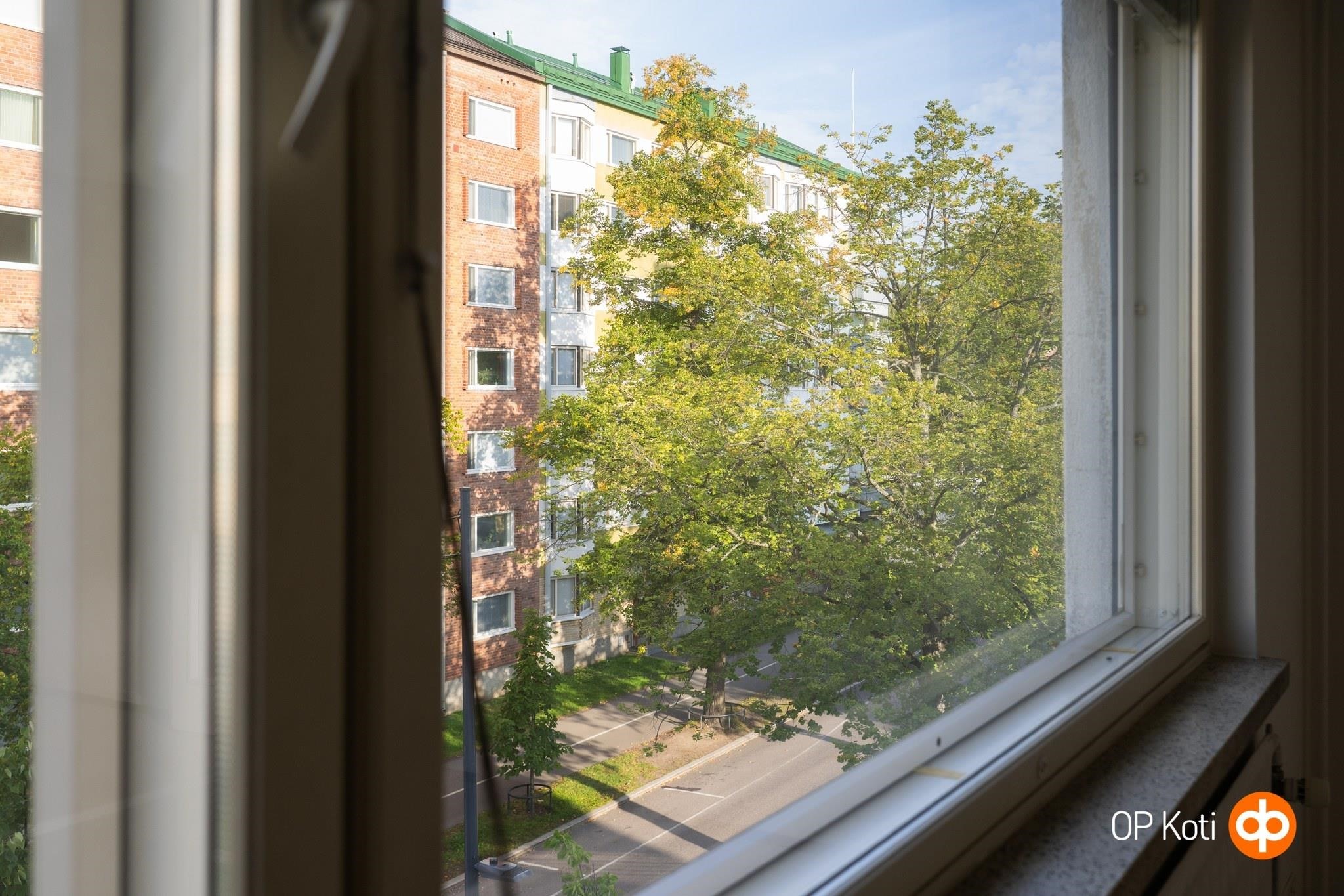 - Keittiö ja makuuhuone etelän suuntaan, olohuone lännen suuntaan, Puistokadulle päin.