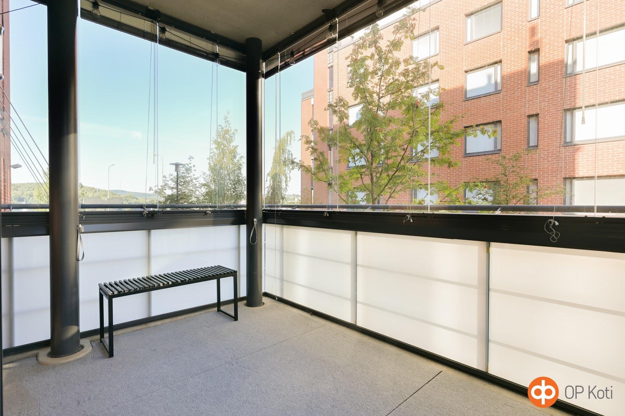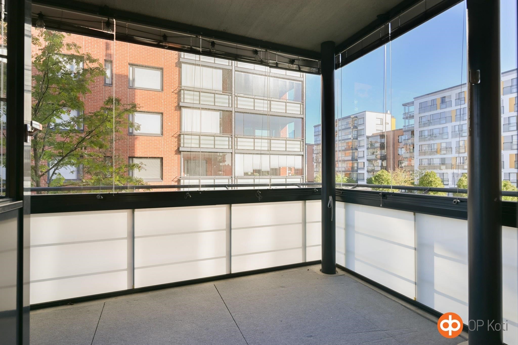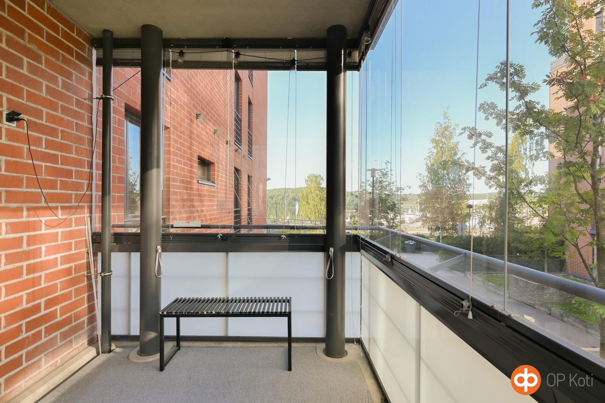 - Lasitettu parveke, josta näkymät sisäpihalle ja tien yli satamaan