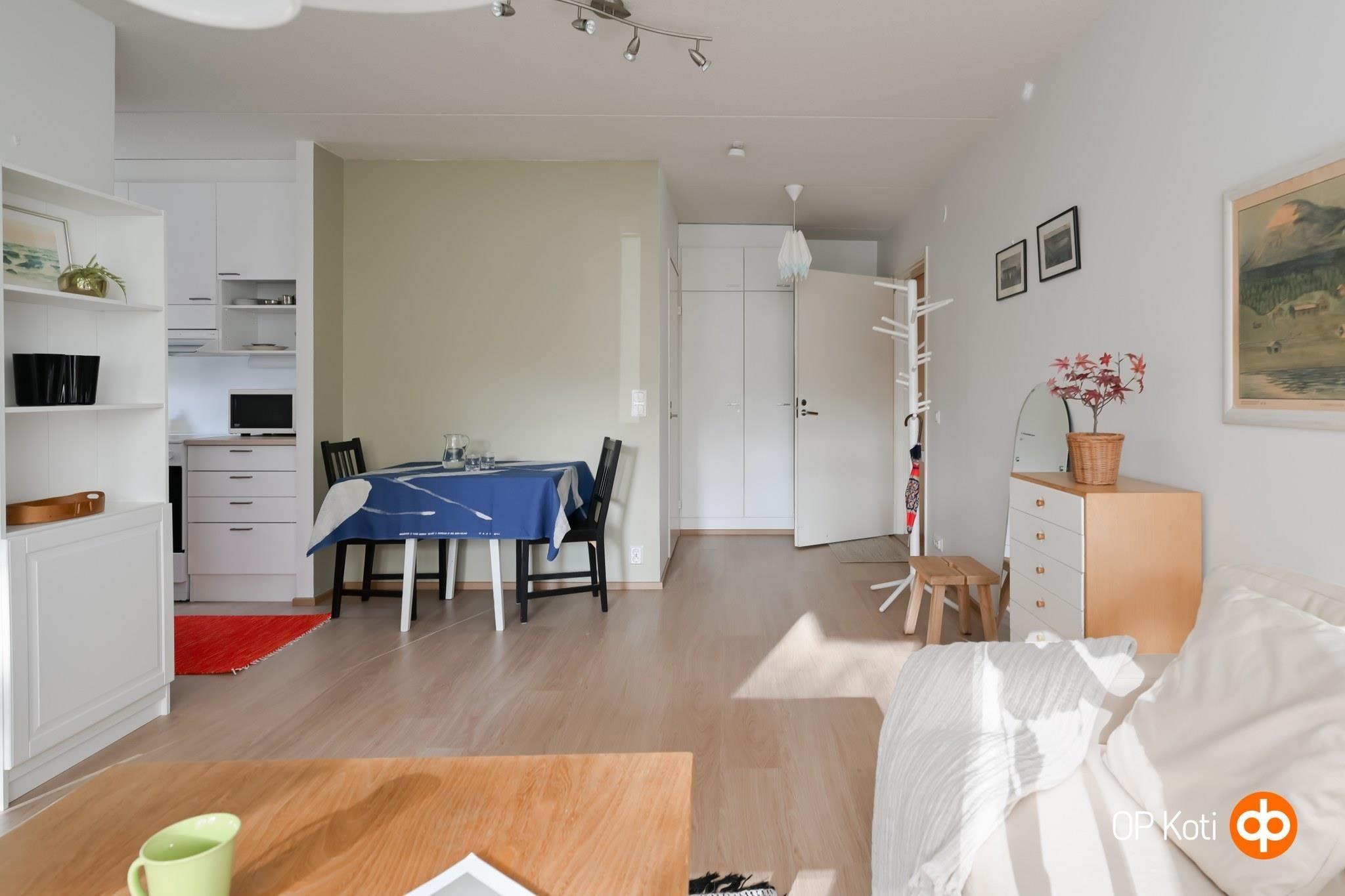 Tämä erittäin siistikuntoinen ja viihtyisä pikkukoti sijaitsee vuonna 1995 rakennetun hissitalon alimmassa kerroksessa, huoneistoon on esteetön kulku. Asunnossa on hyvin suunniteltu pohja, jossa 2023 remontoitu keittiö, ruokailusyvennys ja olohuone muodostavat kodikkaan yhtenäisen tilan. Sauna ja tilava kylpyhuone on niin ikään uusittu 2023. Huoneistoon kuuluu etelänsuuntainen terassi, josta saa lasittamalla aurinkoa tulvivan lisähuoneen pidentämään kesäkautta.
