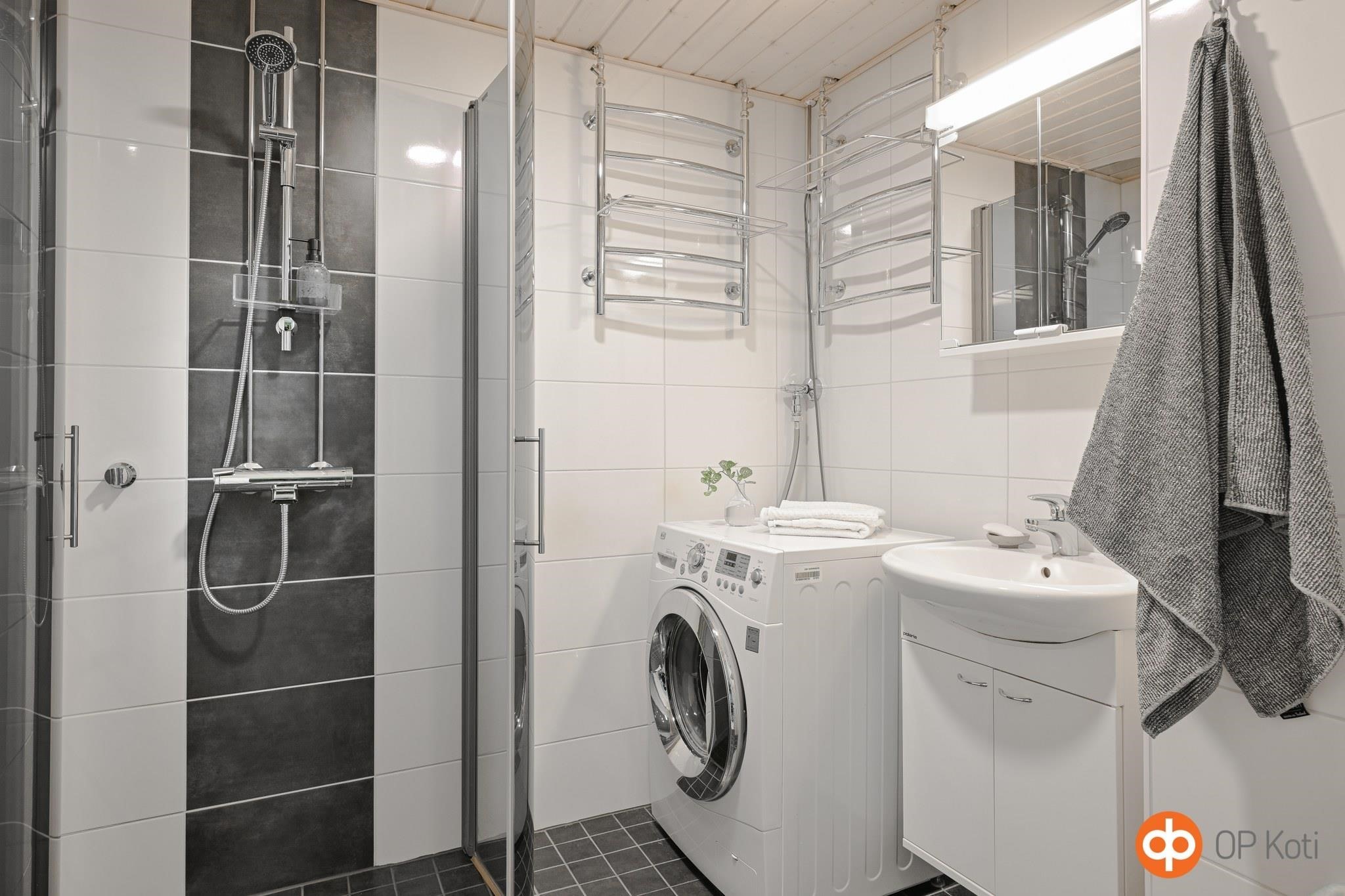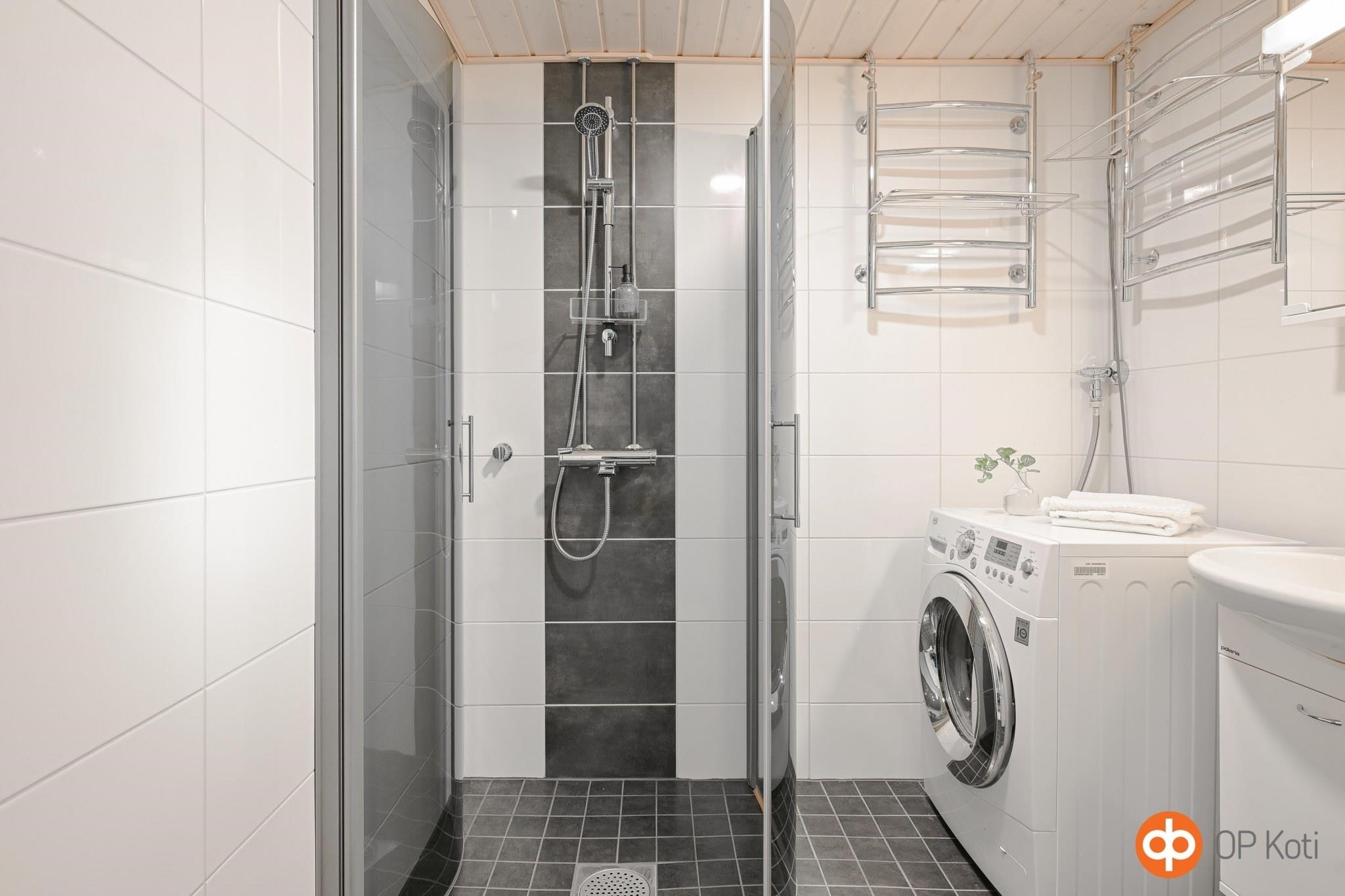 - Kylpyhuone, erillinen wc remontoitu 2015, suihku, suihkuseinä taittuvat, peilikaappi, allaskaappi, pesukoneliitäntä, kiinteät valaisimet. Rättipatteri. Kylpyhuoneremontti 2015