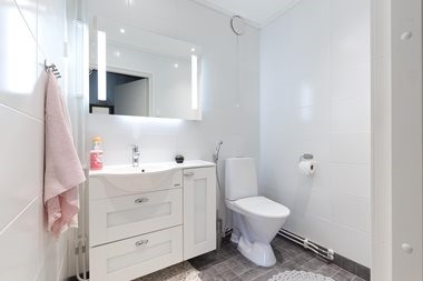 - Sauna, puukiuas, kylpyhuone, erillinen wc, suihku, pesukoneliitäntä, kiinteät valaisimet.