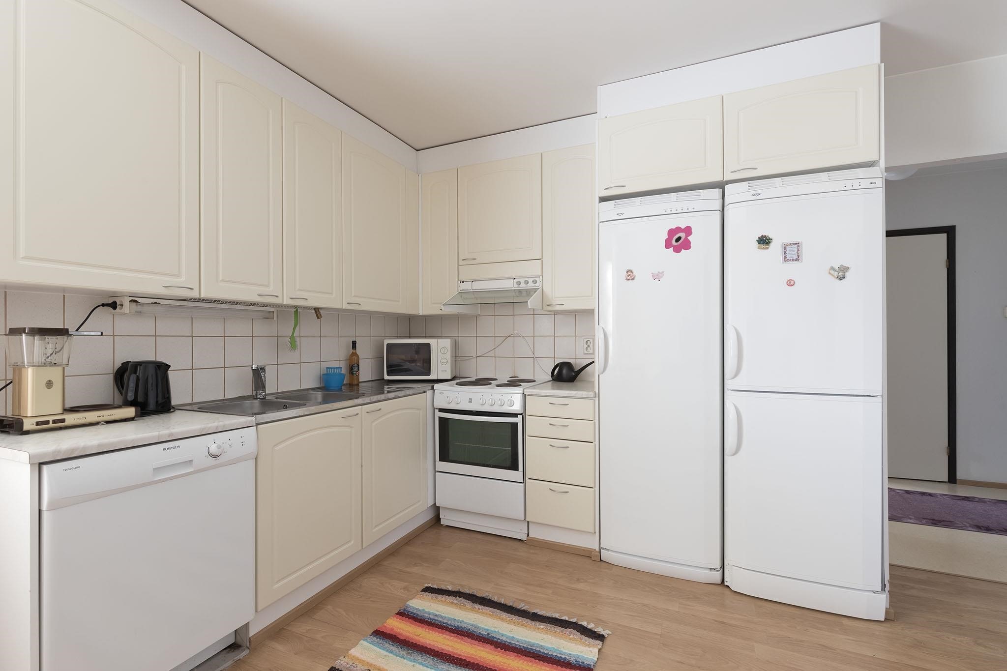 - Jääkaappi, pakastekaappi 2-osainen, sähköliesi, liesituuletin, astianpesukone (käytetty hyvin vähän), kaapistot, kiinteät valaisimet.
