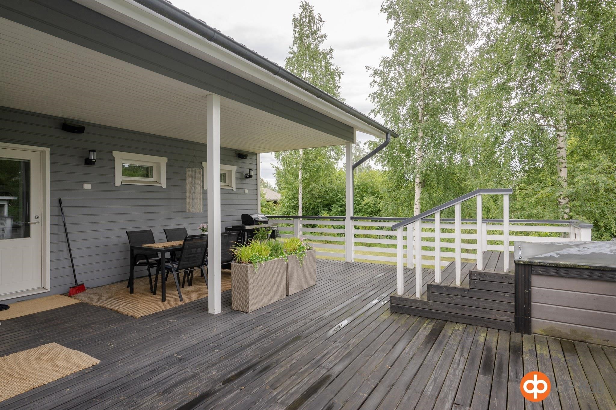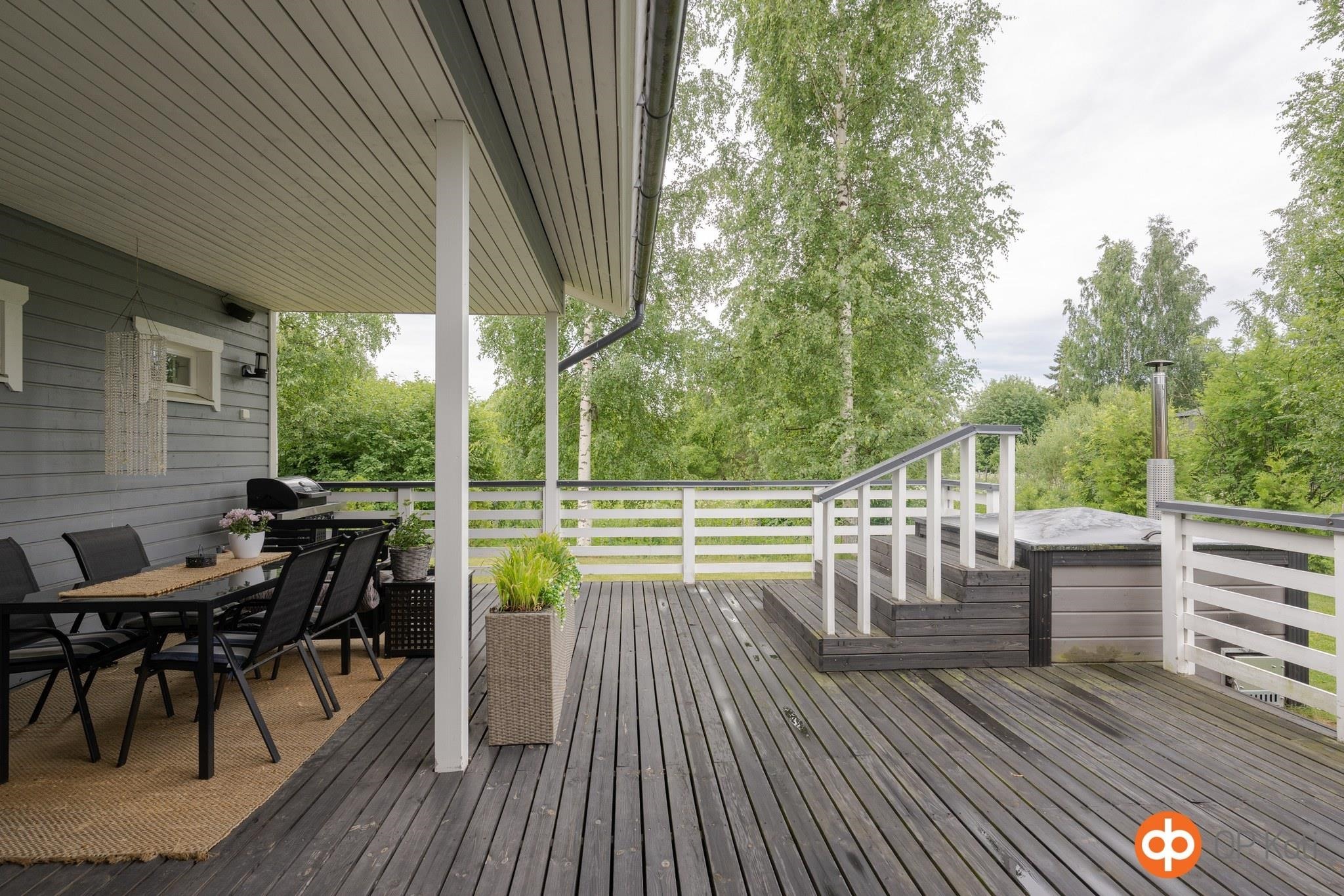 Aivan Hankasalmen keskustassa, palveluiden äärellä, sijaitsee tämä, vuonna 2015 valmistunut ihastuttava ja viihtyisä omakotitalo. Tässä kodissa on kaikki kohdallaan: avara pohjaratkaisu, harmonisen yhtenäinen sisustus ja hyvät säilytystilat. Koti on maalämmössä, lisäksi löytyy vielä ilmalämpöpumppu ja varaava takka - hyvin maltilliset asumiskustannukset. Luksusta elämään tuovat poreamme ja palju. Reilunkokoisella tontilla on myös autokatos kahdelle autolle sekä varastotilaa. Rakennusoikeutta jäljellä. Varaa esittelyaikasi välittäjältä!