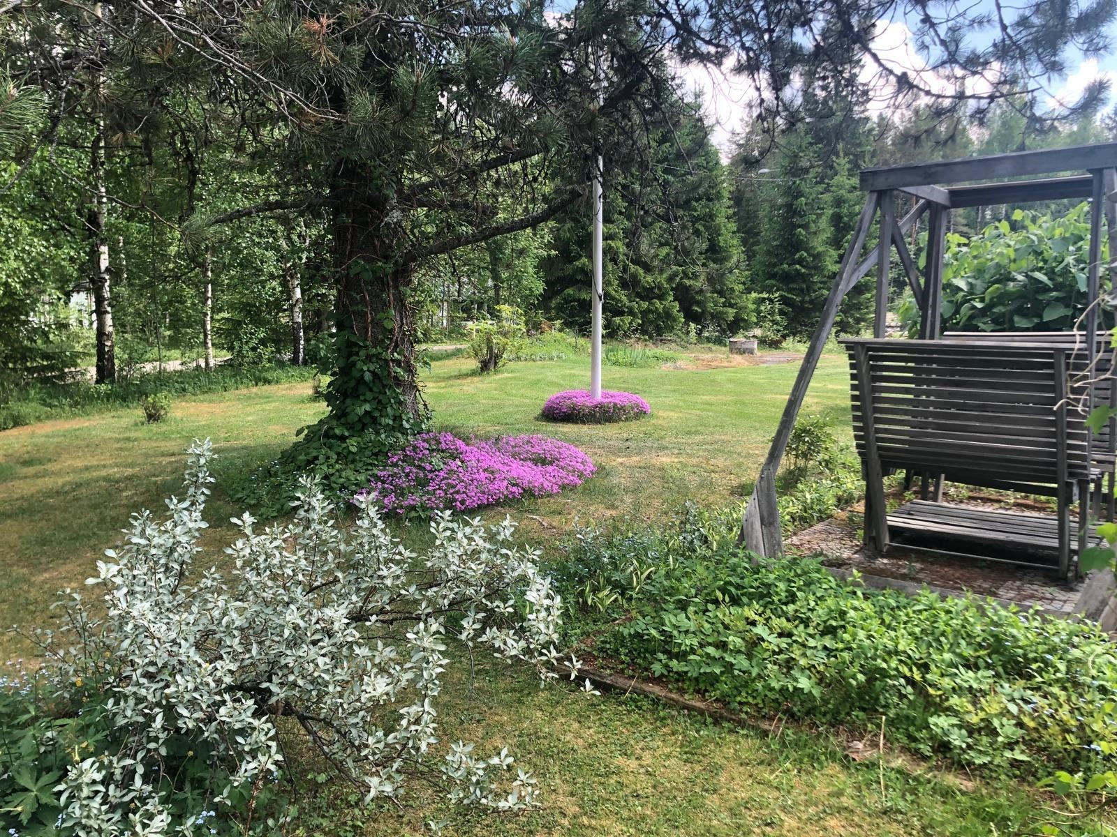 Aurinkoinen pihapiiri Peräläntien varrella tarjoaa suotuisan pihapiirin pienen väen puuhastelulle. Tilaa löytyy myös kotitarveviljelyyn, puutarhurikin viihtyy taatusti.