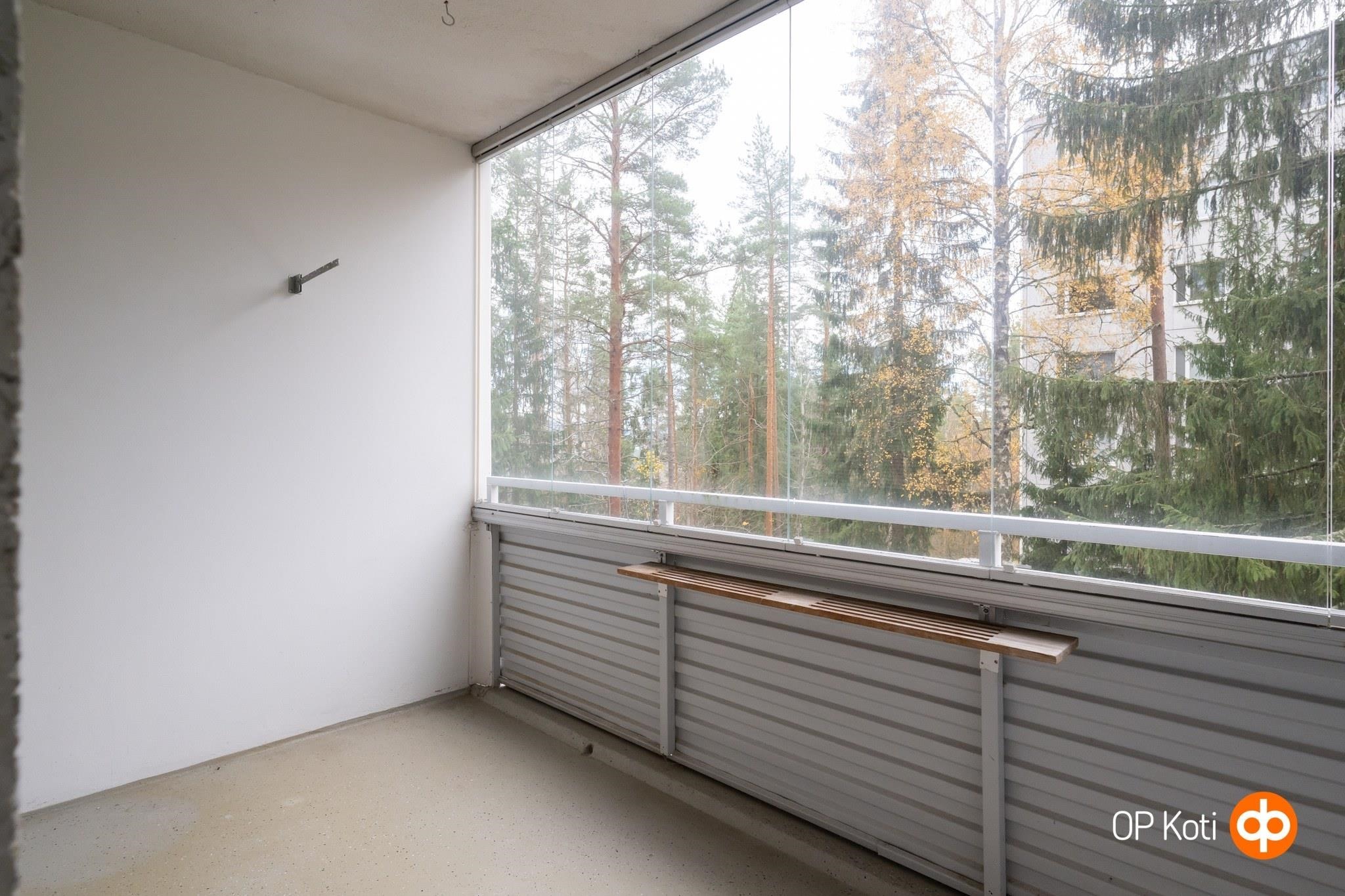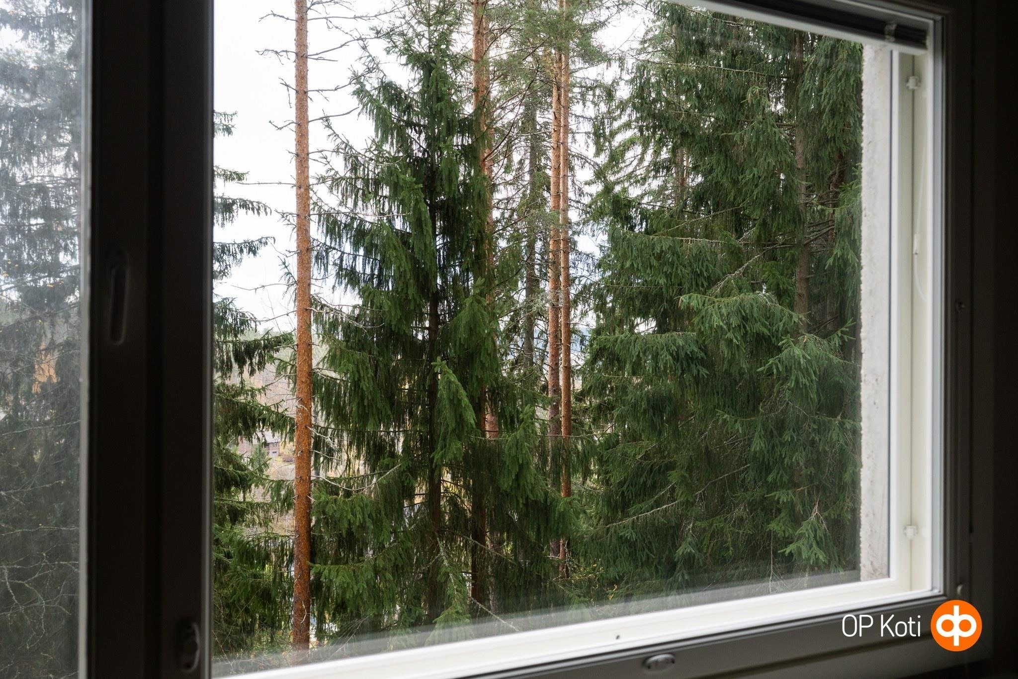 Rauhalliset, metsäiset ja vuodenaikojen mukaan muuttuvat kauaskantoiset näkymät ovat tämän kodin valtti. Yleisilmeeltään huoneisto on siistikuntoinen, lattiat pääosin laminoitu, ehjät seinäpinnat ovat osin maalattuja ja osin tapetoituja. Vaalea keittiö liittyy osaksi olohuonetta. Kodin kylpyhuone on uusittu reilut 10 vuotta sitten.