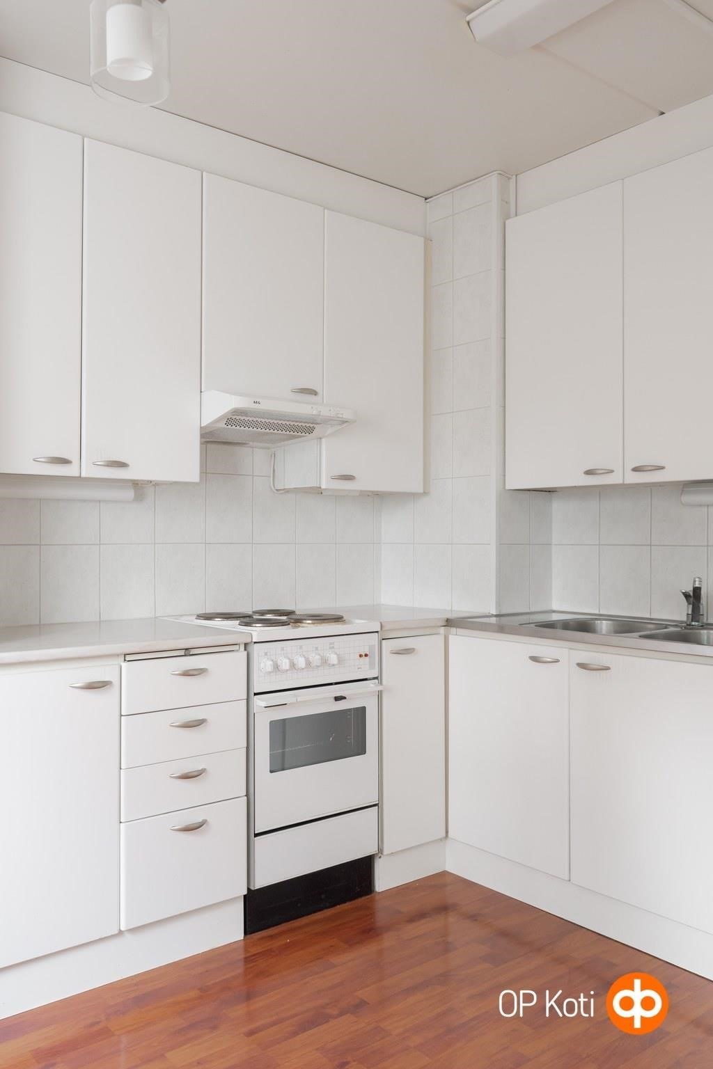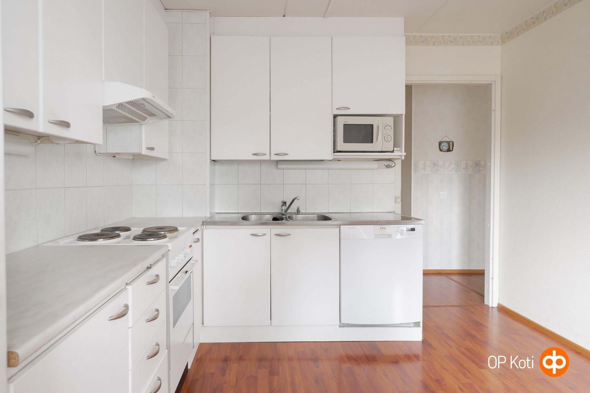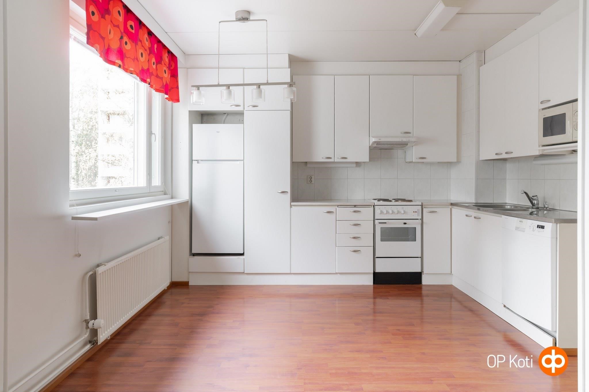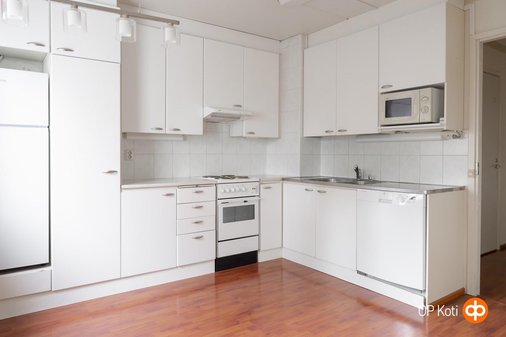 - Jääkaappi, sähköliesi, liesituuletin, kaapistot, kiinteät valaisimet.