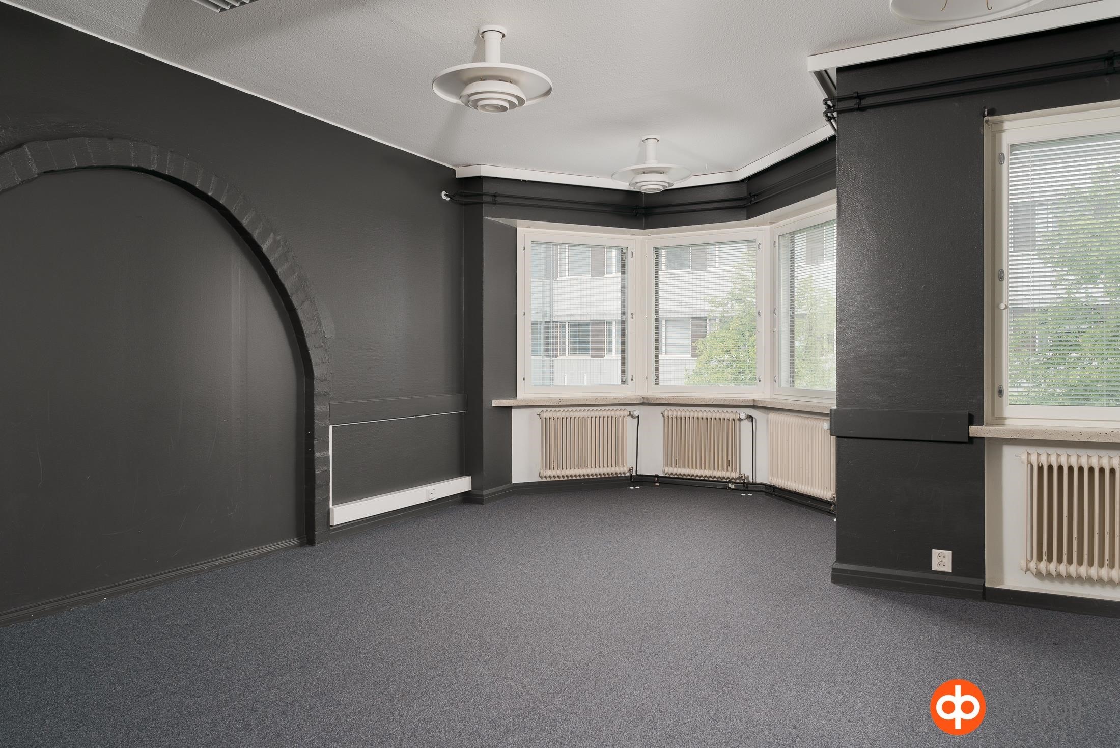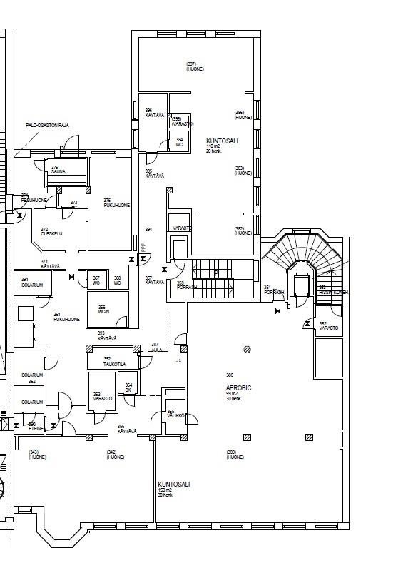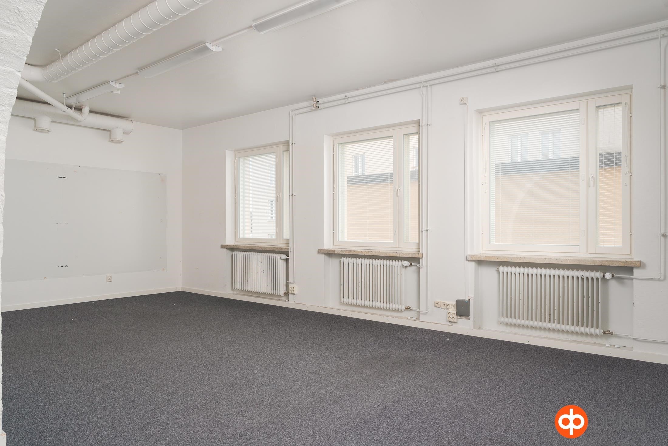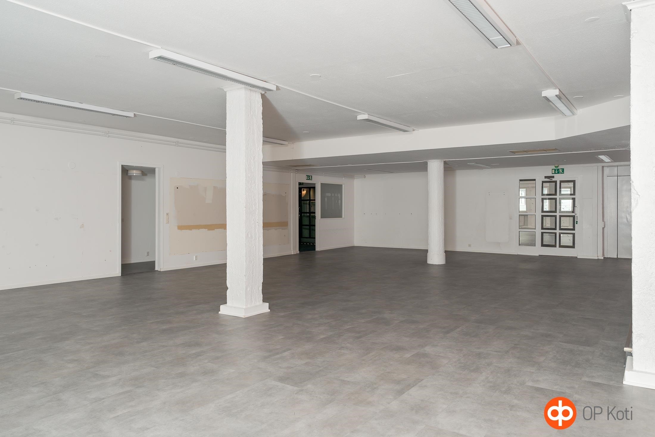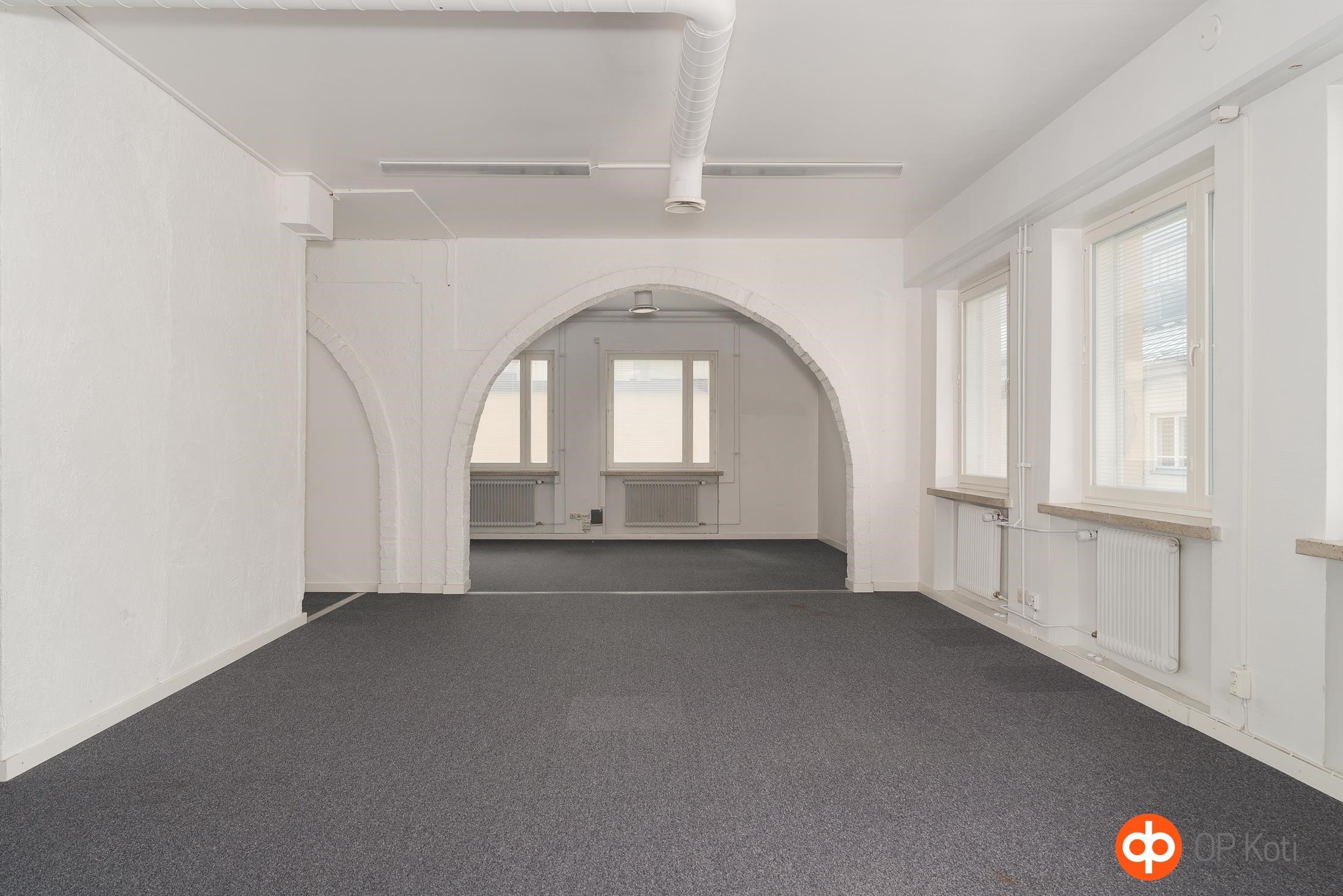 Ydinkeskustassa hissitalossa 3.kerroksen 508 m2 tila, jossa aiemmin toiminut kuntosali. Tilava yhtenäinen sali, josta näkymät kävelykadulle, lisäksi pohjakuvan mukaisesti erillisiä huoneita läpi talon, sekä sauna ja sos.tilat. Tilassa ilmanvaihto viilennyksellä. Käynti Väinönkadun puolelta. Sopii hyvin liikuntatilaksi, toimistoksi, miten vain. Heti vapaa. Vuokrattavissa myös samasta rapusta 4. krs toimisto 54 m2. Sovi esittely! Vuokraan lisätään alv, vesi ja sähkö.