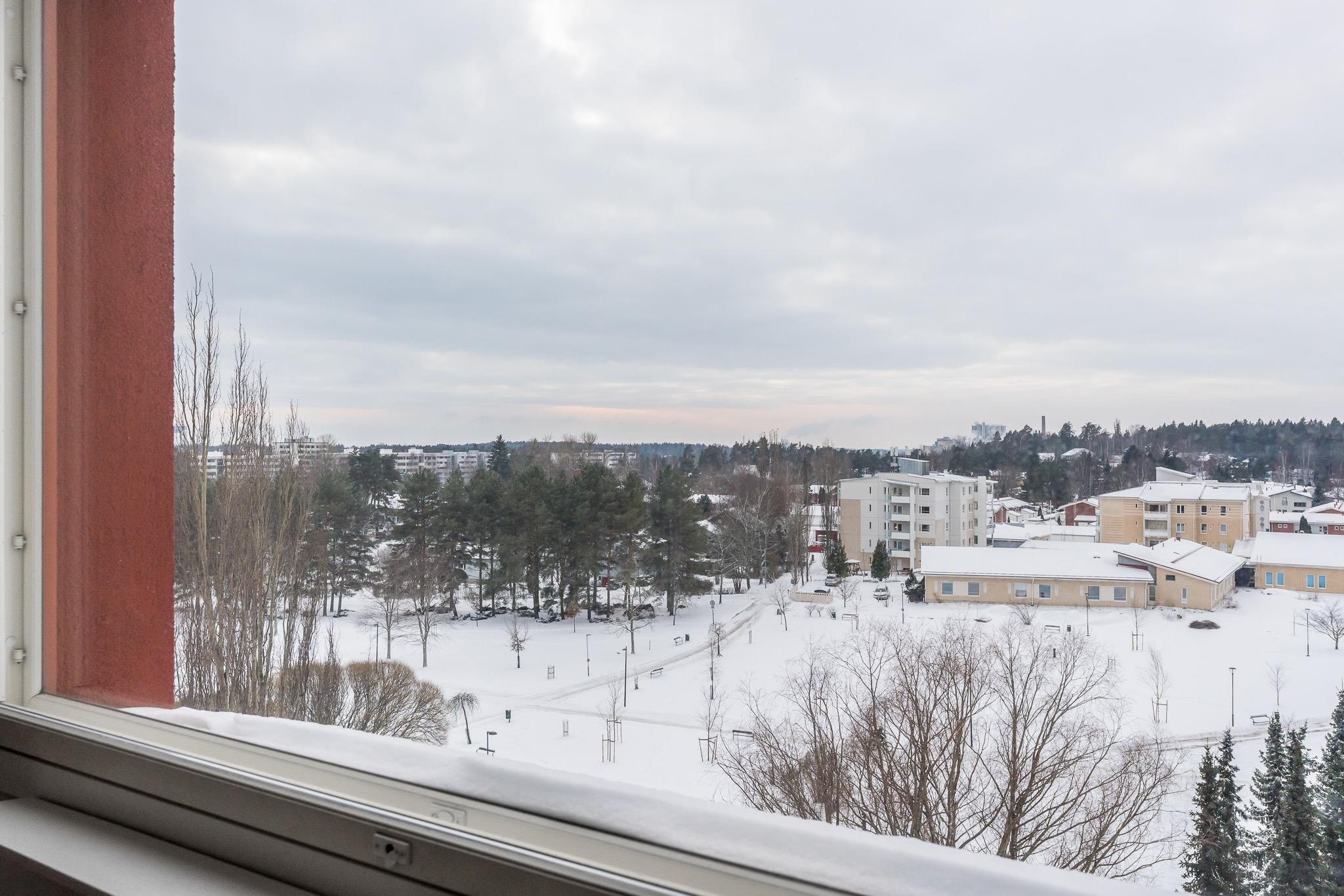 Asunnon korkea sijainti takaa rauhallisen ympäristön ja lasitetulta parvekkeelta avautuvat maisemat ovat henkeäsalpaavat - näet kauas yli kaupungin kattojen.