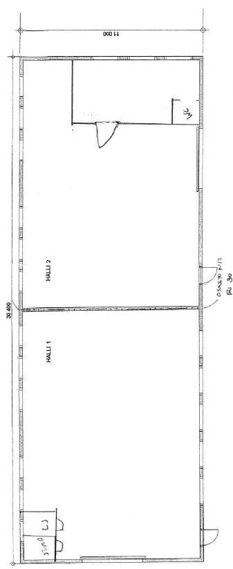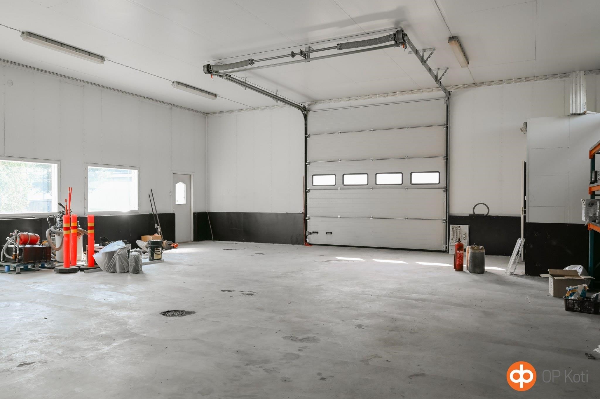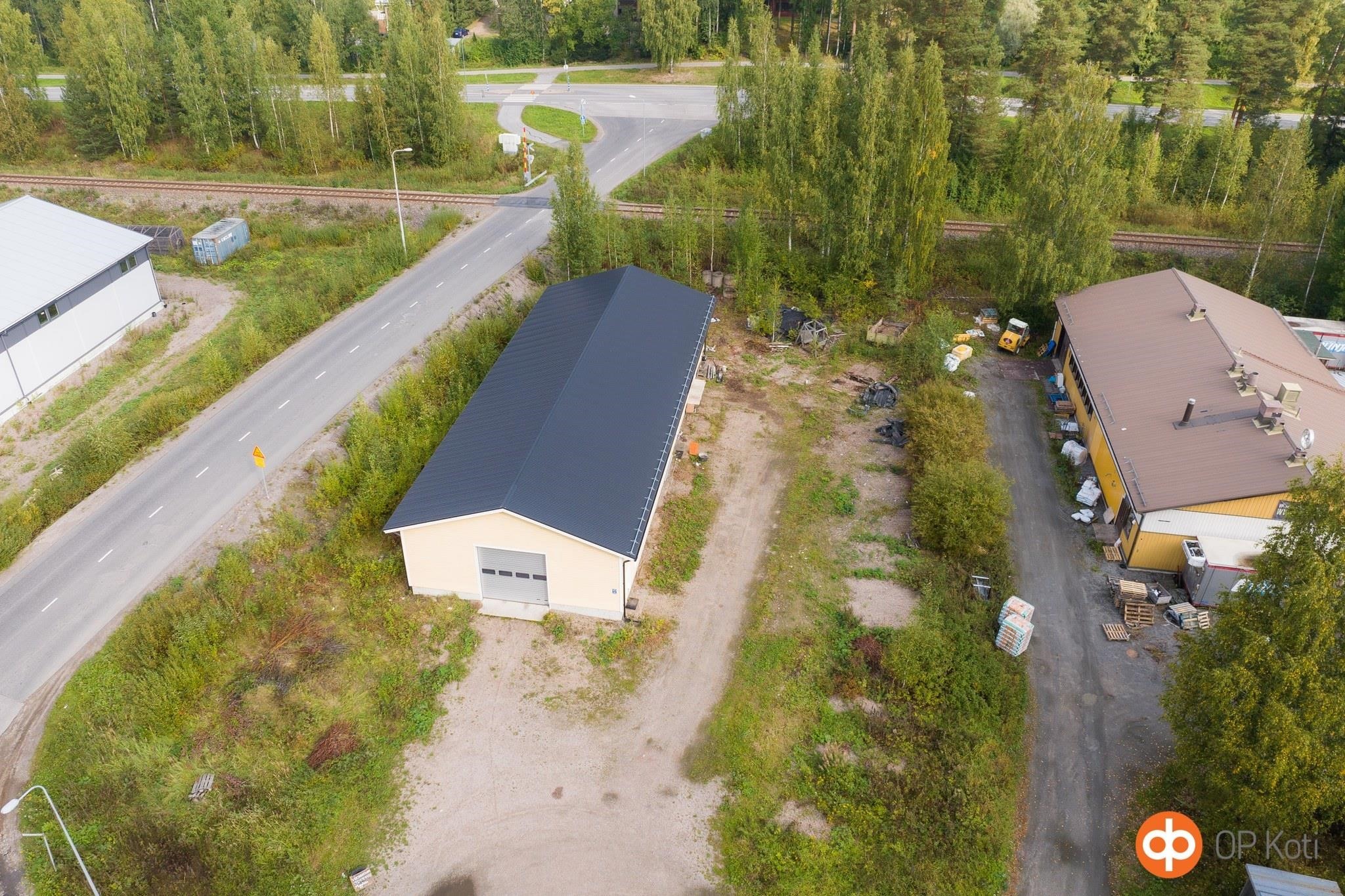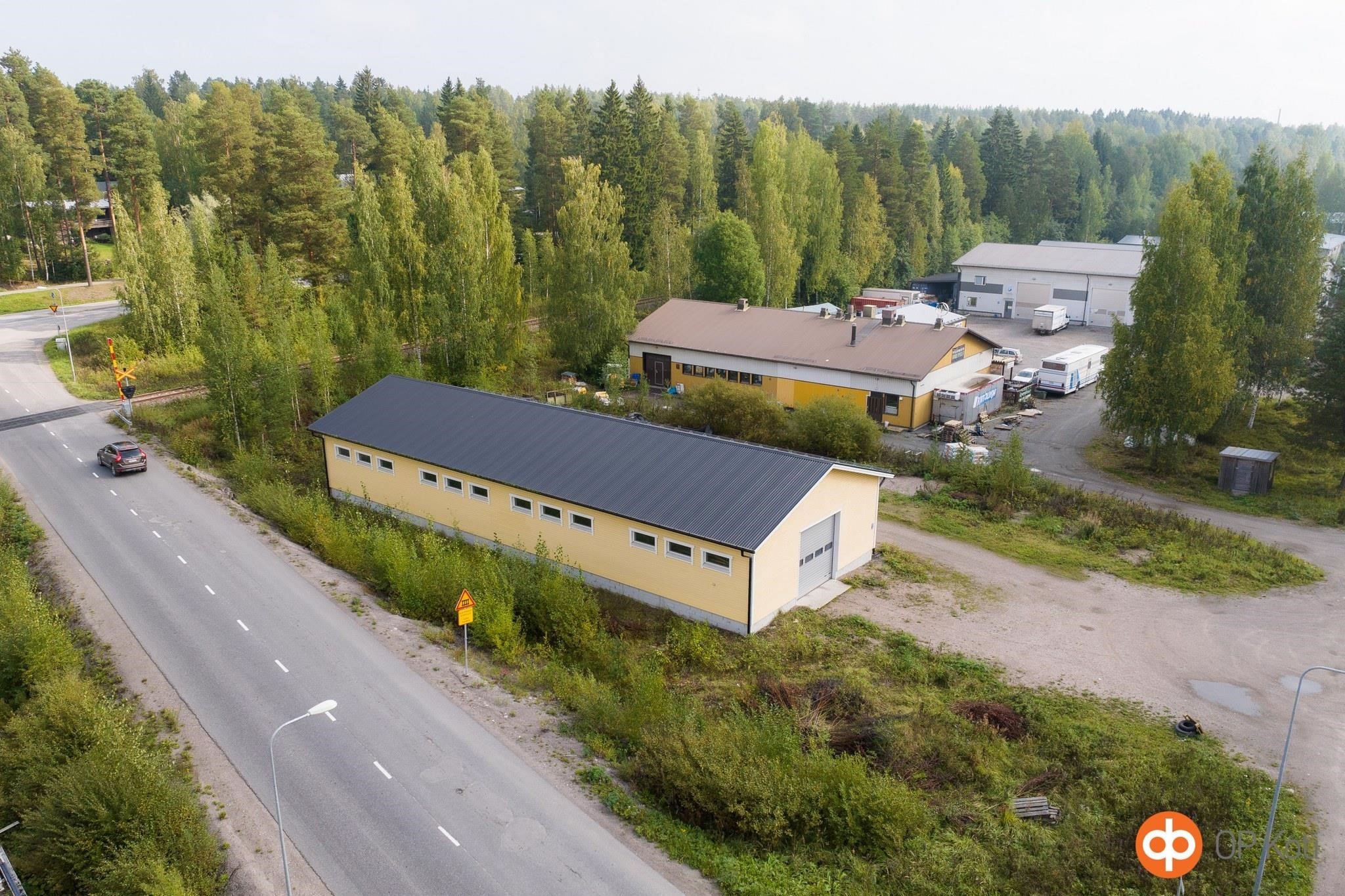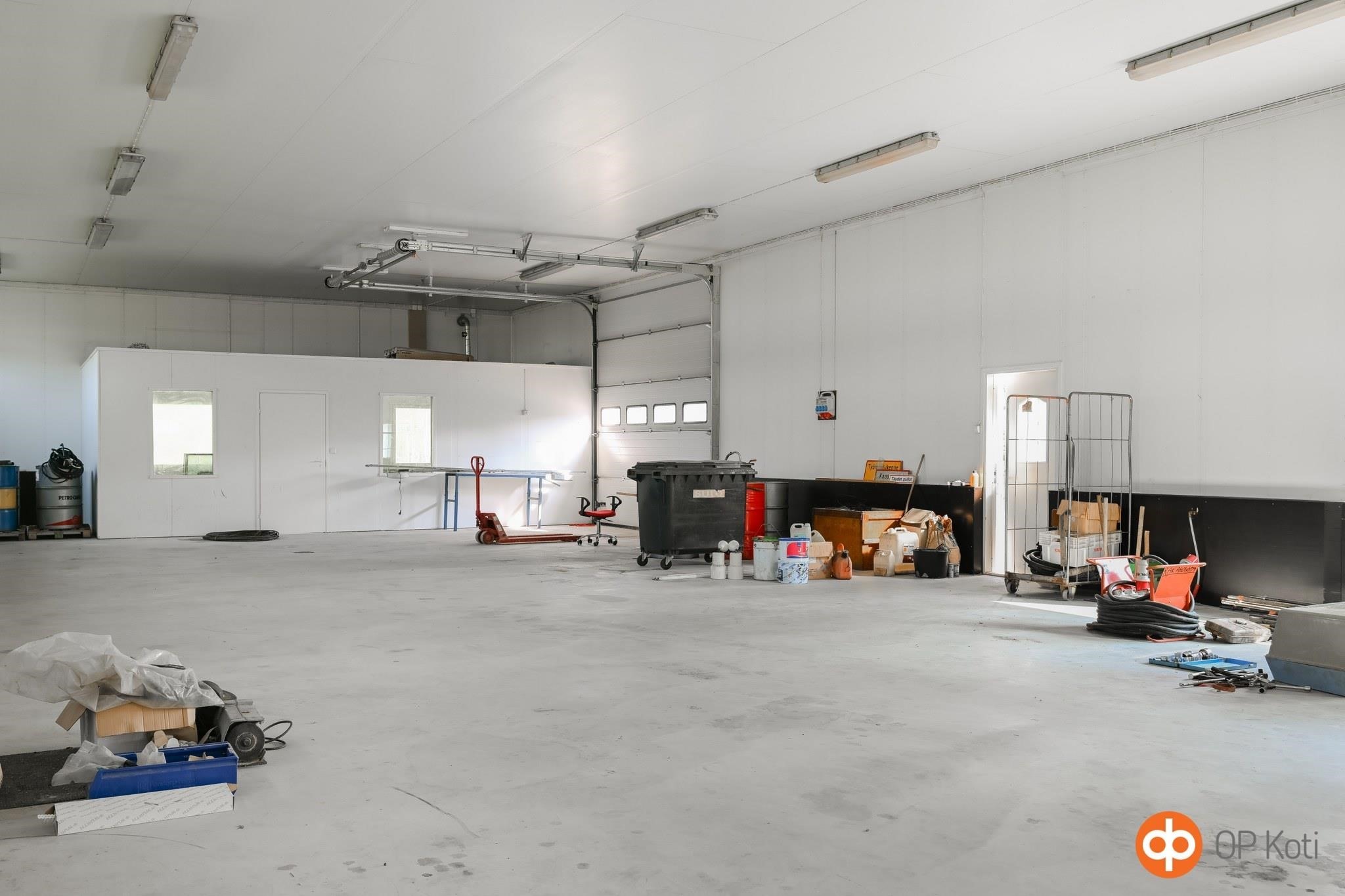 yhtenäinen hallitila, toimisto, wcKulmatontilla Teollisuuskadulla v. 2012 rakennettu puu/betoni runkoinen teollisuushalli. Yhtenäistä hallitilaa, nosto-ovet päädyssä ja sivussa, joten mahdollista tarvittaessa jakaa. Rakennuksen takapäädyssä toimistotila ja wc. Edullinen maalämpö lattialämmityksenä. Oma tontti 1679 m2. Vuokrattu.