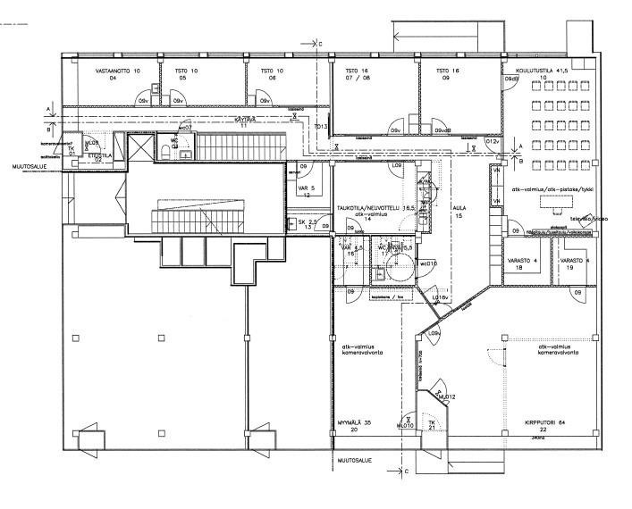 - liiketila (3 erillistä) ja kellarivarasto/sos.tila