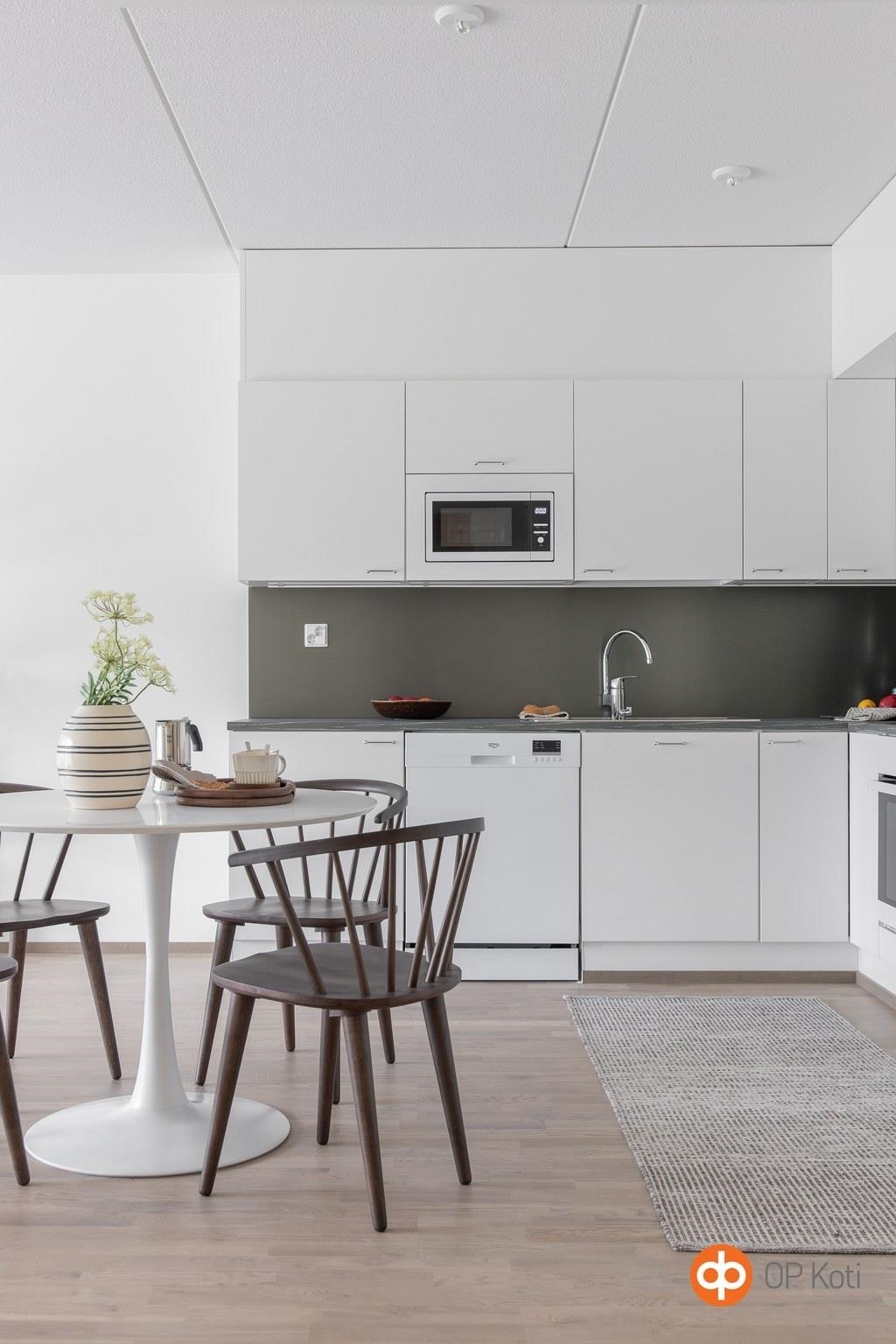 - Jääkaappi, pakastekaappi, erillisuuni, astianpesukone, Keraaminen keittotaso.