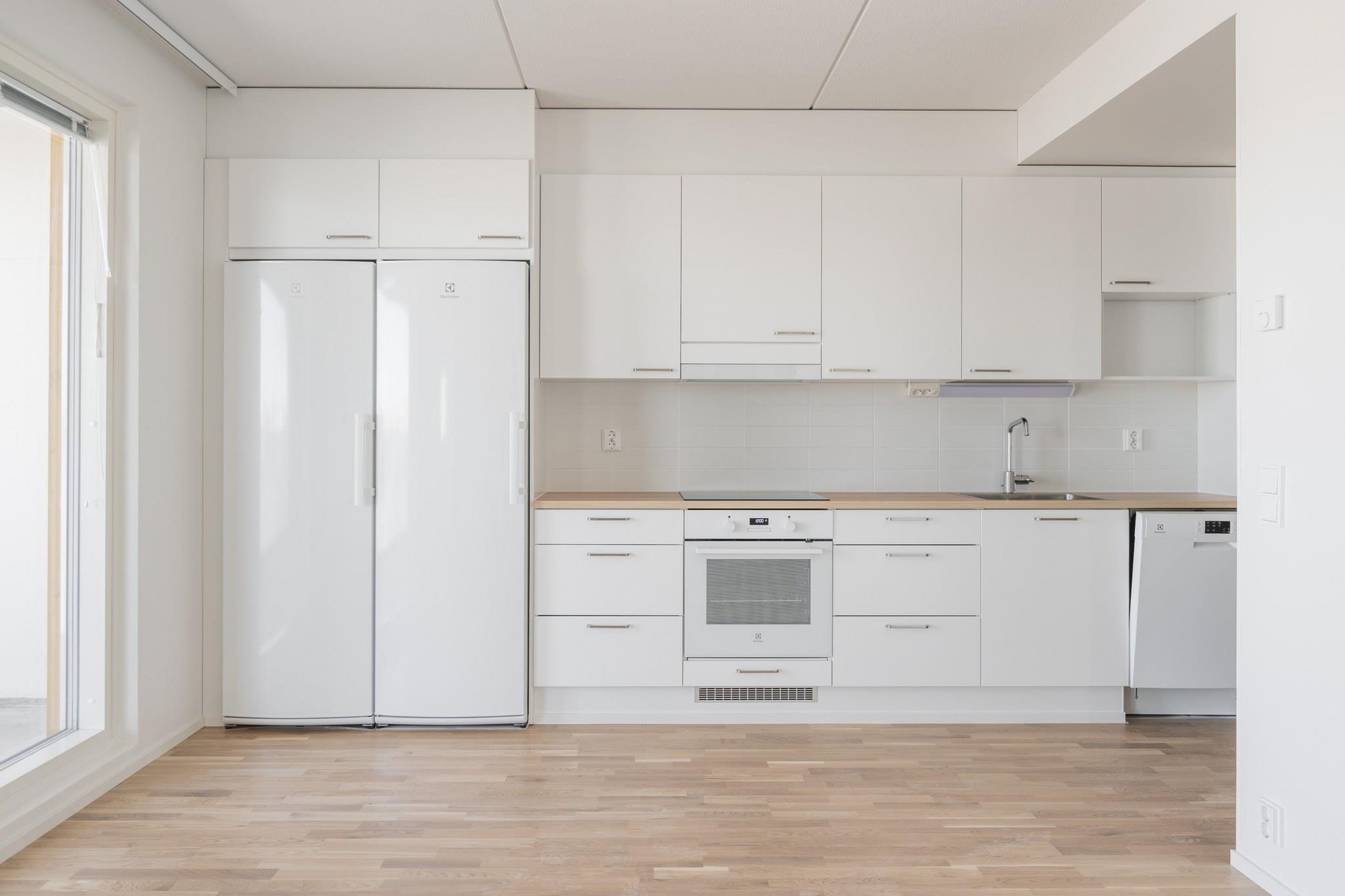 - Jääkaappipakastin, erillisuuni, induktioliesi, astianpesukone.