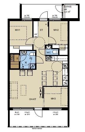 - Kylmä varasto 3 m² asunnon edessä