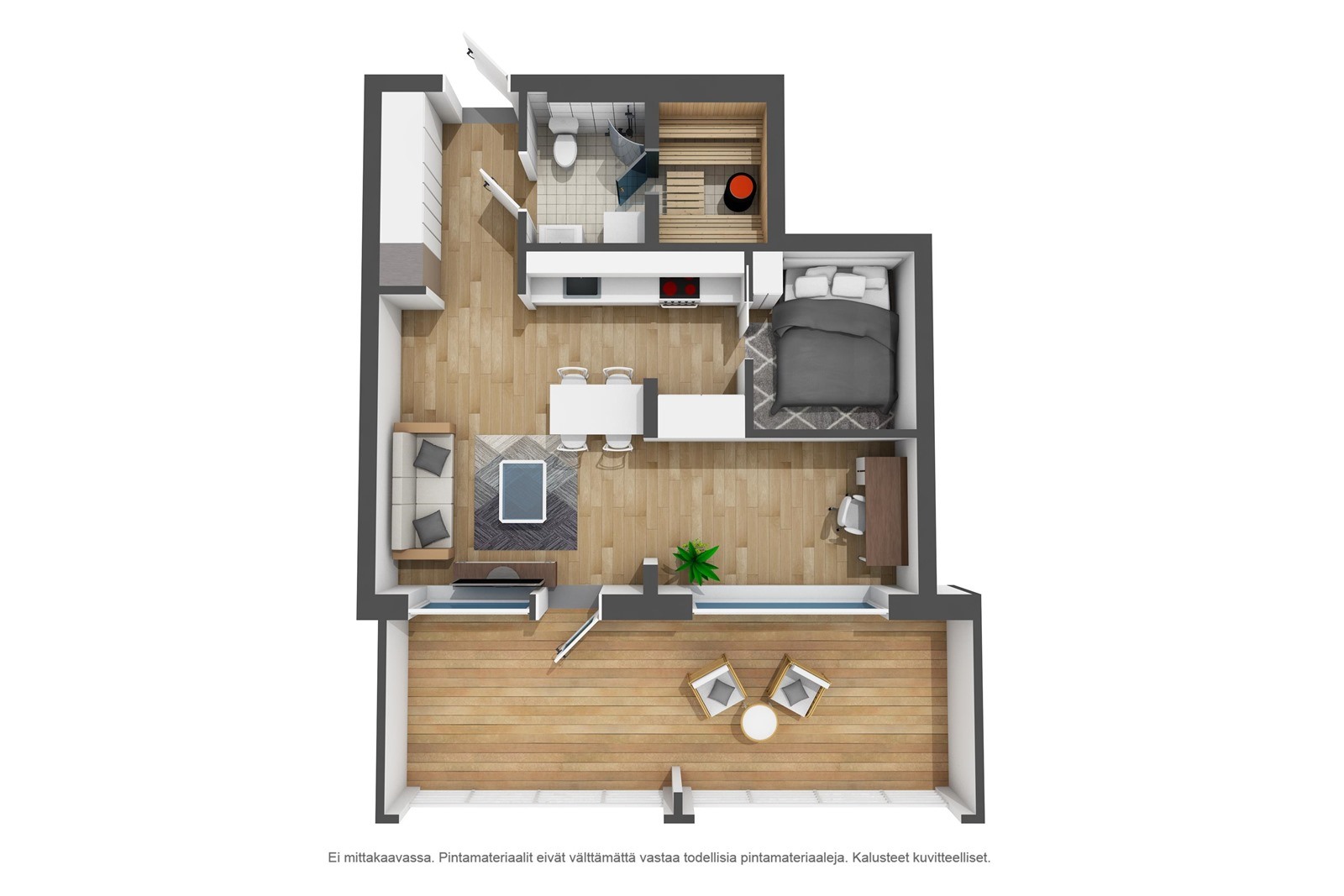 Valokuvat ovat esimerkkihuoneistoista ja materiaalit voivat vaihdella samankokoisissa asunoissa.