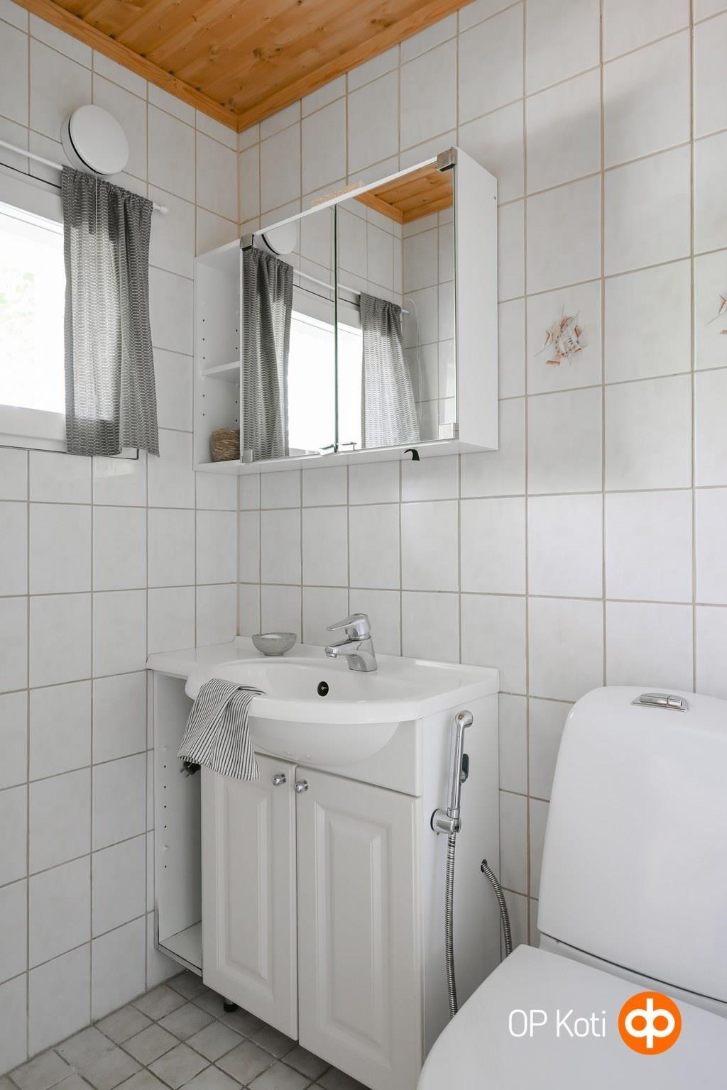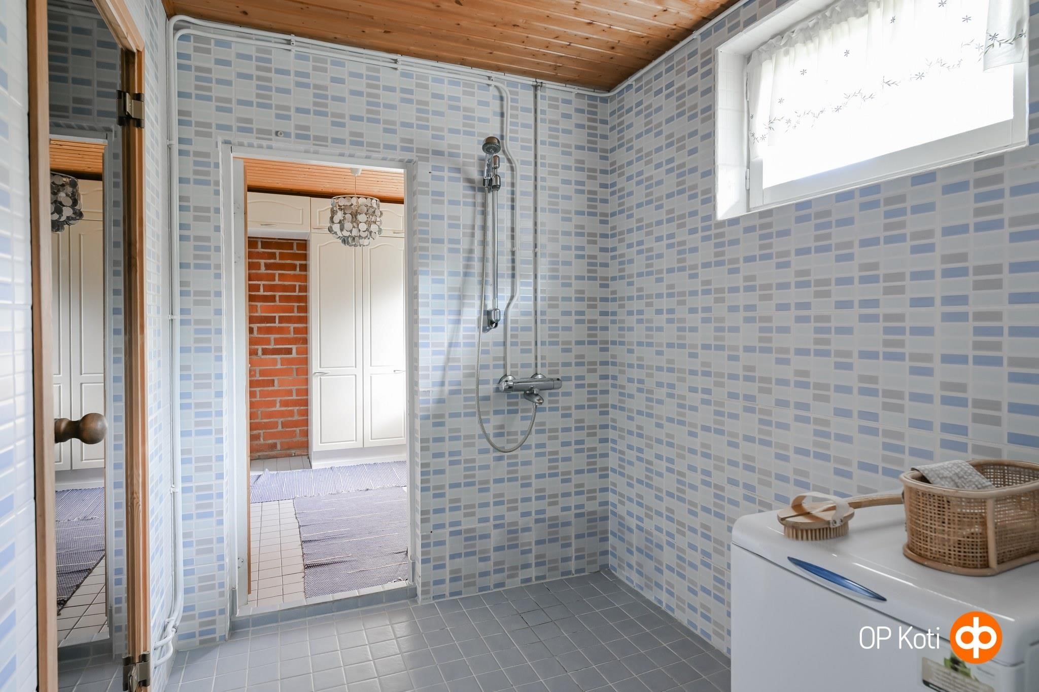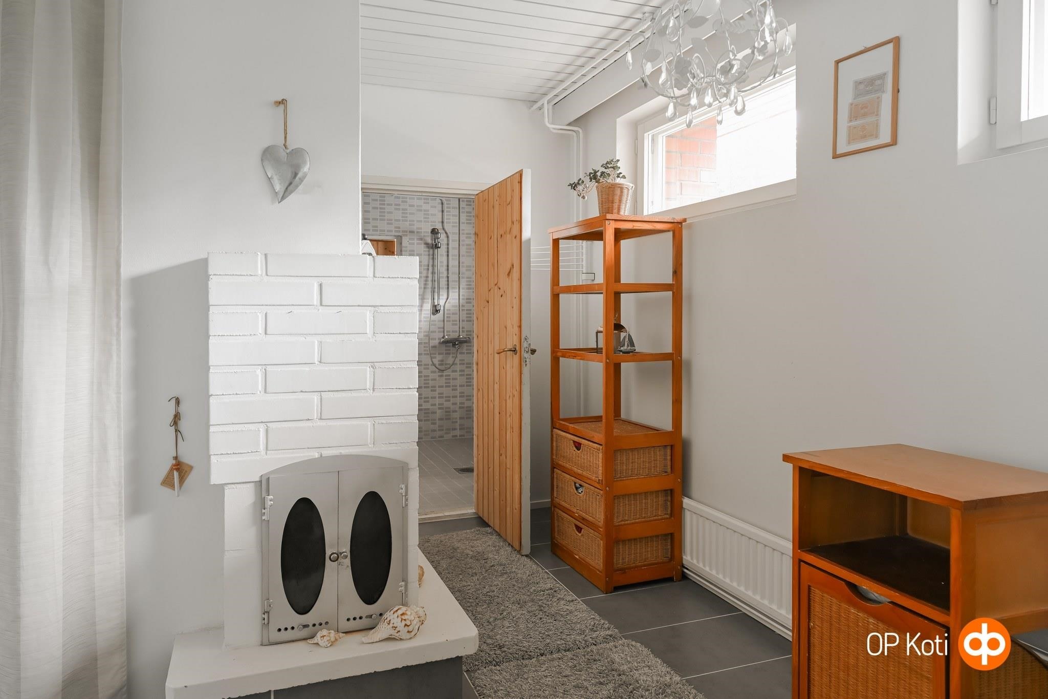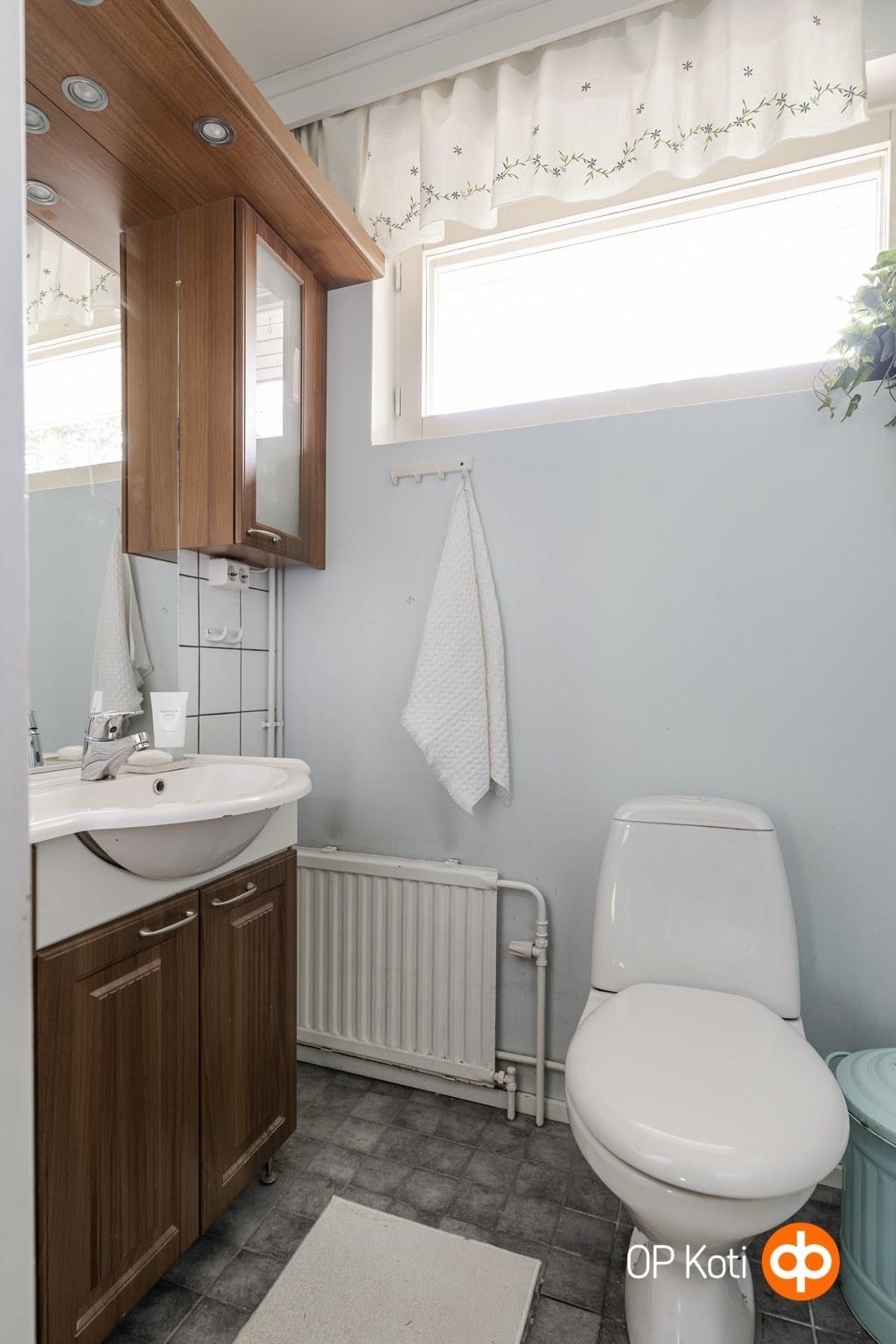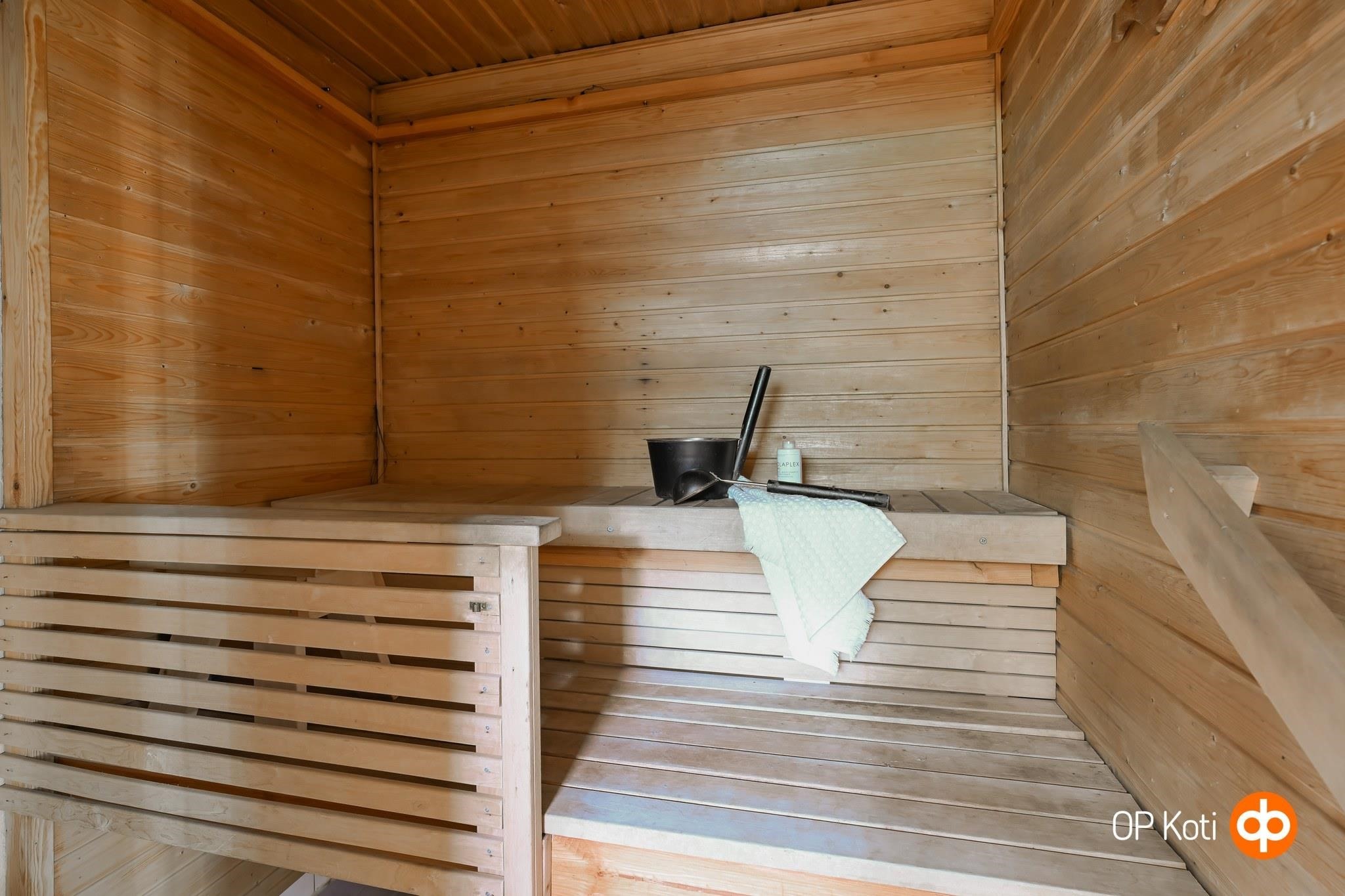 - Sauna, puukiuas, kylpyhuone, erillinen wc, suihku, suihkuseinä, peilikaappi, kaapit, allaskaappi, pesukoneliitäntä, lattialämmitys Kylpyhuoneessa ja saunassa, kiinteät valaisimet.