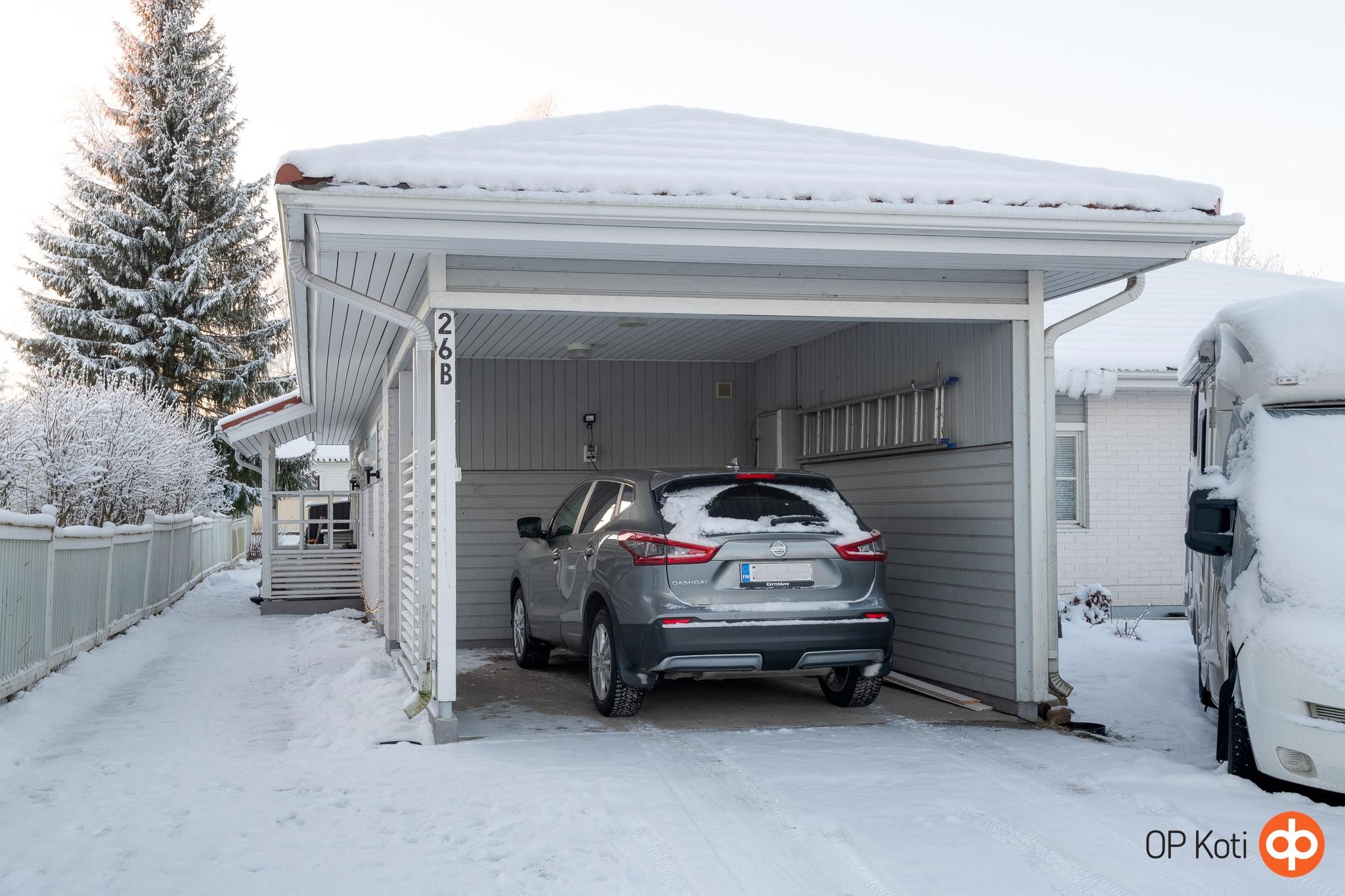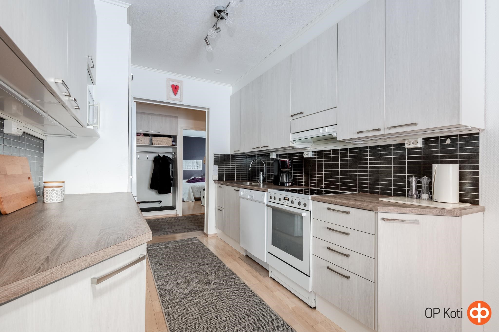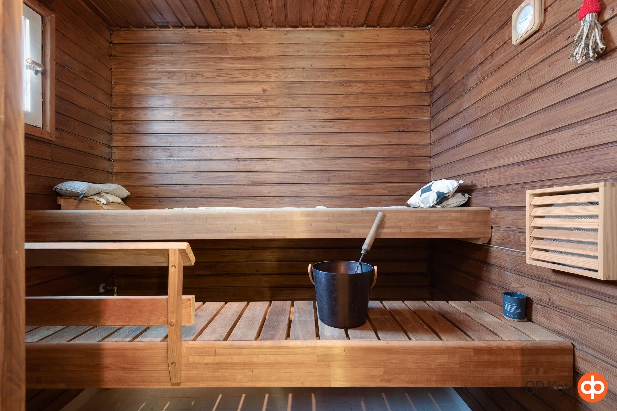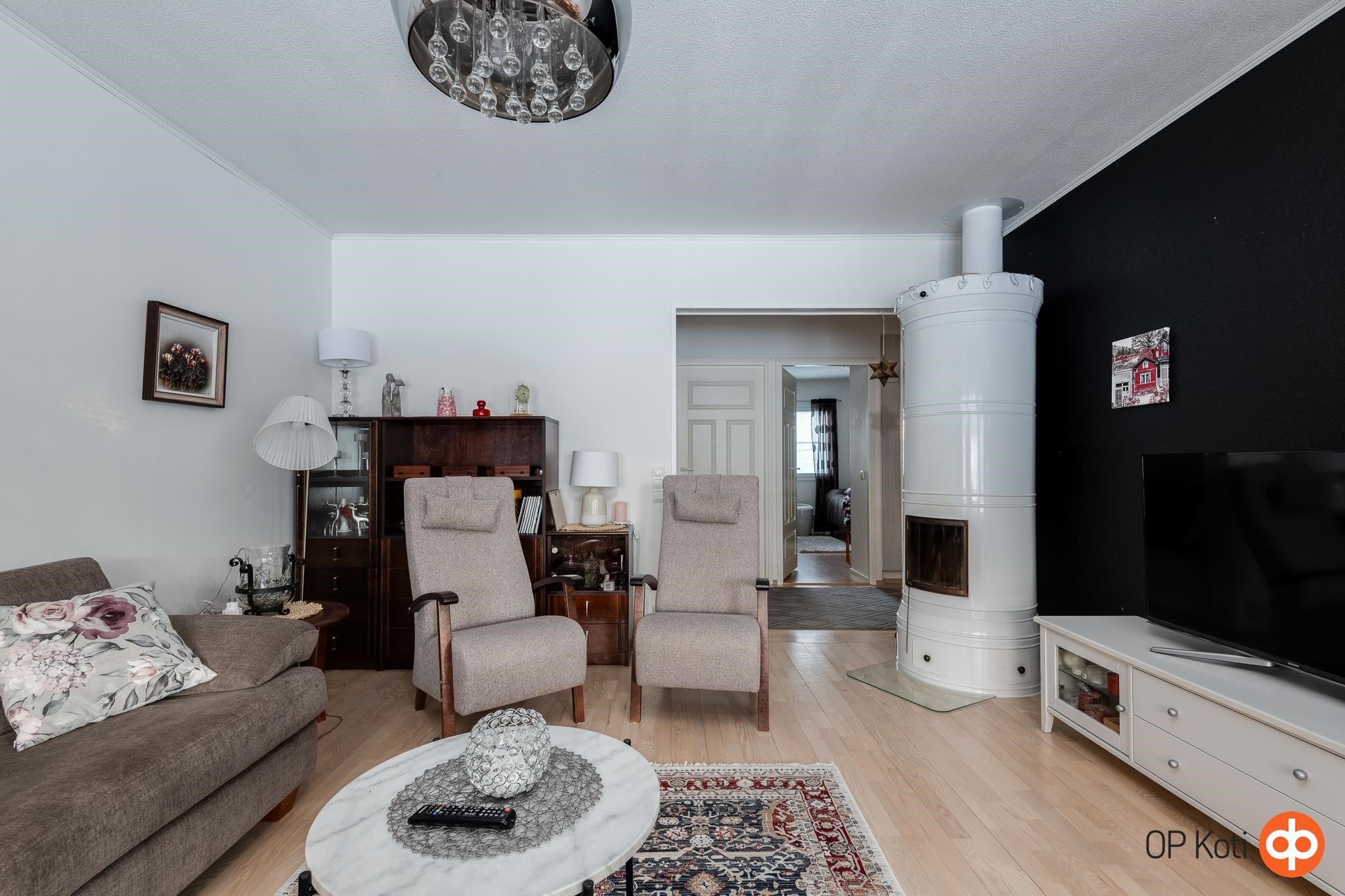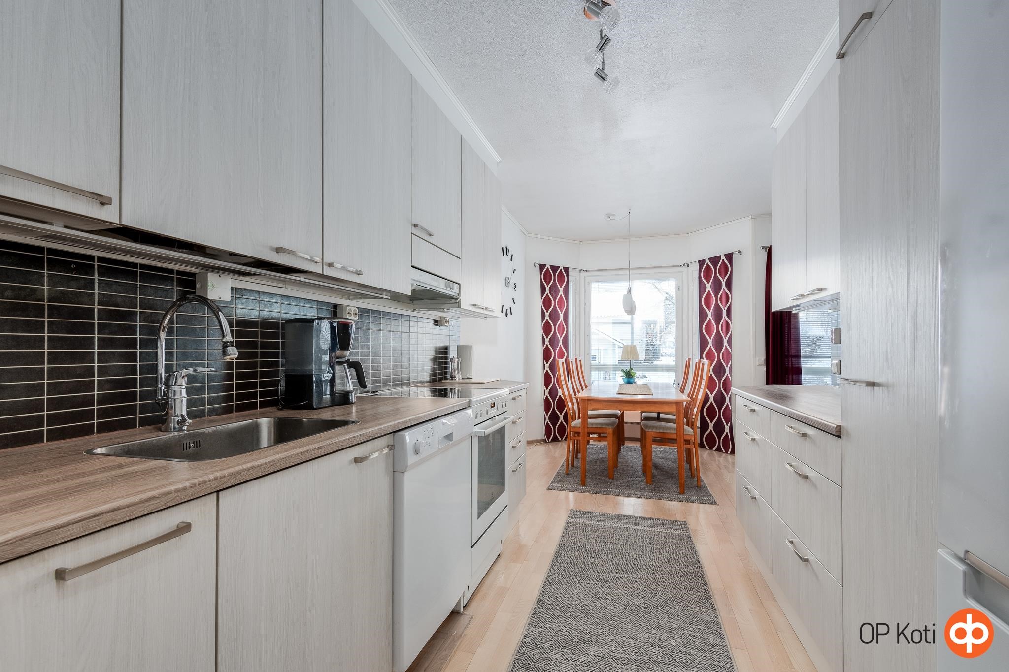 Asunnossa on neljä huonetta, tilava keittiö sekä oma sauna, joka on remontoitu viime vuosina. Kodin pohjaratkaisu on käytännöllinen: keittiö on uusittu 2016 ja varustettu modernilla kalustuksella sekä astianpesukoneella. Olohuoneessa on tilaa suuremmallekin ruokapöydälle ja sohvaryhmälle. Makuuhuoneet ovat rauhallisia, ja säilytystilaa löytyy vaatehuoneesta sekä ulkovarastosta. Kylpyhuone ja erillinen wc on remontoitu nykyaikaisiksi, ja asunnossa on lisäksi ilmalämpöpumppu. Auton säilytys on helppoa oman autokatoksen ansiosta.