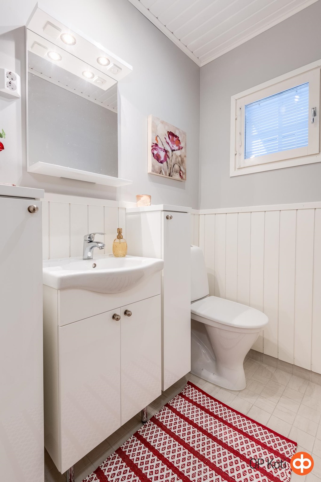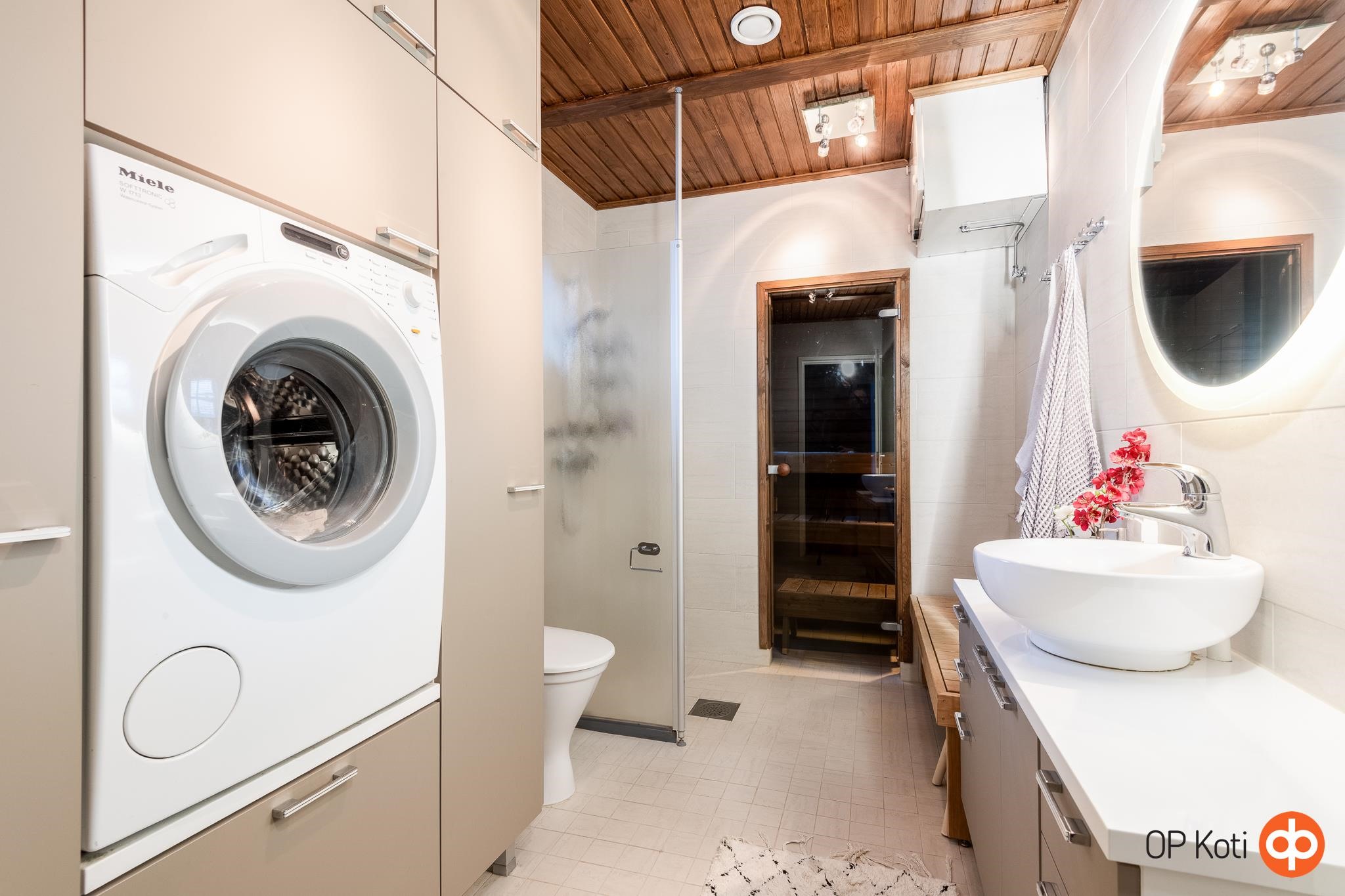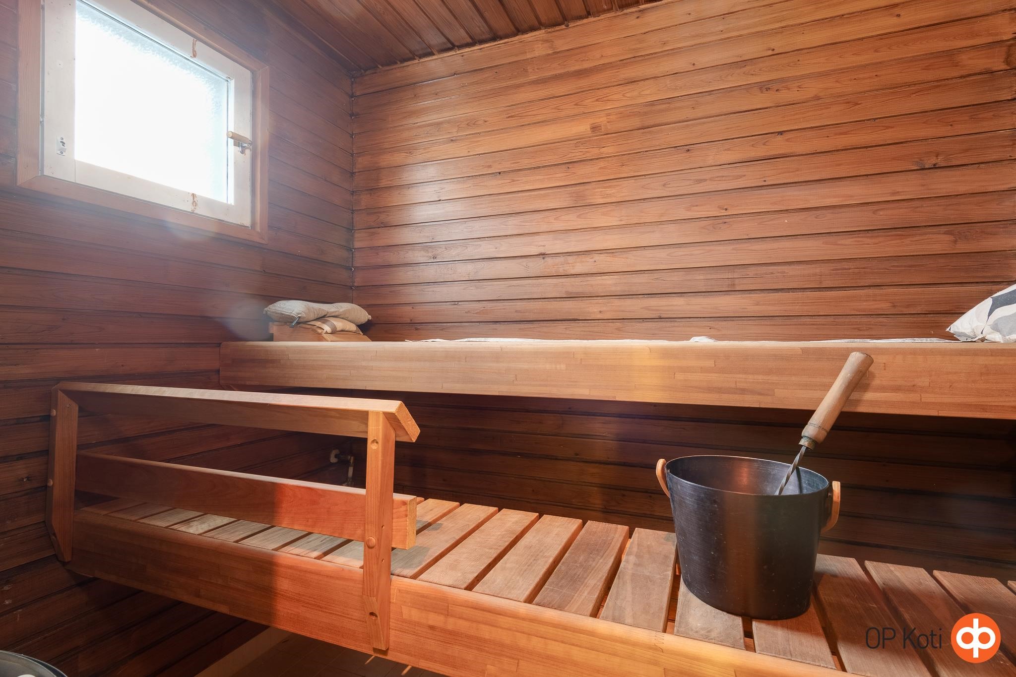 - Sauna, sähkökiuas, erillinen wc, suihku, suihkuseinä, peilit, allaskaappi, pesukoneliitäntä, lattialämmitys, kiinteät valaisimet. Pesutilat ja sauna remontoitu 2017, wc remontoitu 2017.