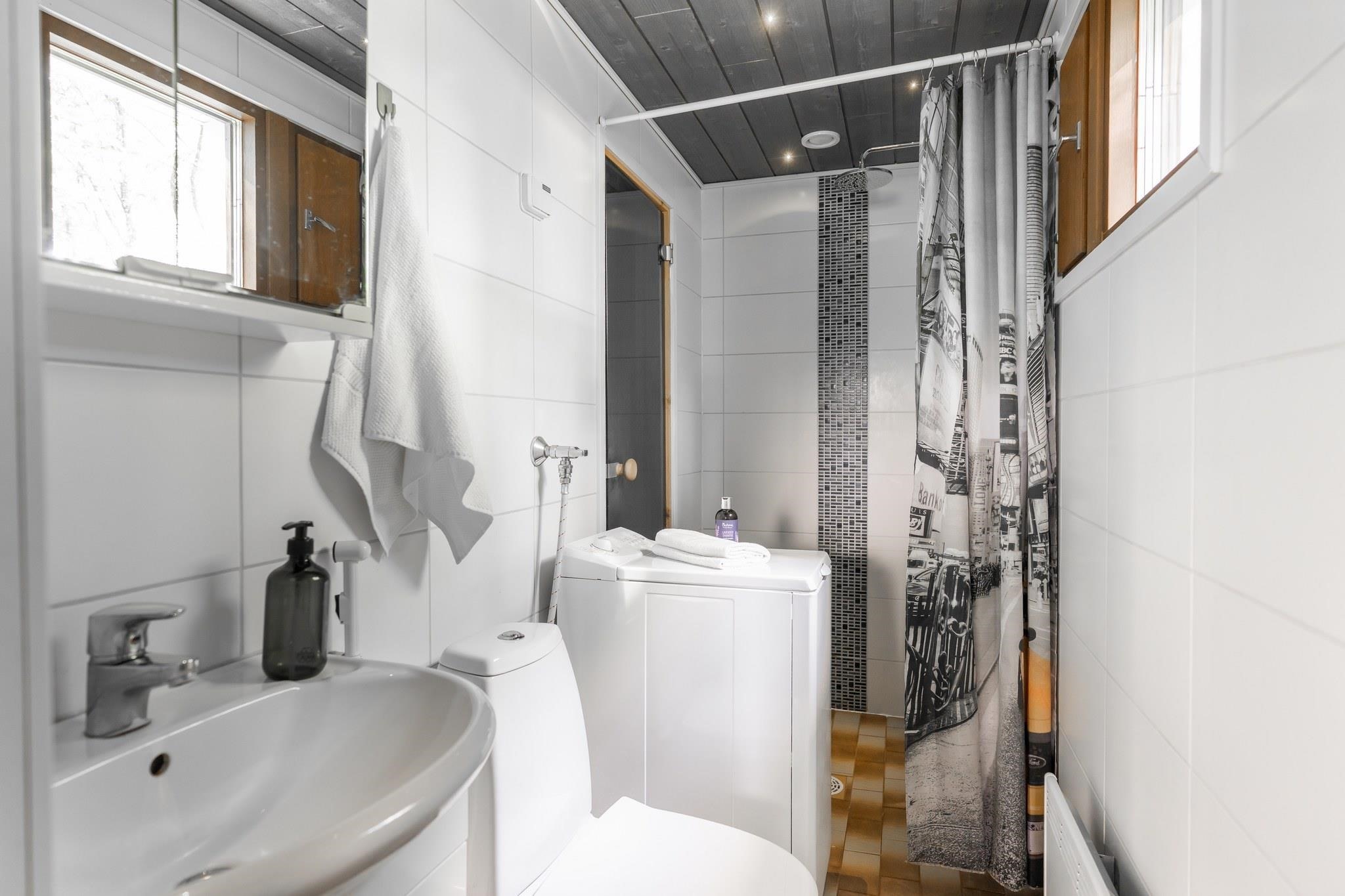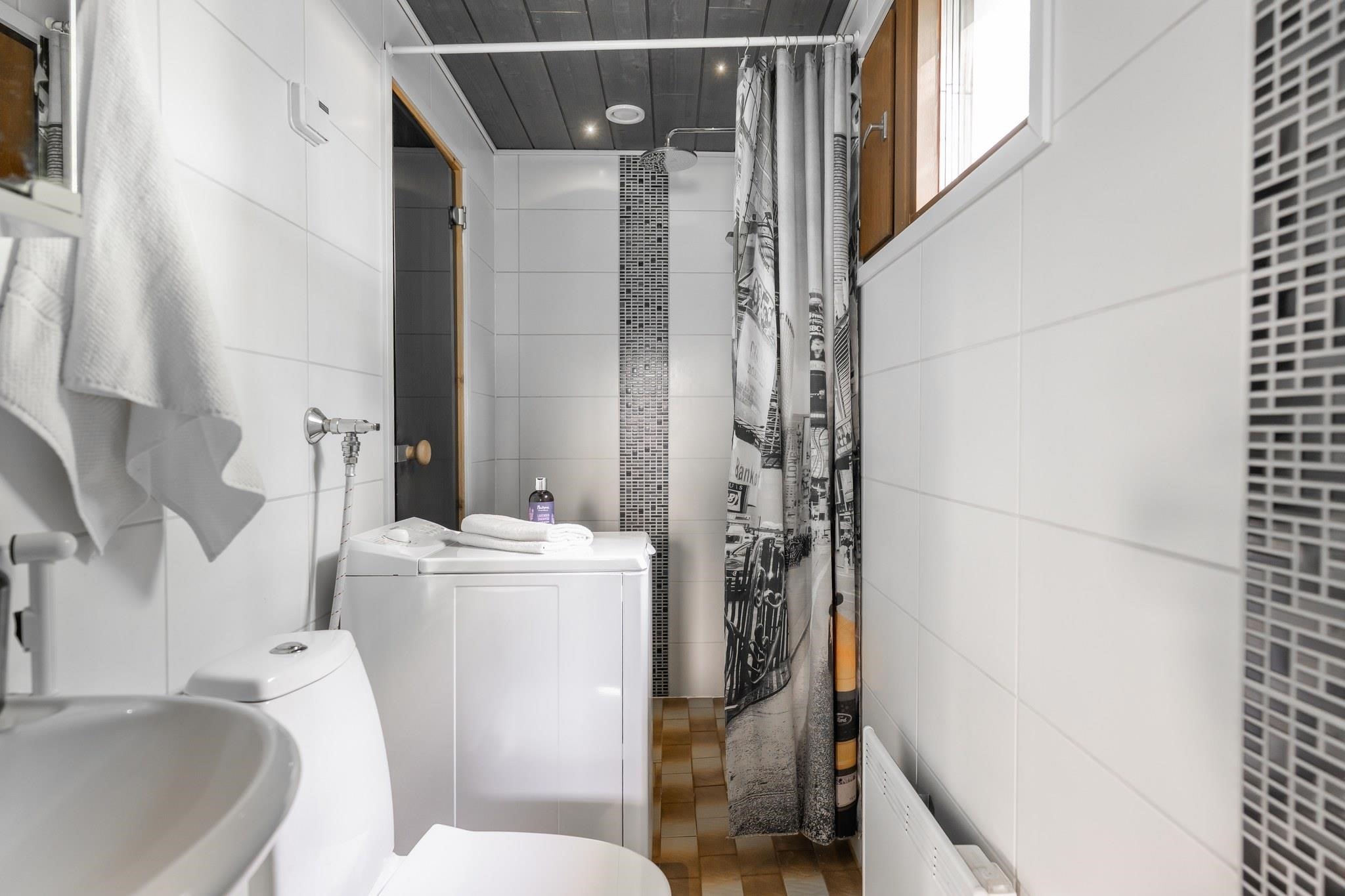 - Sauna, sähkökiuas, kylpyhuone, suihku, peilikaappi, pesukoneliitäntä, lattialämmitys, kiinteät valaisimet. Kylpyhuone remontoitu v. 2012. Vuonna 2016 vaihdettu kiuas ja lauteet sekä uudet panelit seiniin.