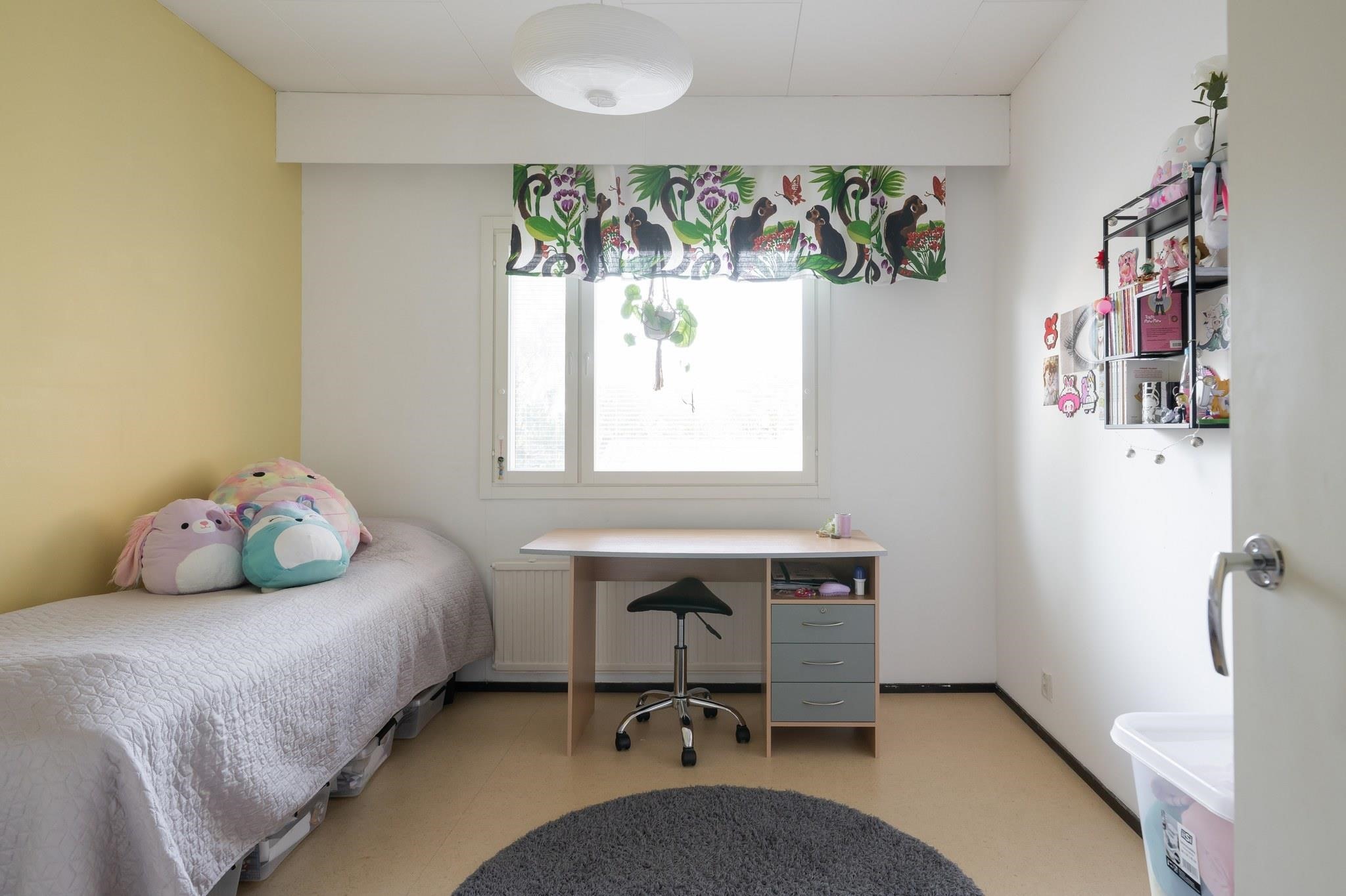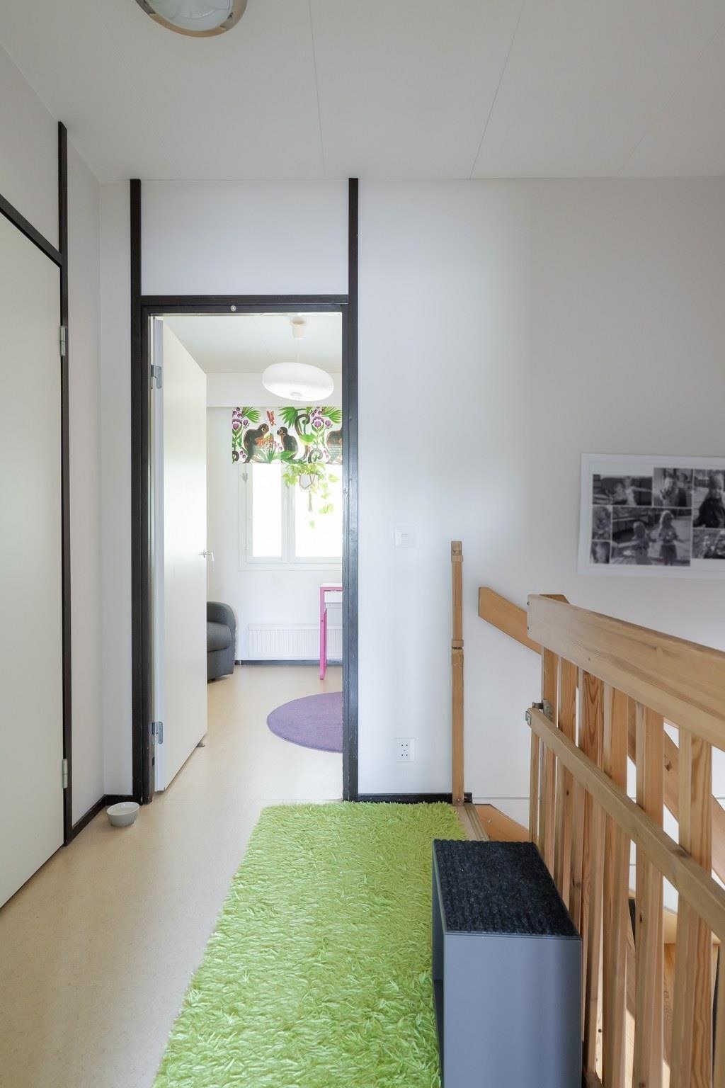 Keittiö: lattia parkettia, seinät maali / paneli, välitilalaatta. Olohuone: lattia parkettia, seinät maali. Makuuhuone 1: lattia muovimattoa, seinät maali. Makuuhuone 2: lattia muovimattoa, seinät maali. Sauna: lattia laattaa, seinät panelia. Kylpyhuone: lattia ja seinät laattaa. Eteinen: lattia parkettia, seinät maali. Wc: lattia ja seinät laattaa.