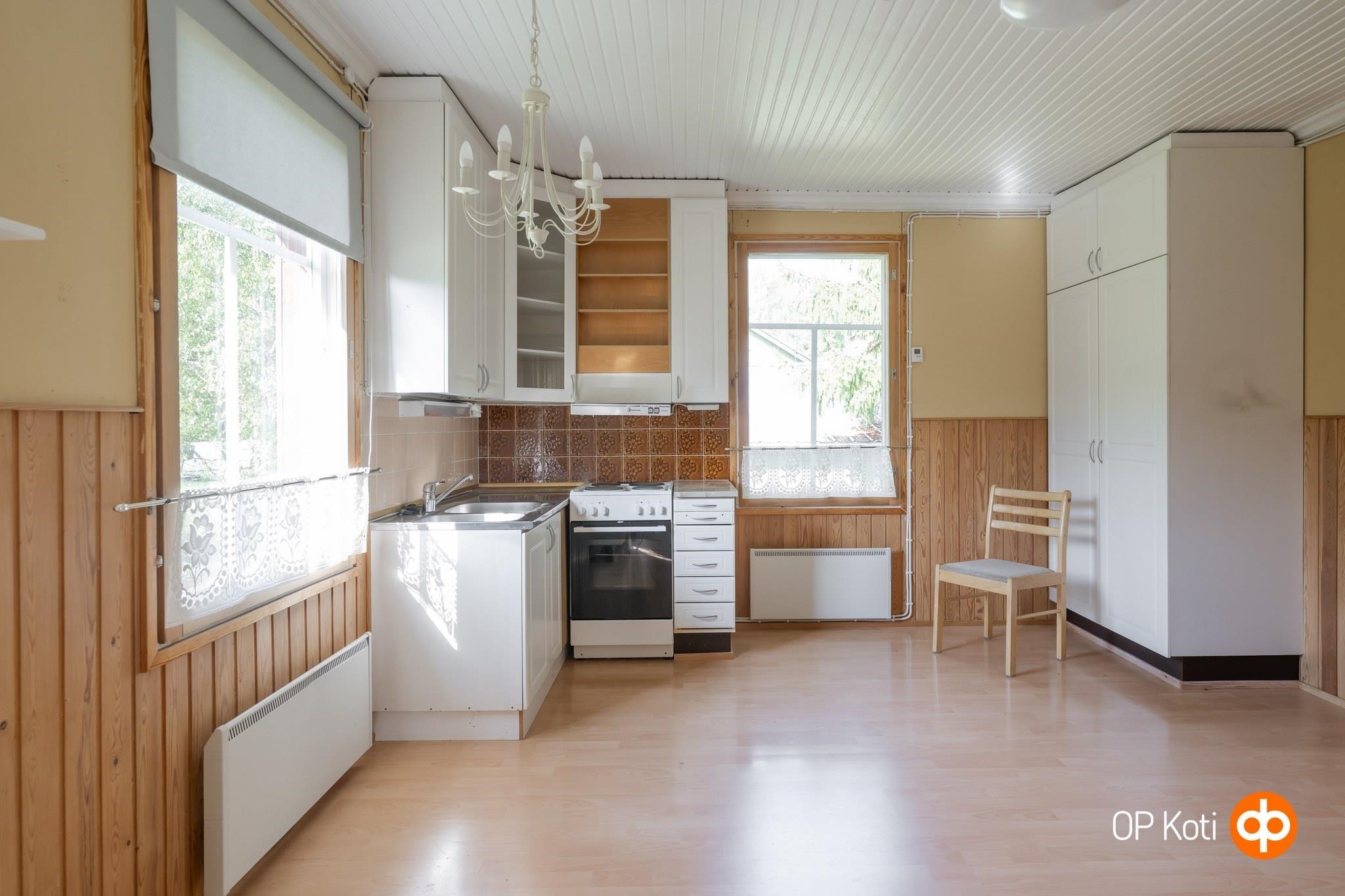 Talon sydän on sen viehättävä puuhella, joka yhdessä sähkölämmityksen kanssa luo kodikkaan tunnelman. Vaikka talo on remontoitu 1980-luvulla, se tarjoaa nyt mahdollisuuden toteuttaa omia unelmia ja tuoda uutta elämää tähän ihastuttavaan kotiin.