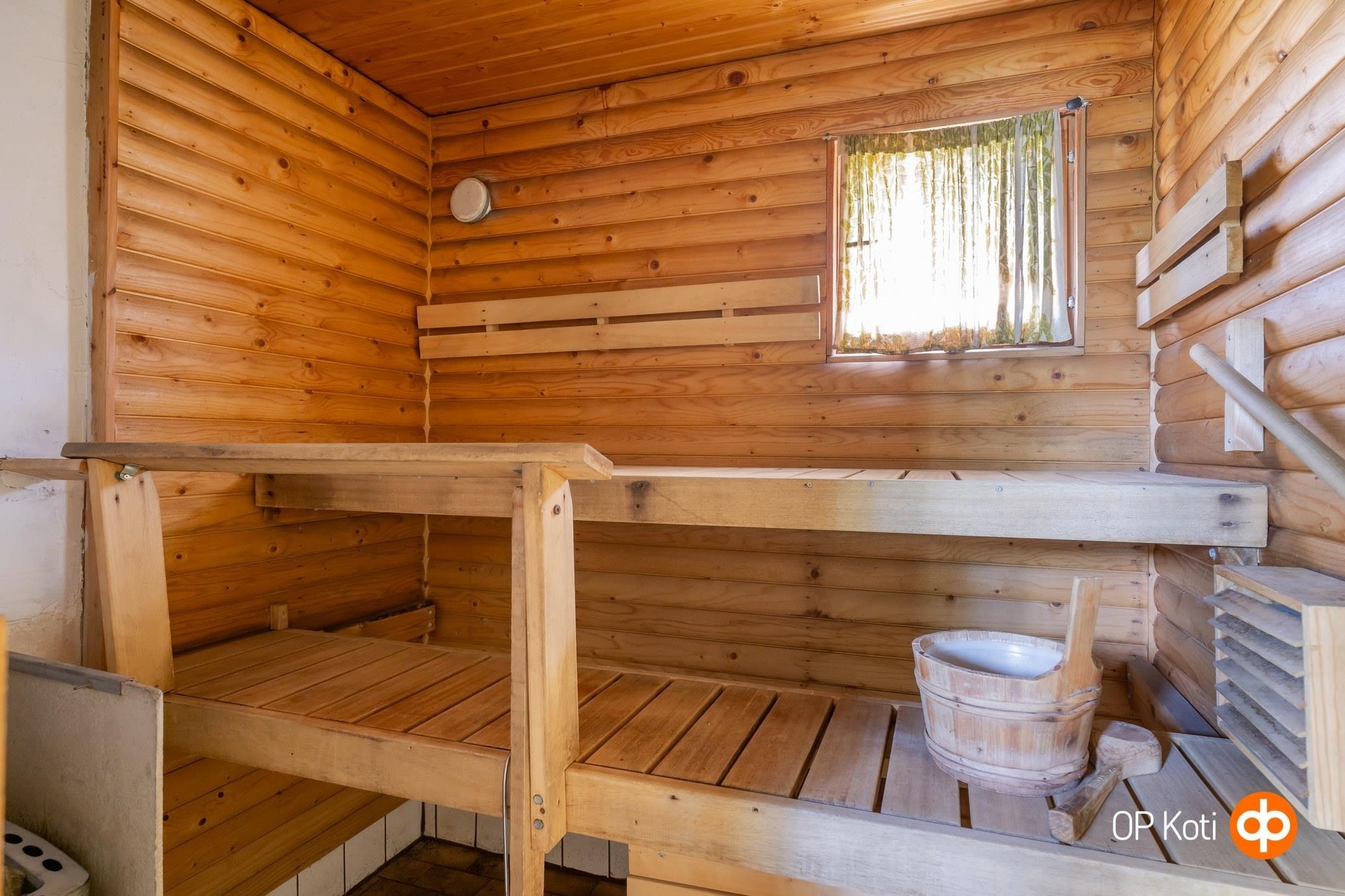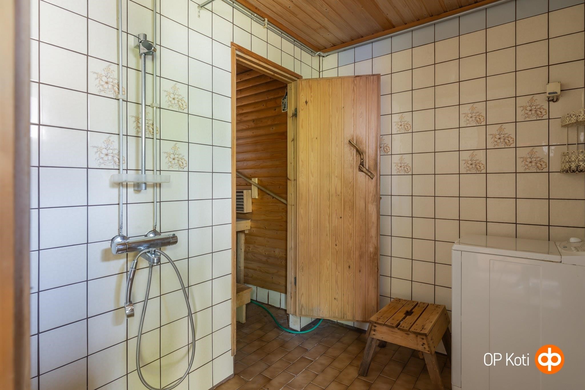 - Sauna ulkorakennuksessa, puukiuas, kylpyhuone ulkorakennuksessa, erillinen wc, pesukoneliitäntä, lattialämmitys kylpyhuoneessa, kiinteät valaisimet.