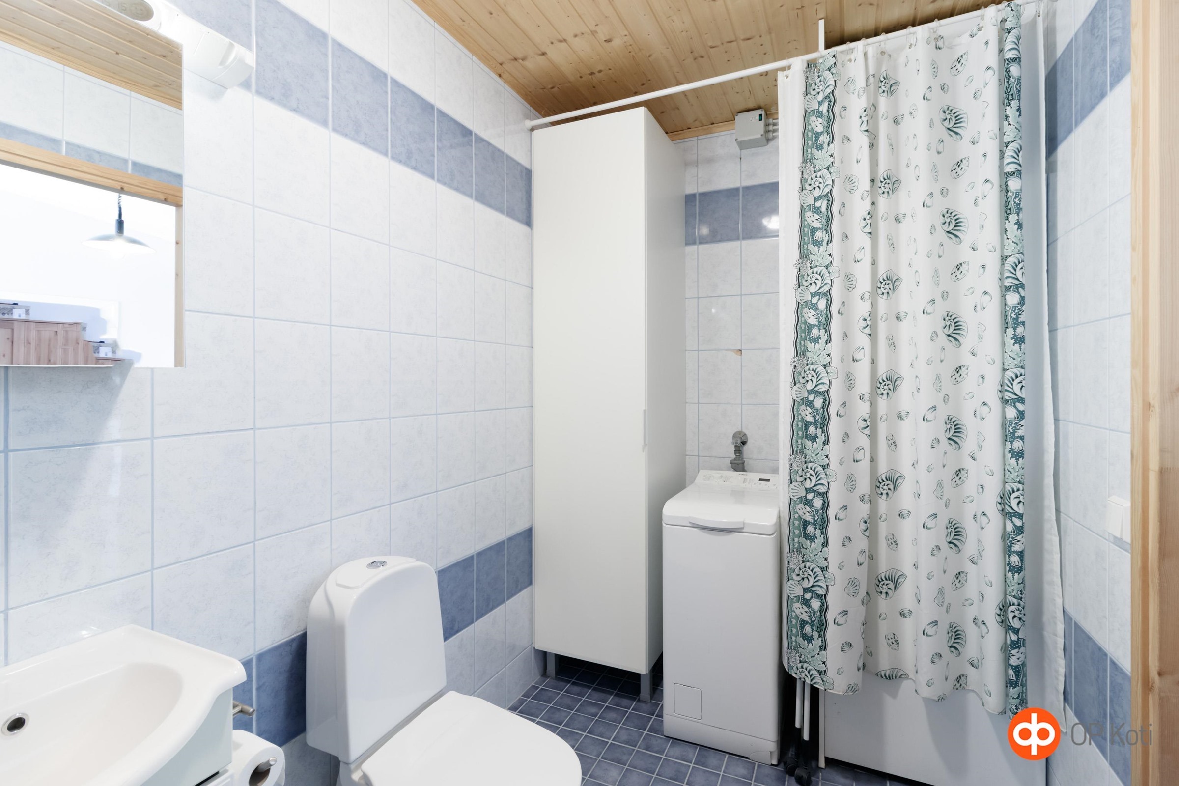 - Sauna, sähkökiuas, kylpyhuone, erillinen wc, suihku, suihkuseinä, peilikaappi, kaapit, allaskaappi, pesukoneliitäntä, lattialämmitys, kiinteät valaisimet.
