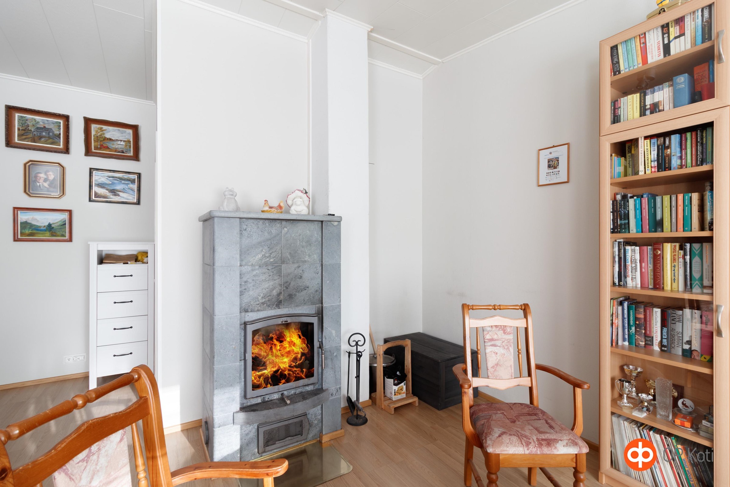 Keittiö: lattiassa laminaatti, seinät maalatut. Olohuone: lattiassa laminaatti, seinät maalatut. Varaava takka. Makuuhuone 1: lattiassa laminaatti, seinät maalatut. Vaatehuone. Makuuhuone 2: lattiassa laminaatti, seinät maalatut. Komeroita. Sauna: lattia laatoitettu, seinät paneloidut, ikkuna. Kylpyhuone: lattia ja seinät laatoitetut. Eteinen: lattiassa laminaatti, seinät maalatut, komero. Wc: lattiassa laatta, seinät maalatut.